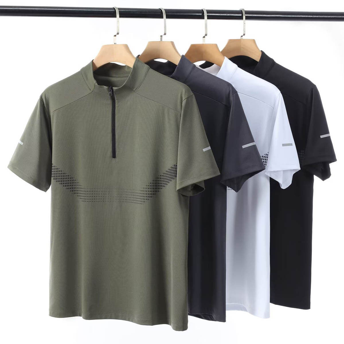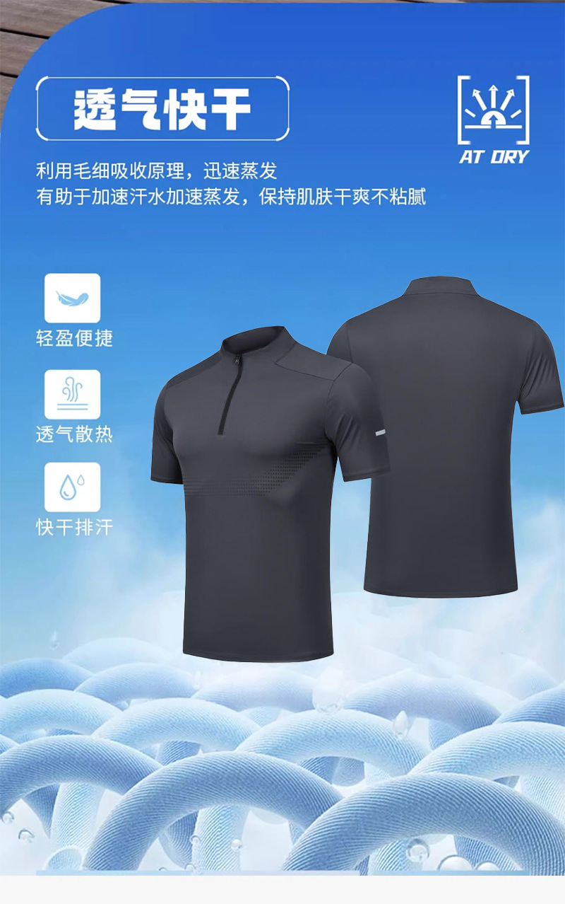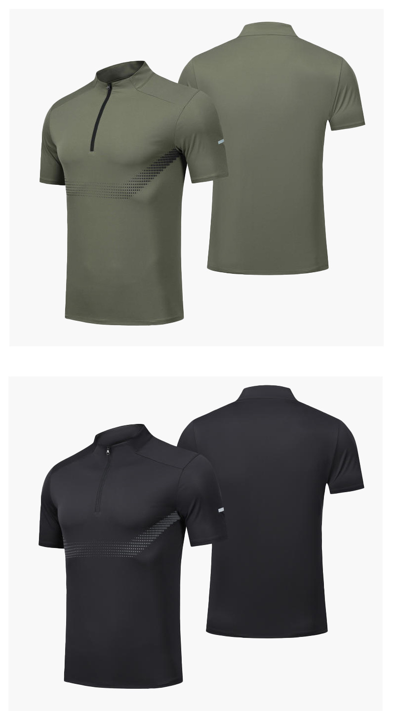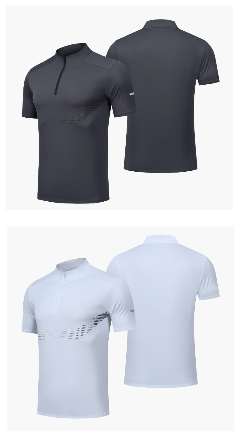 스포츠 반팔 남성용 하프 지퍼 러닝 탑 스탠드 칼라 아이스 실크 속건성 반팔 여름 스포츠 트레이닝 테니스 의류