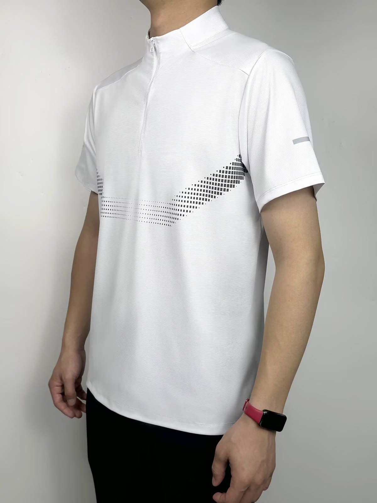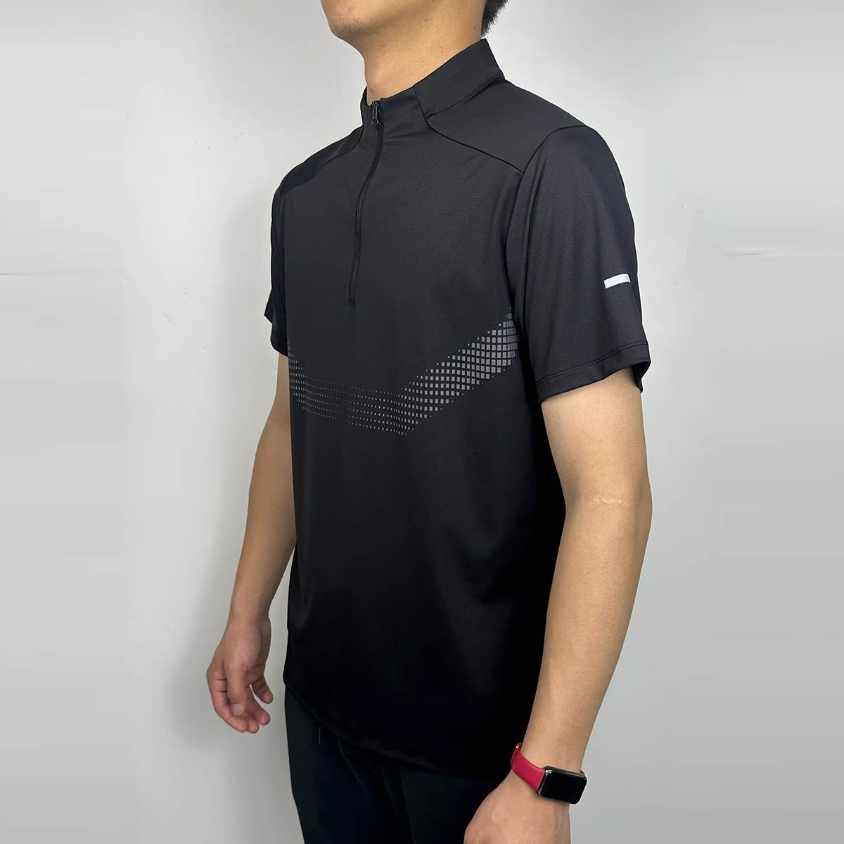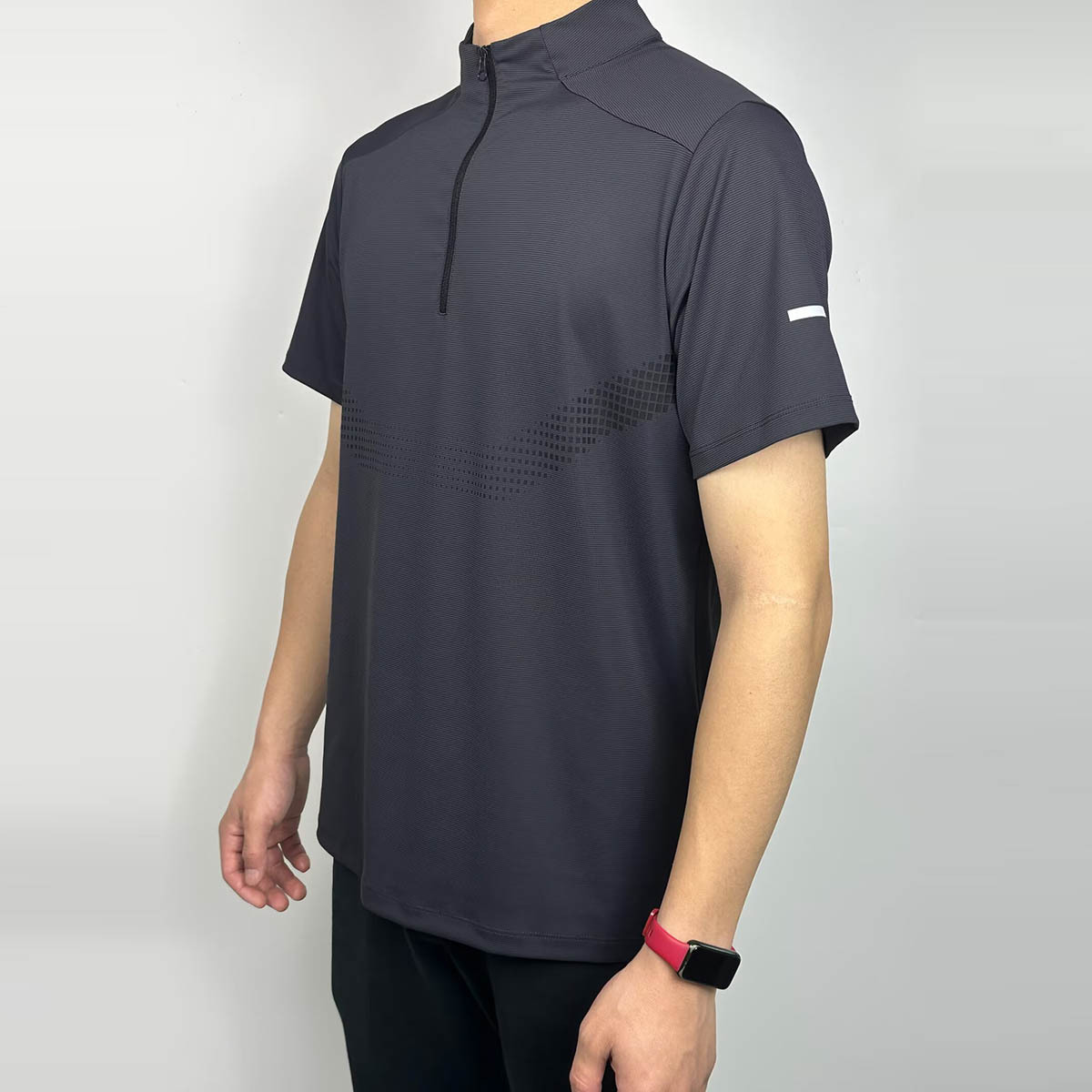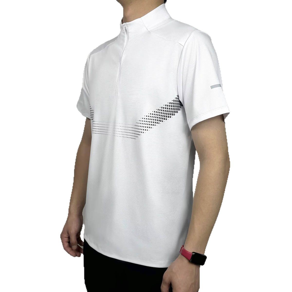 스포츠 반팔 남성용 하프 지퍼 러닝 탑 스탠드 칼라 아이스 실크 속건성 반팔 여름 스포츠 트레이닝 테니스 의류