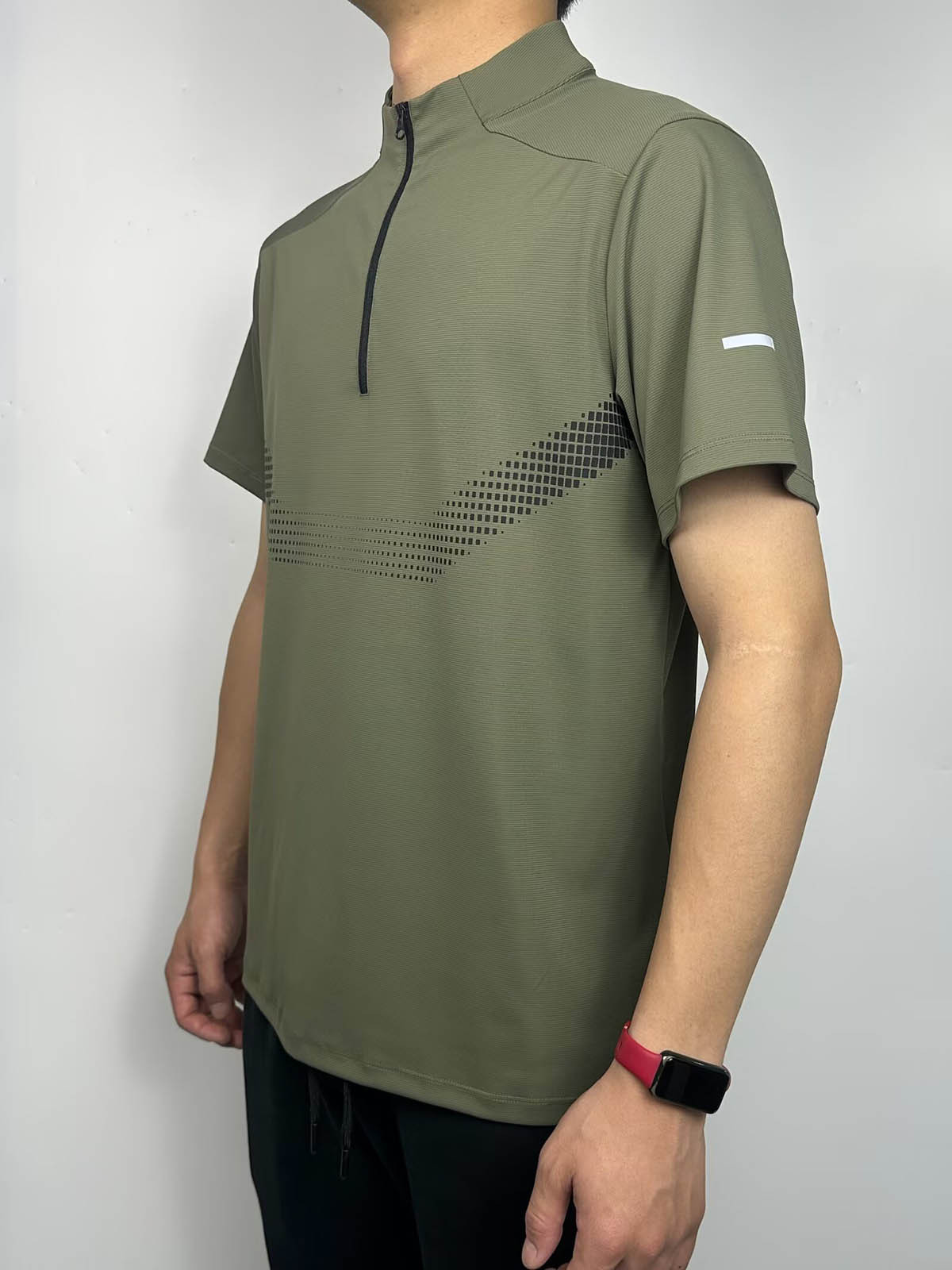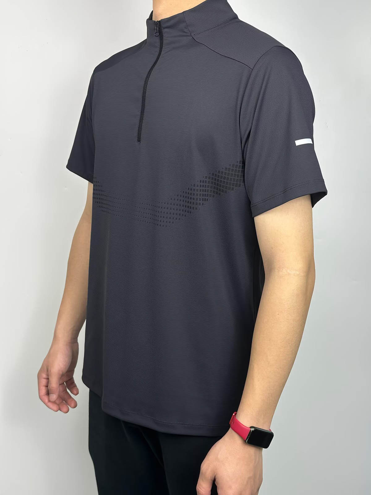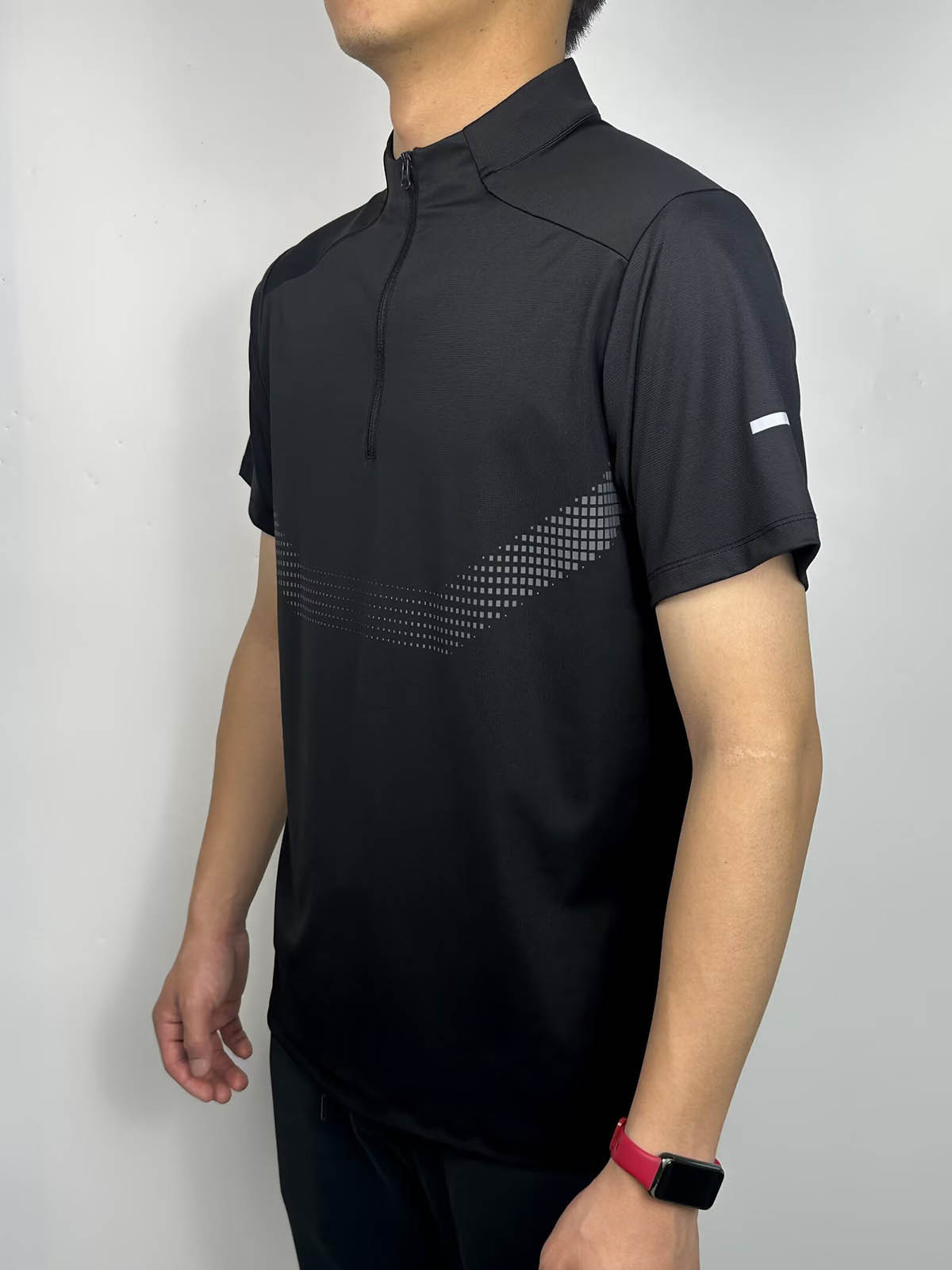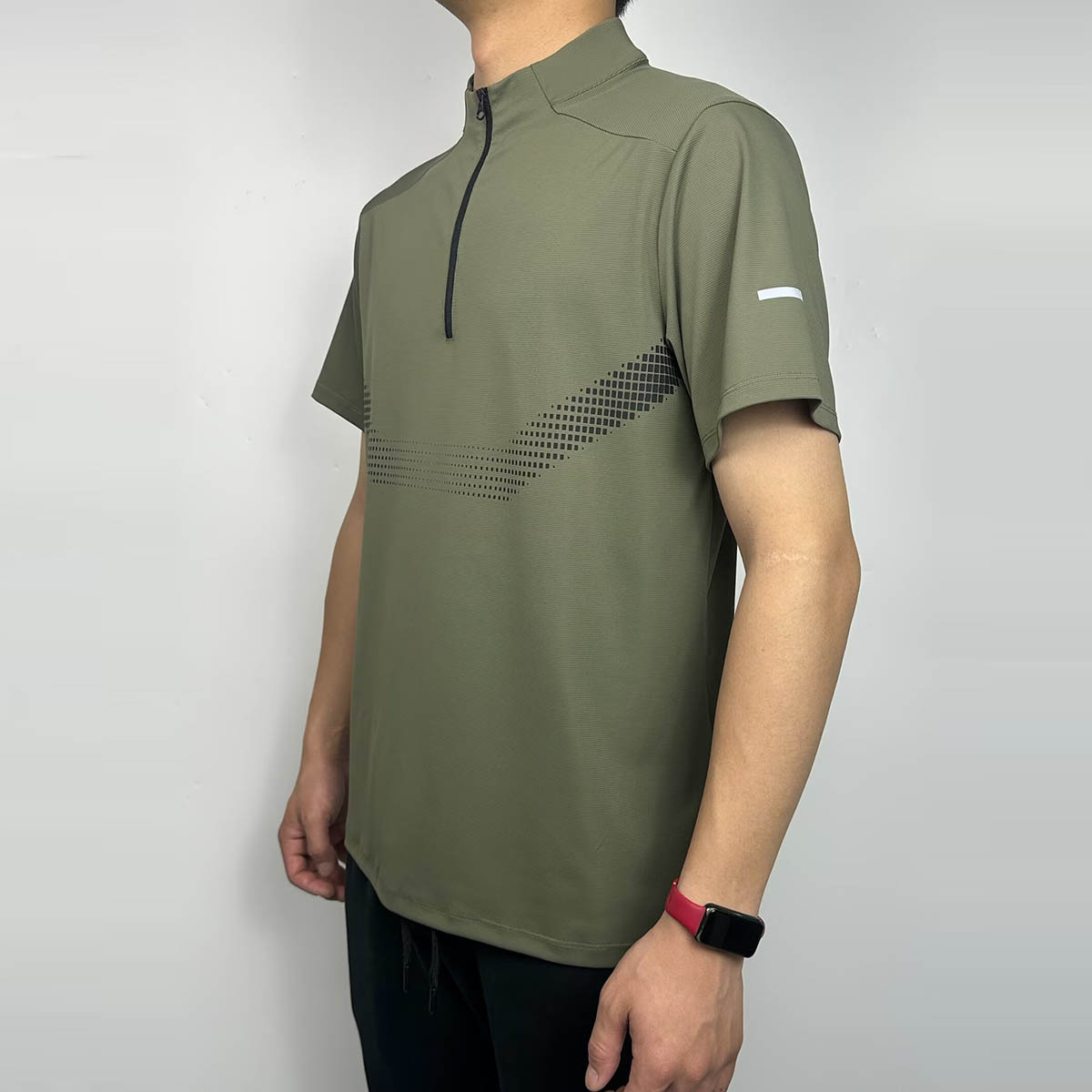 스포츠 반팔 남성용 하프 지퍼 러닝 탑 스탠드 칼라 아이스 실크 속건성 반팔 여름 스포츠 트레이닝 테니스 의류