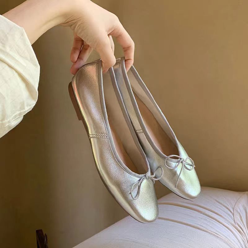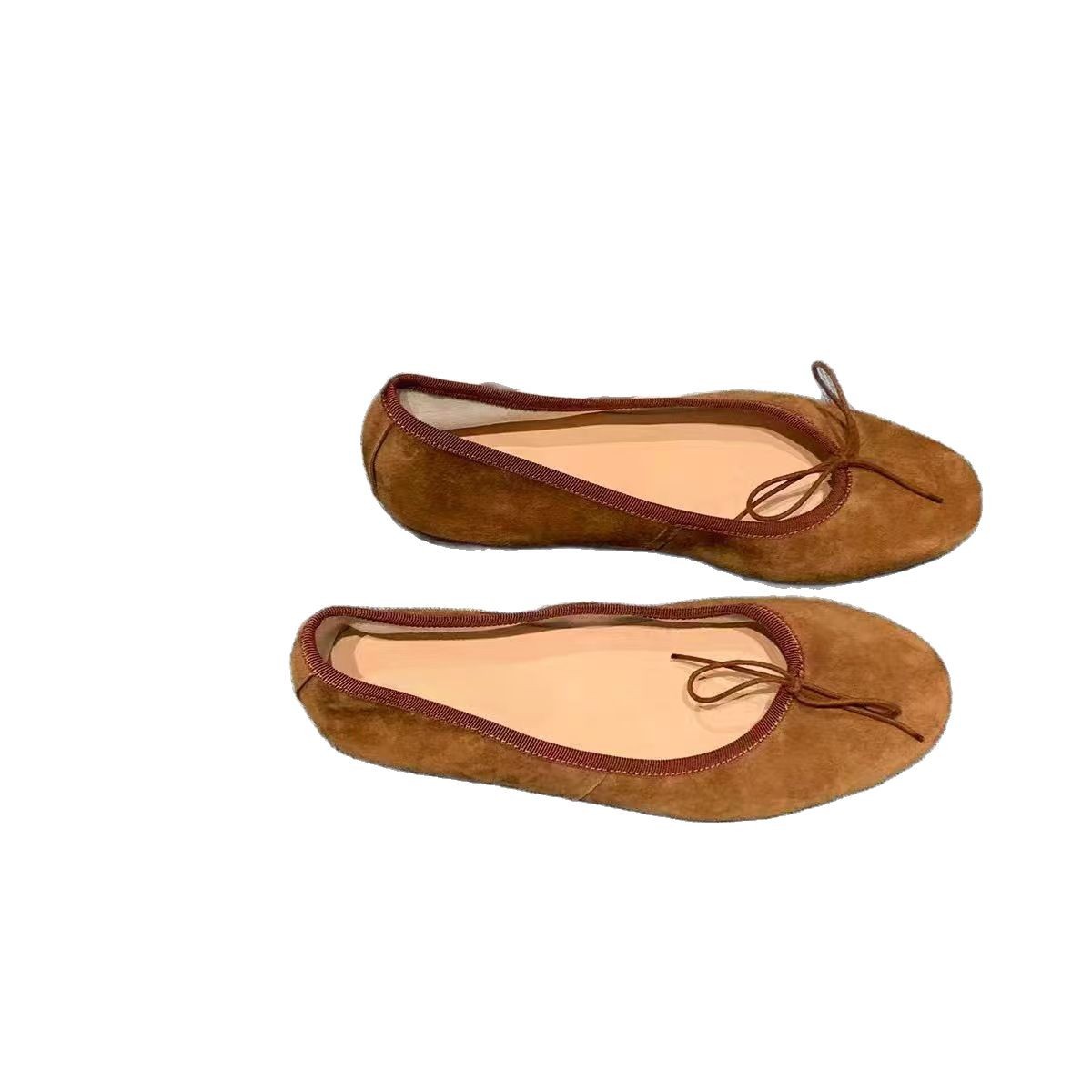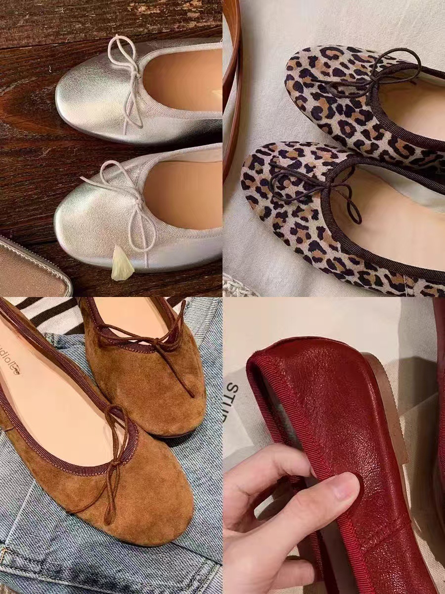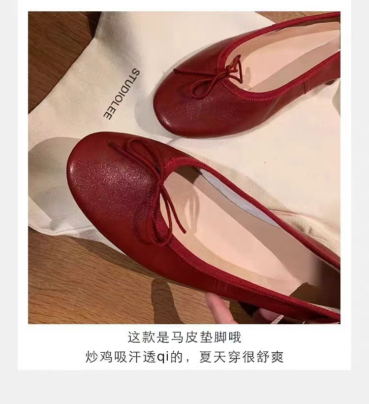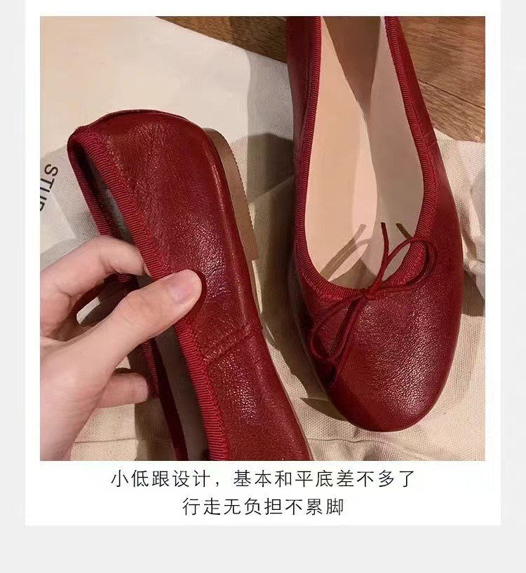 Cowhide 버전 ~ 포도 엄마 활 플랫 발레 신발 프랑스 조커 라운드 머리 얕은 입 기질 싱글 신발