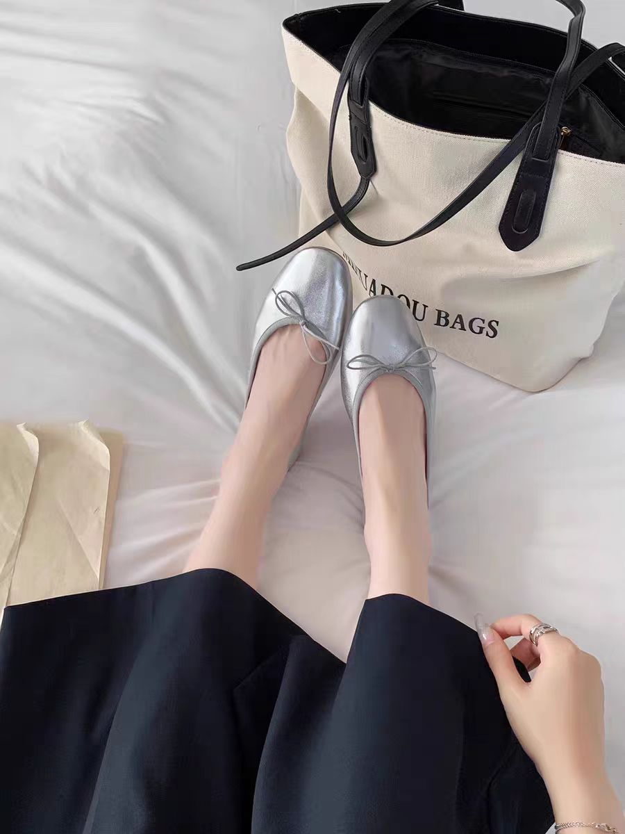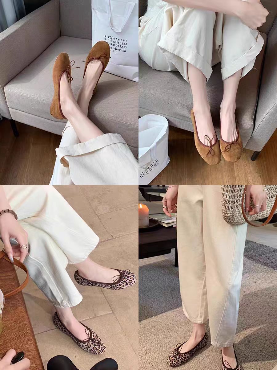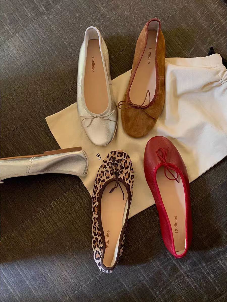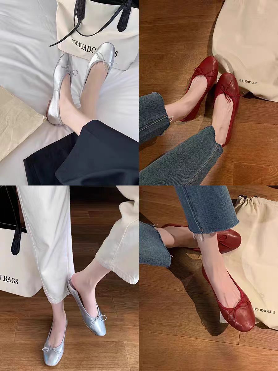 Cowhide 버전 ~ 포도 엄마 활 플랫 발레 신발 프랑스 조커 라운드 머리 얕은 입 기질 싱글 신발