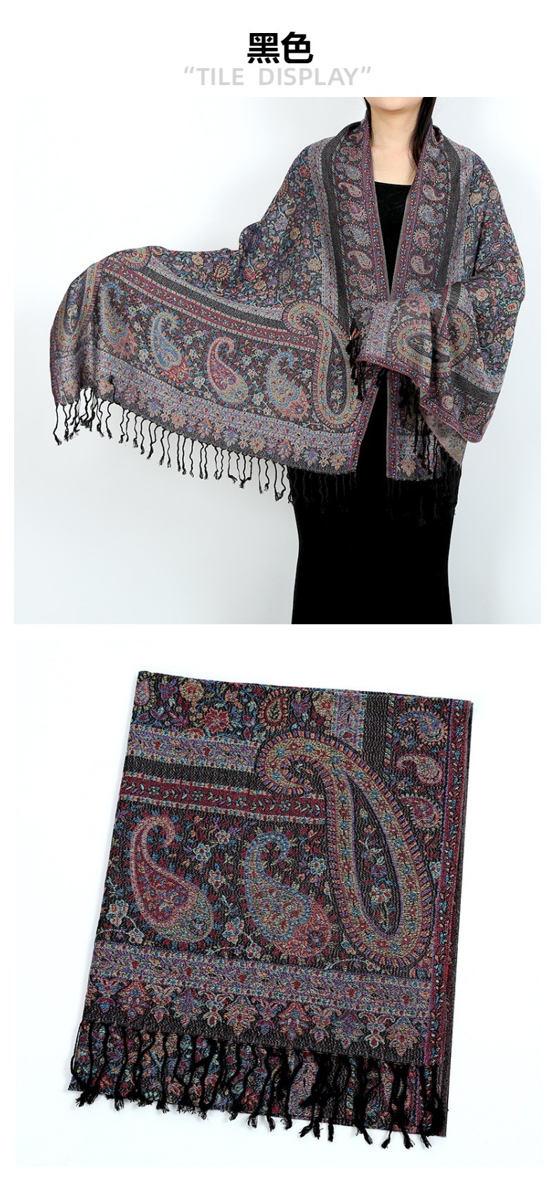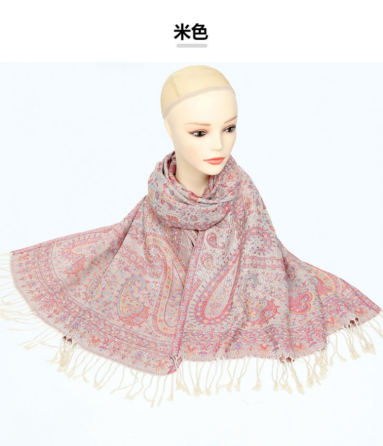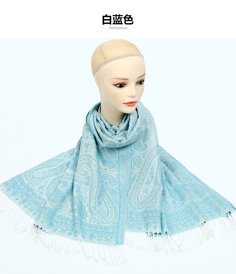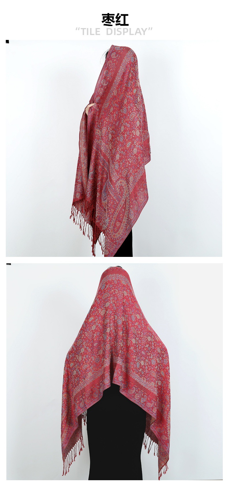 해외에서 인기 있는 레트로 민족풍, 고급스러운 분위기의 자카드 캐슈넛 숄, 머리 스카프