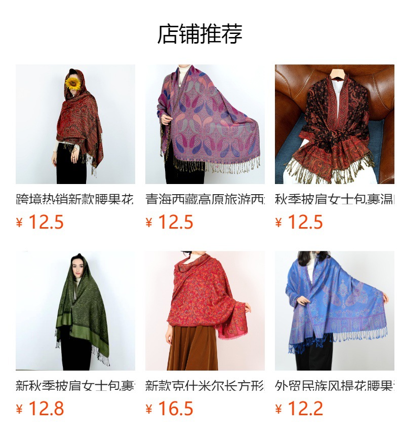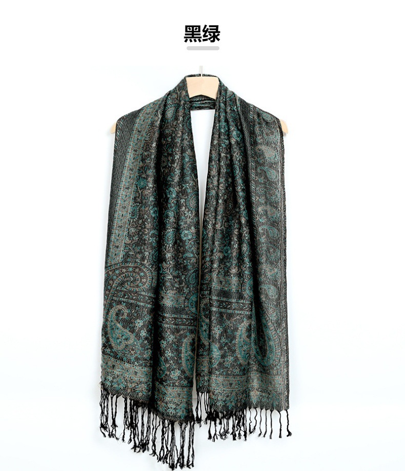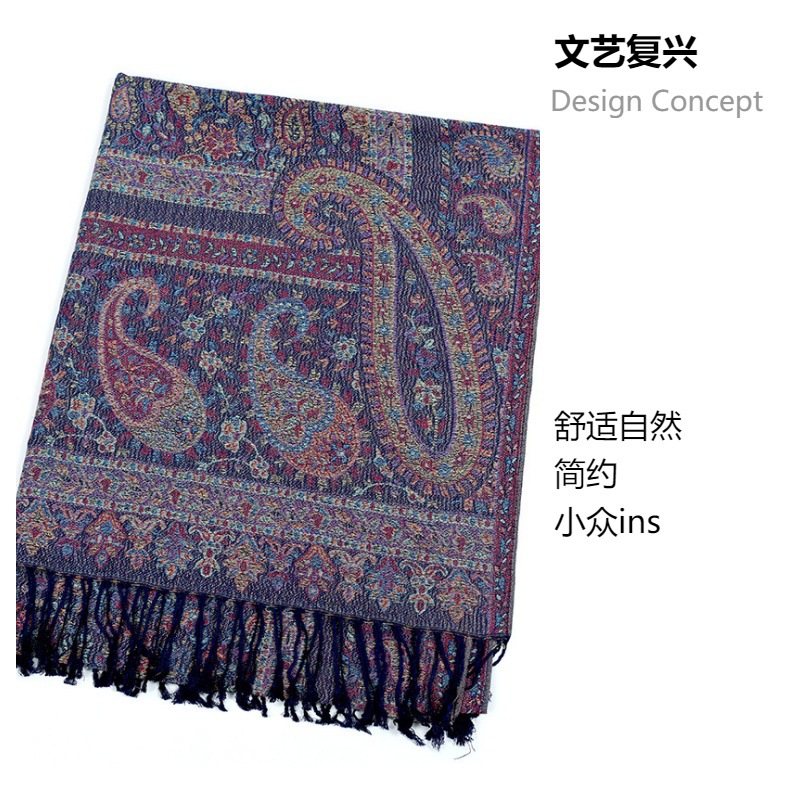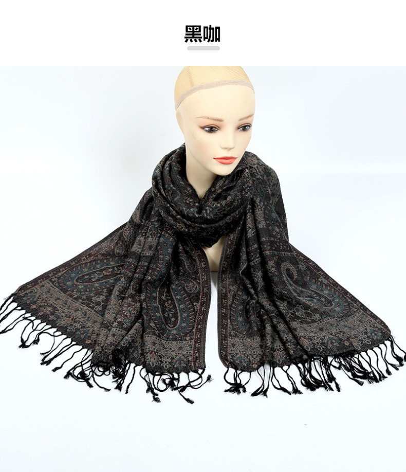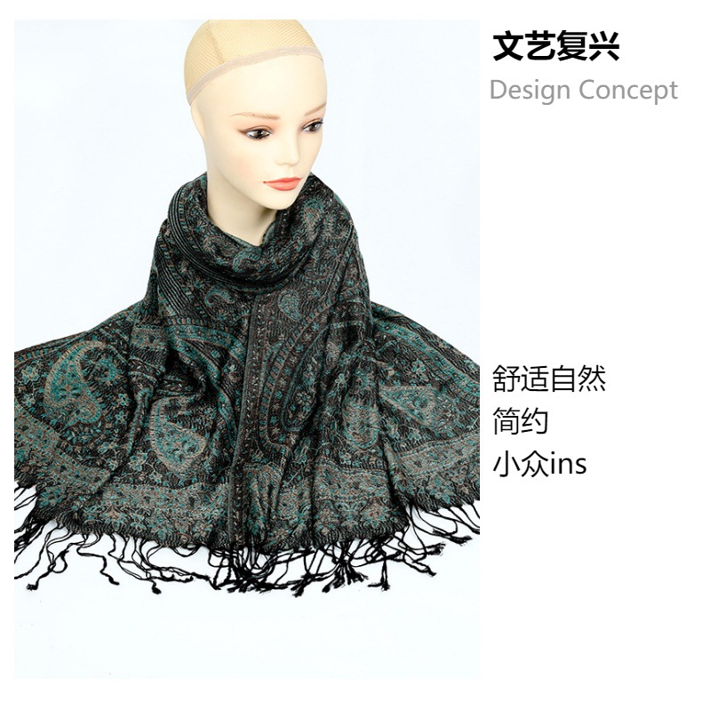 해외에서 인기 있는 레트로 민족풍, 고급스러운 분위기의 자카드 캐슈넛 숄, 머리 스카프