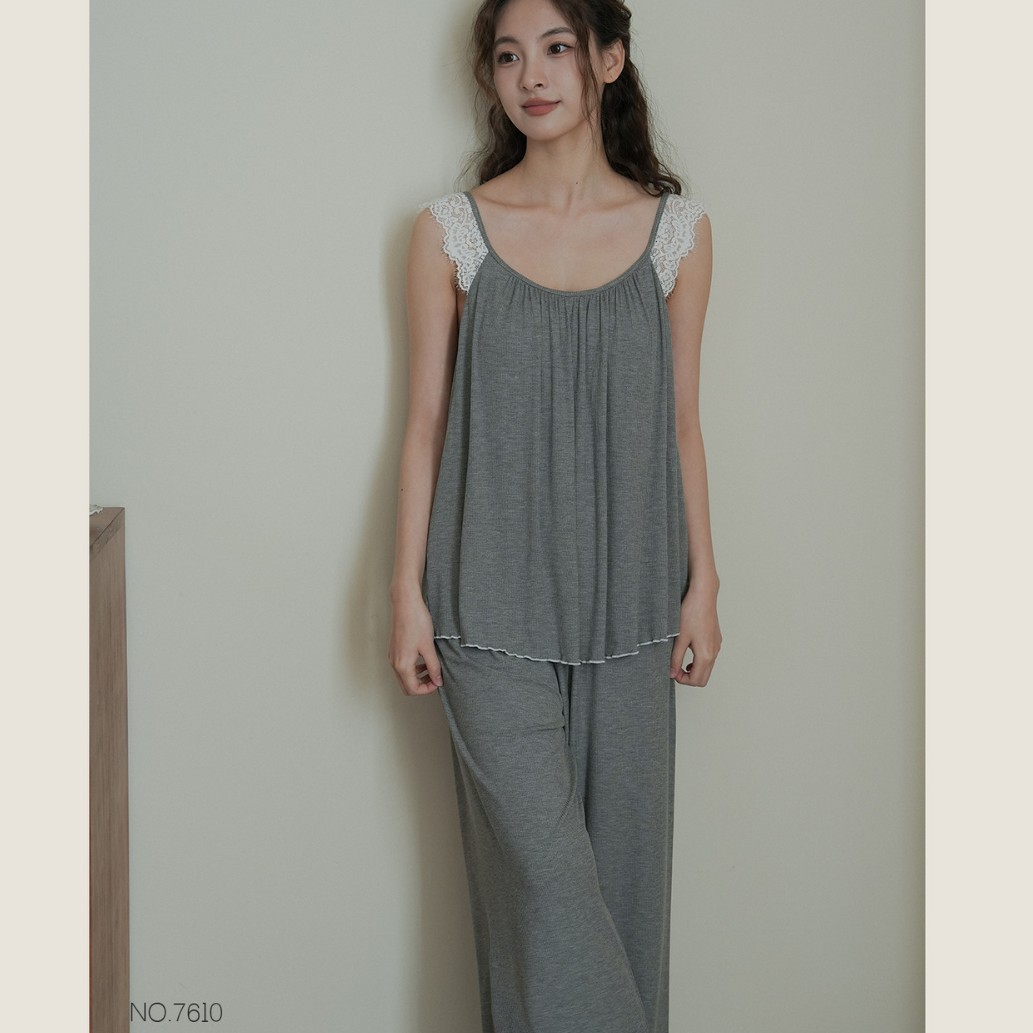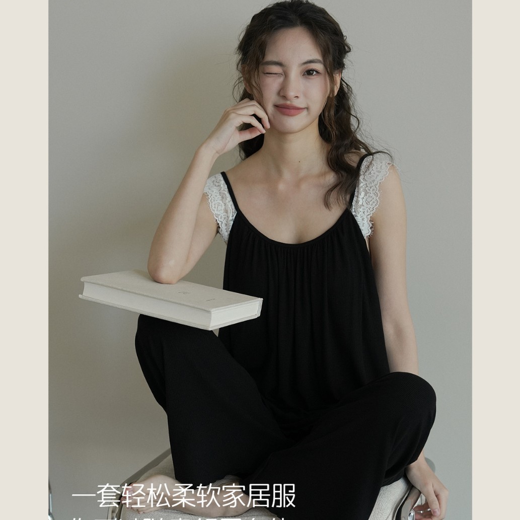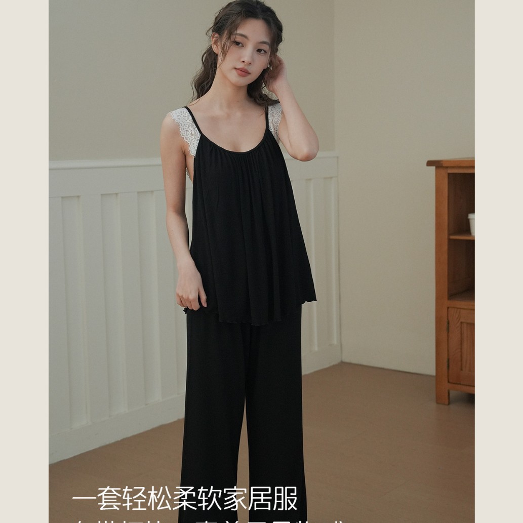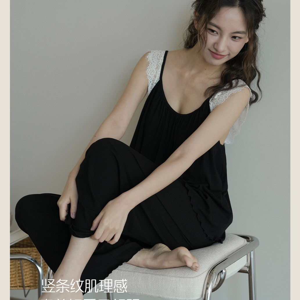 7610 여성용 가슴 패드가있는 잠옷 여름 섹시한 서스펜더 민소매 조끼 여름 얇은 가정 의류 투피스 양복