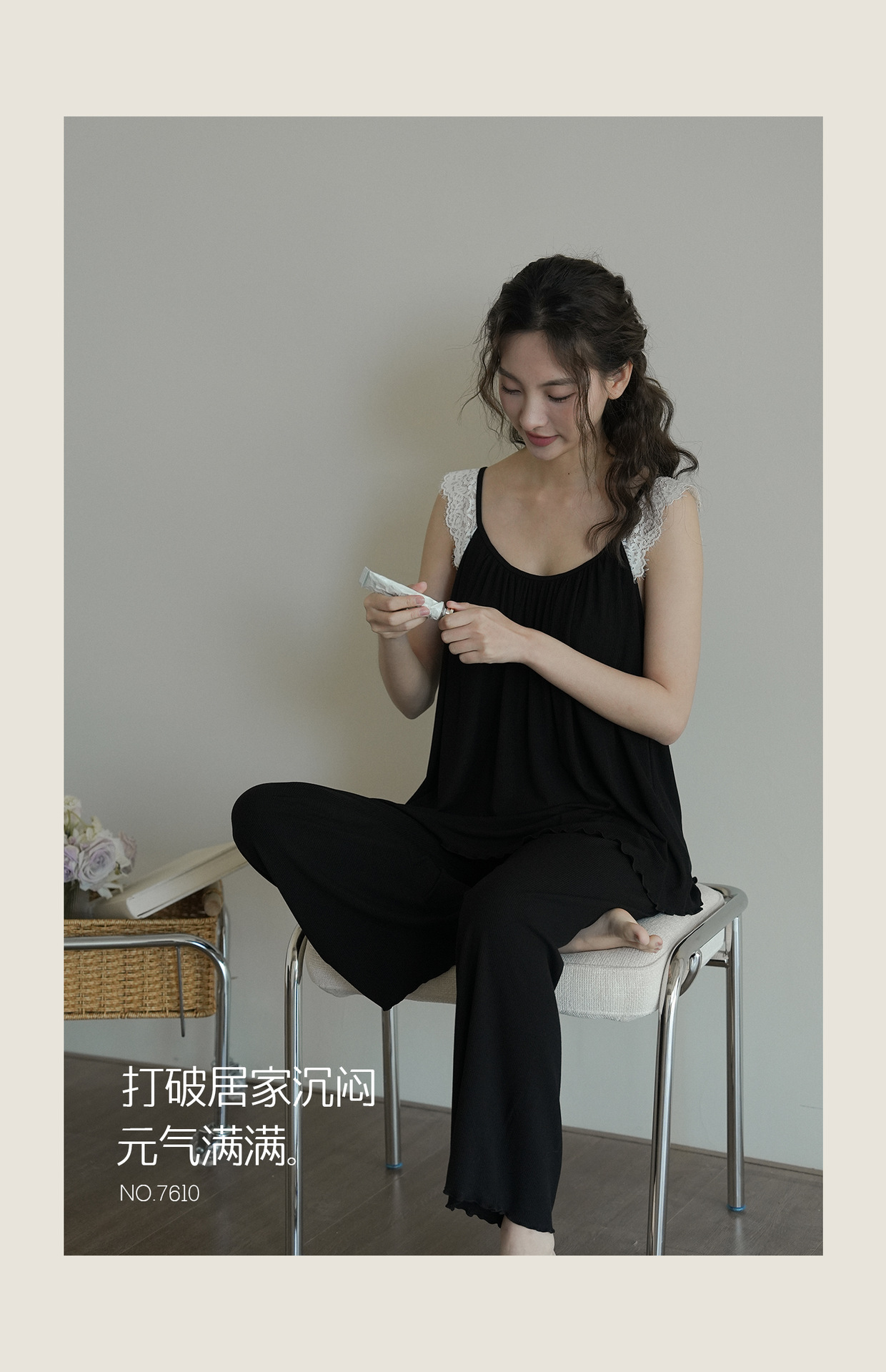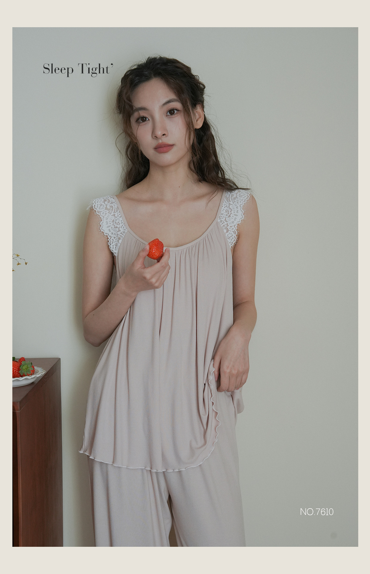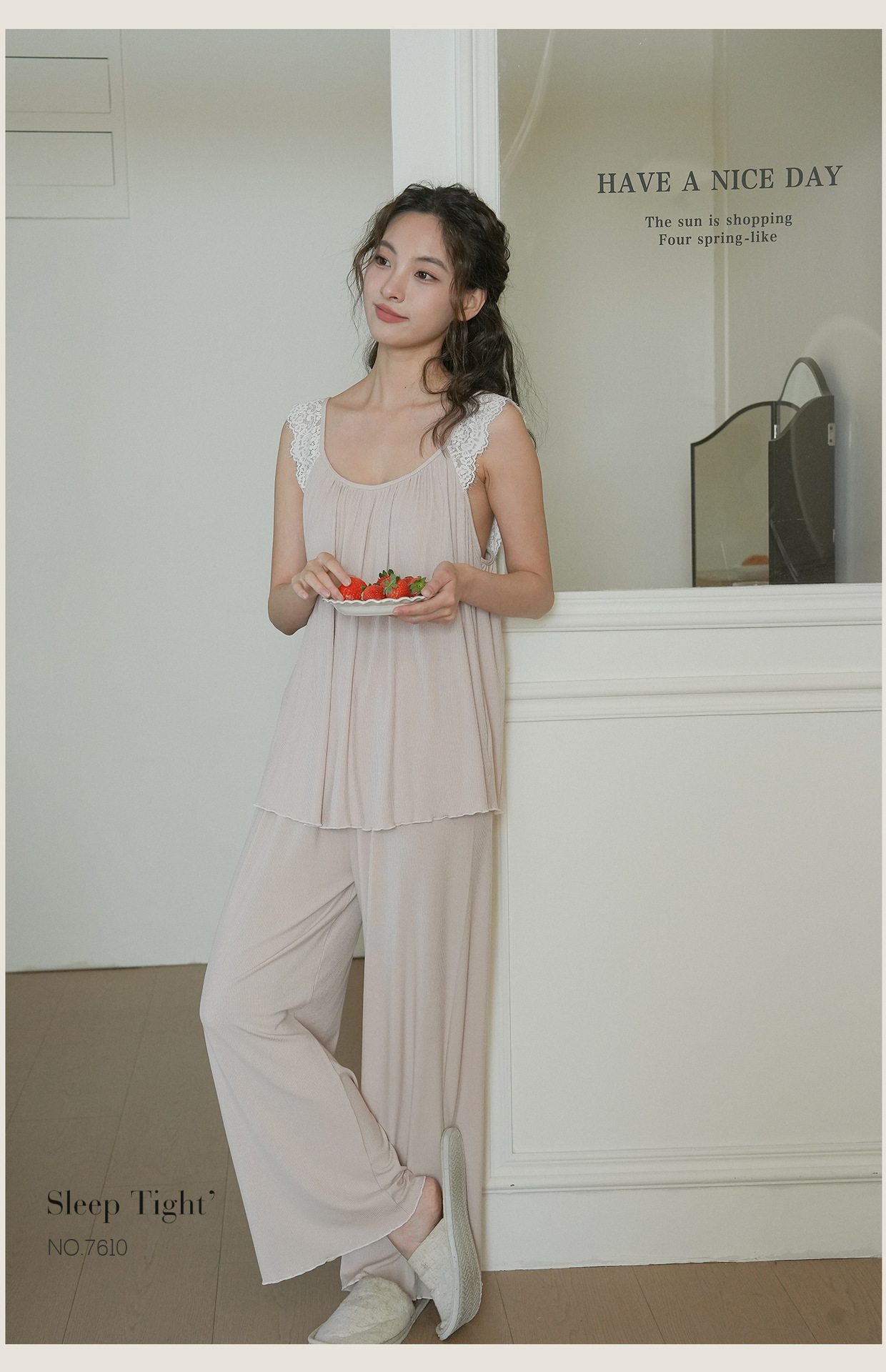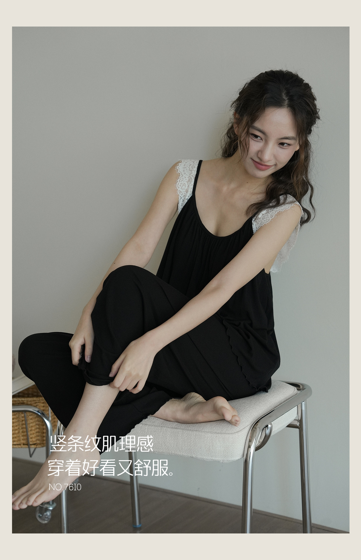 7610 여성용 가슴 패드가있는 잠옷 여름 섹시한 서스펜더 민소매 조끼 여름 얇은 가정 의류 투피스 양복