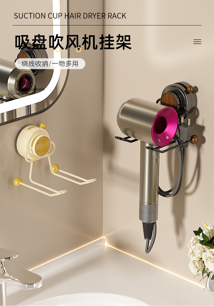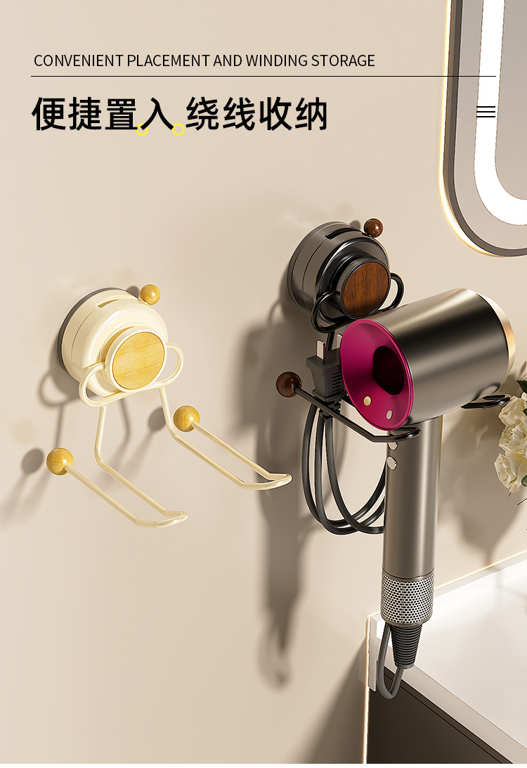 흡입 컵 헤어 드라이어 브래킷 펀치 프리 화장실 헤어 드라이어 와인딩 스토리지 랙 욕실 벽걸이 램 랙