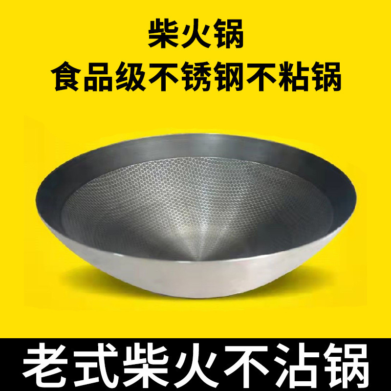 양면 냄비 바닥 두꺼운 디자인 벌집 붙지 않는 장작 냄비 스테인레스 스틸 냄비 귀없는 농촌 뾰족한 바닥 구식 대형 냄비 #