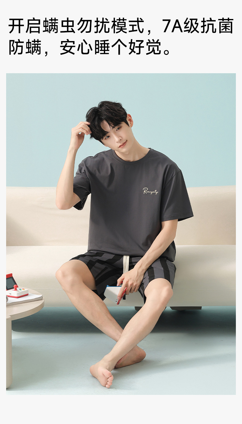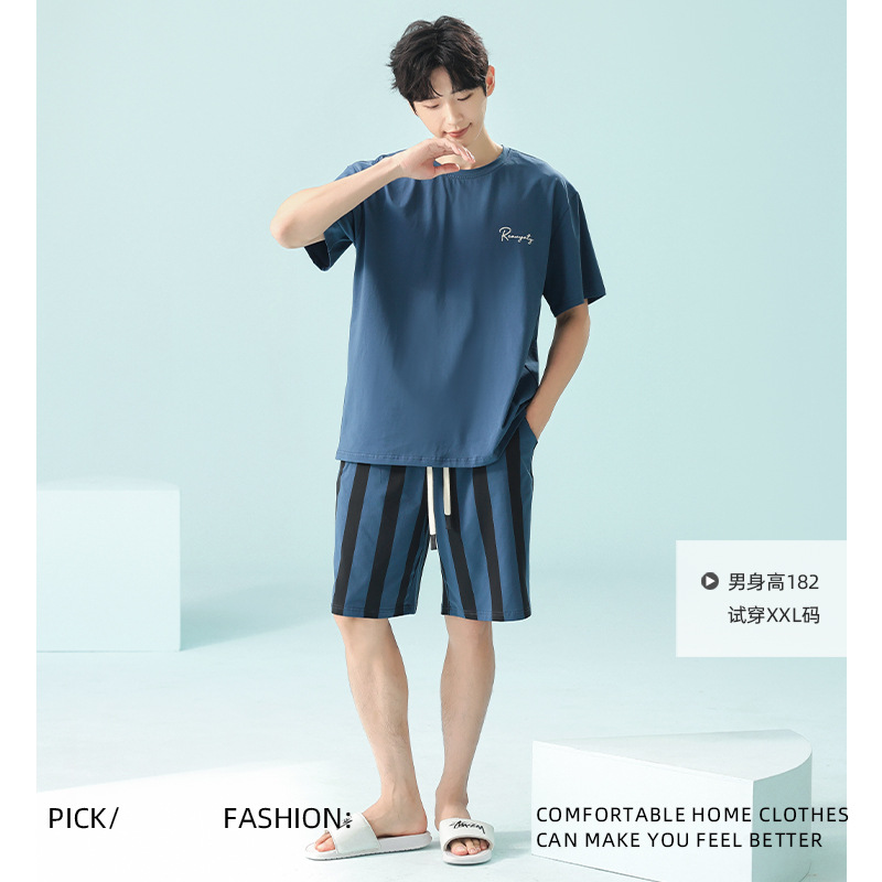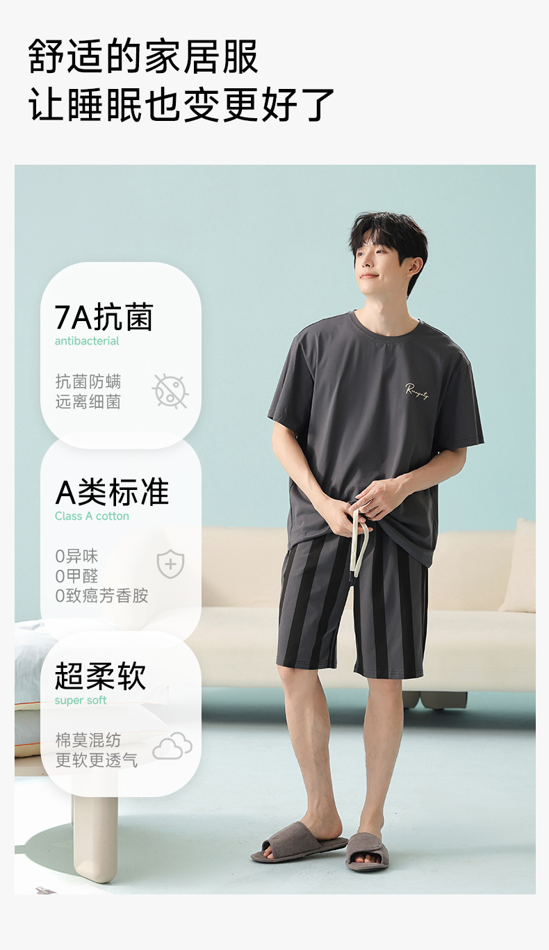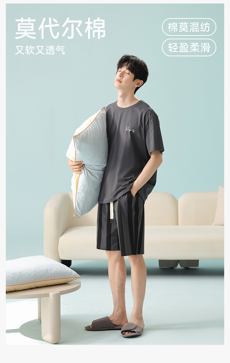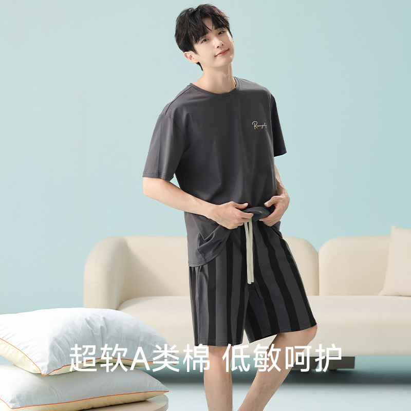 [슈퍼 소프트 모달] 여름 클래스 A 코튼 얇은 반팔 라운드 넥 파자마 남자 여름 캐주얼 남자 홈 옷