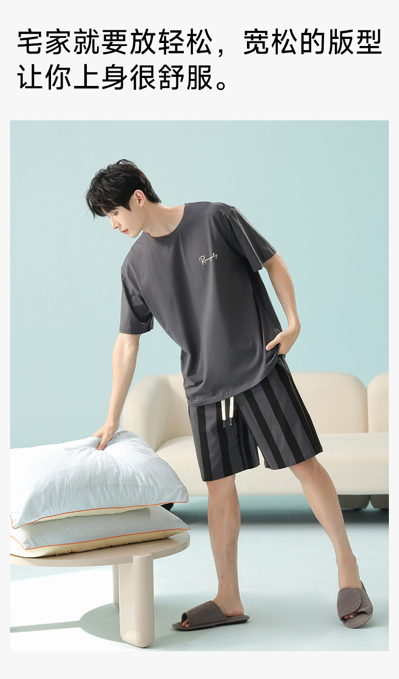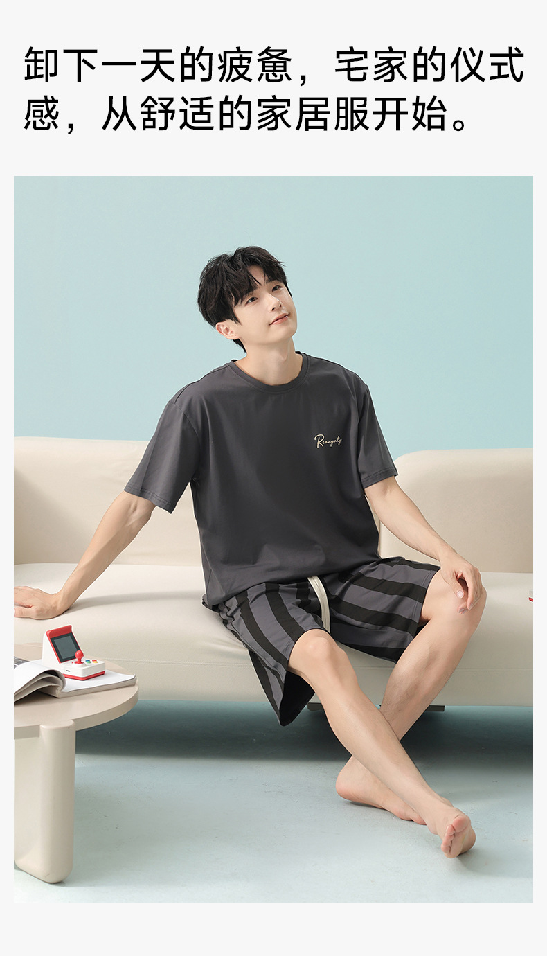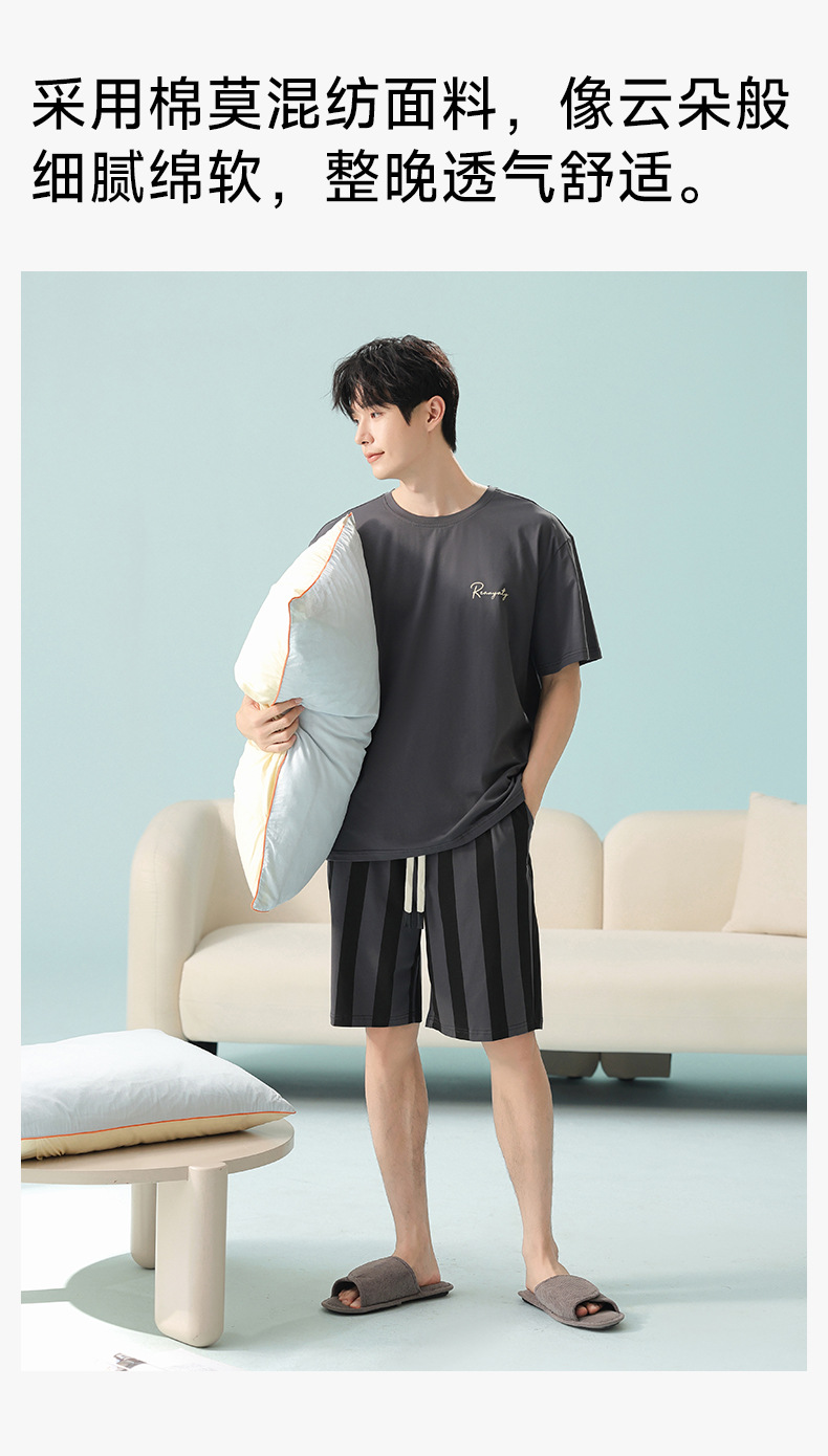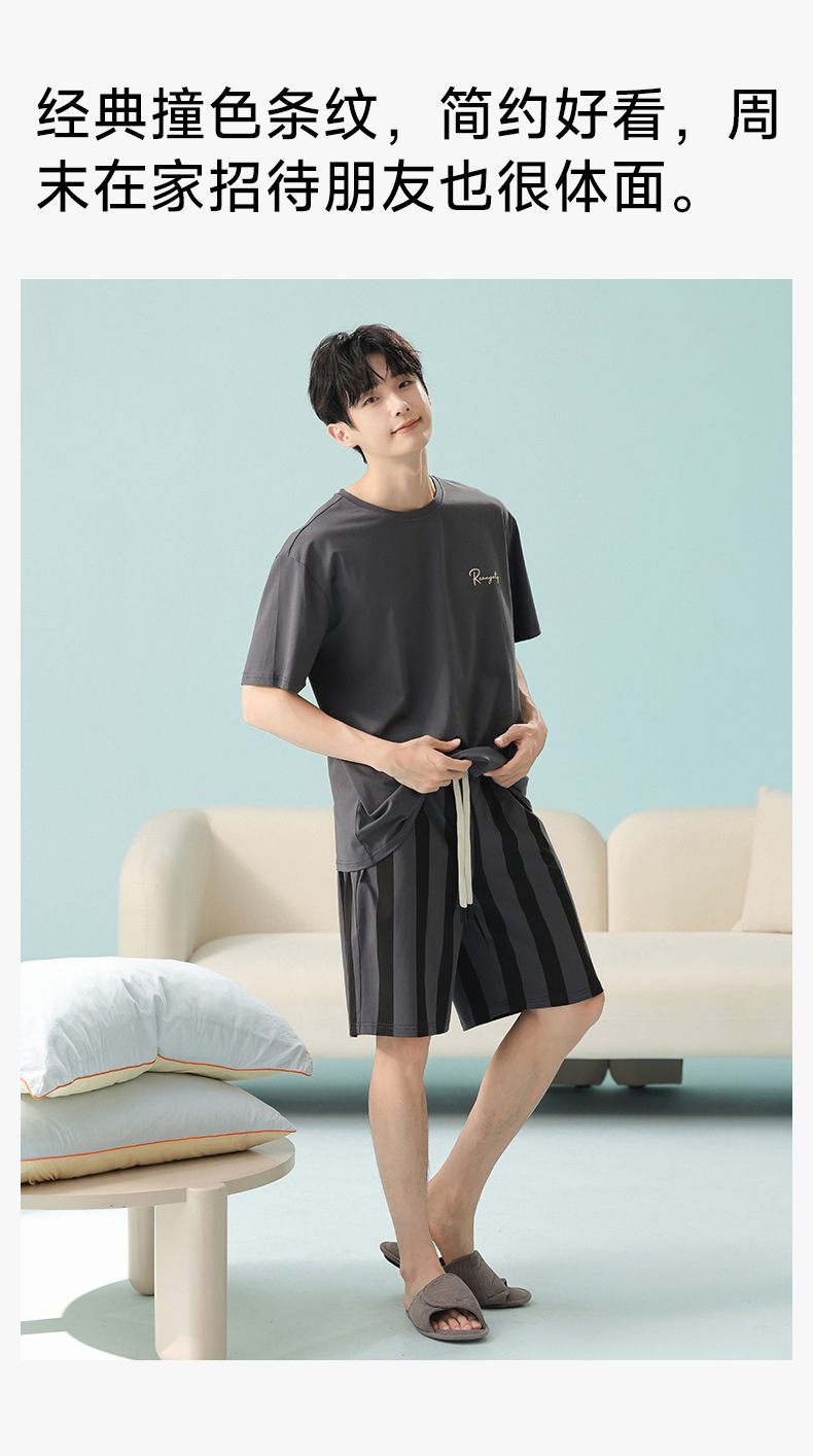 [슈퍼 소프트 모달] 여름 클래스 A 코튼 얇은 반팔 라운드 넥 파자마 남자 여름 캐주얼 남자 홈 옷