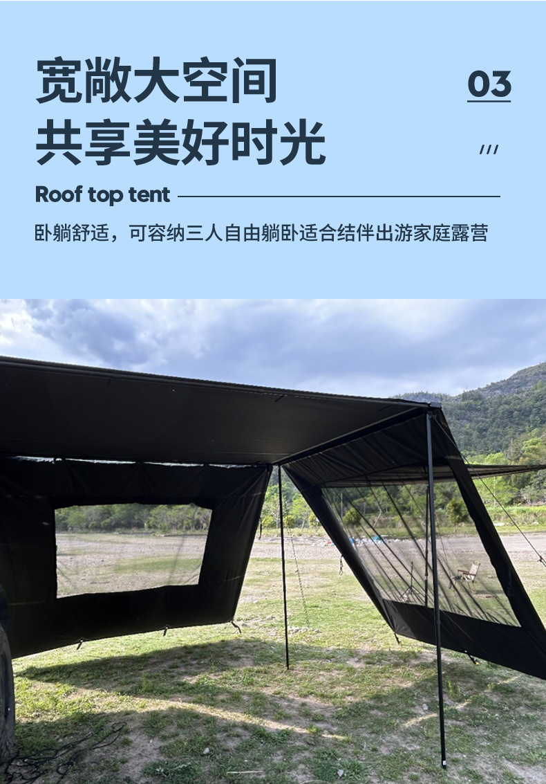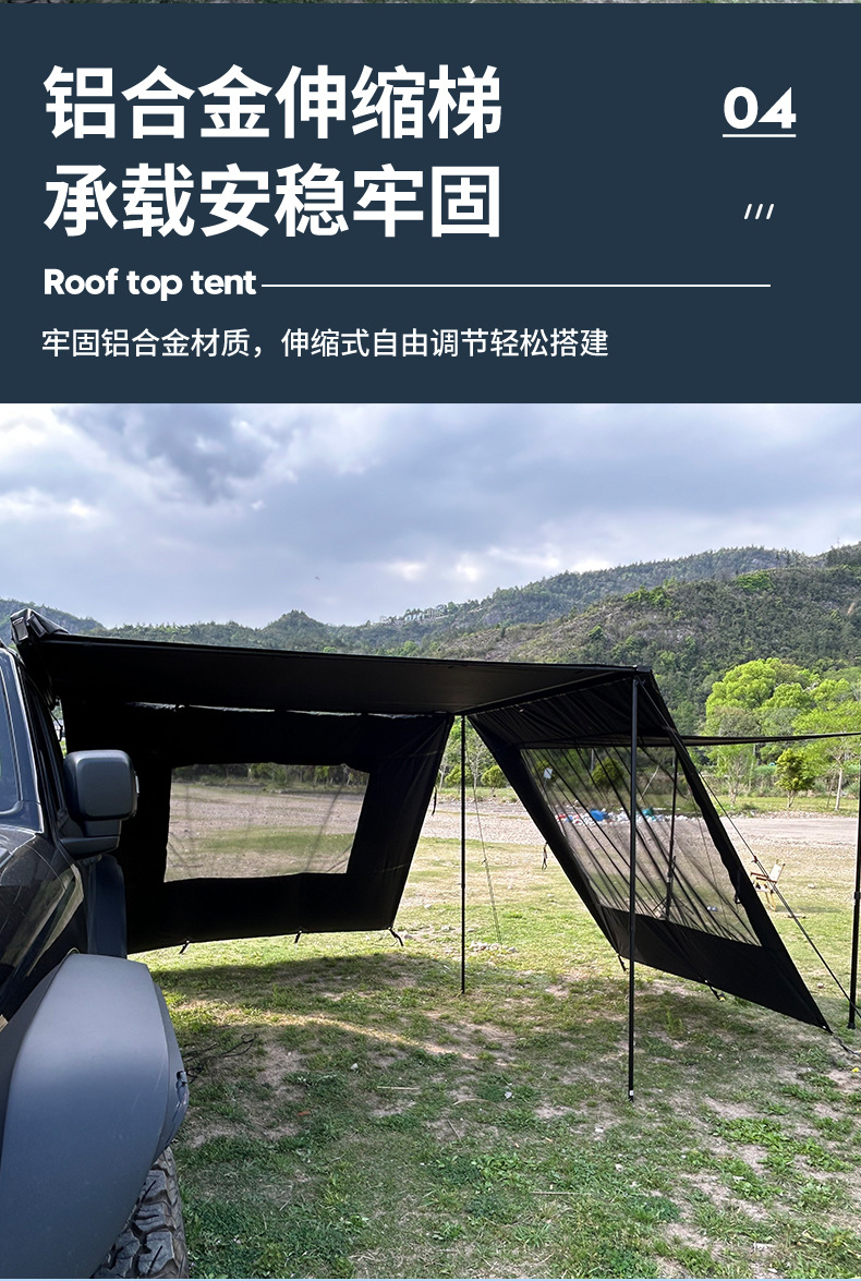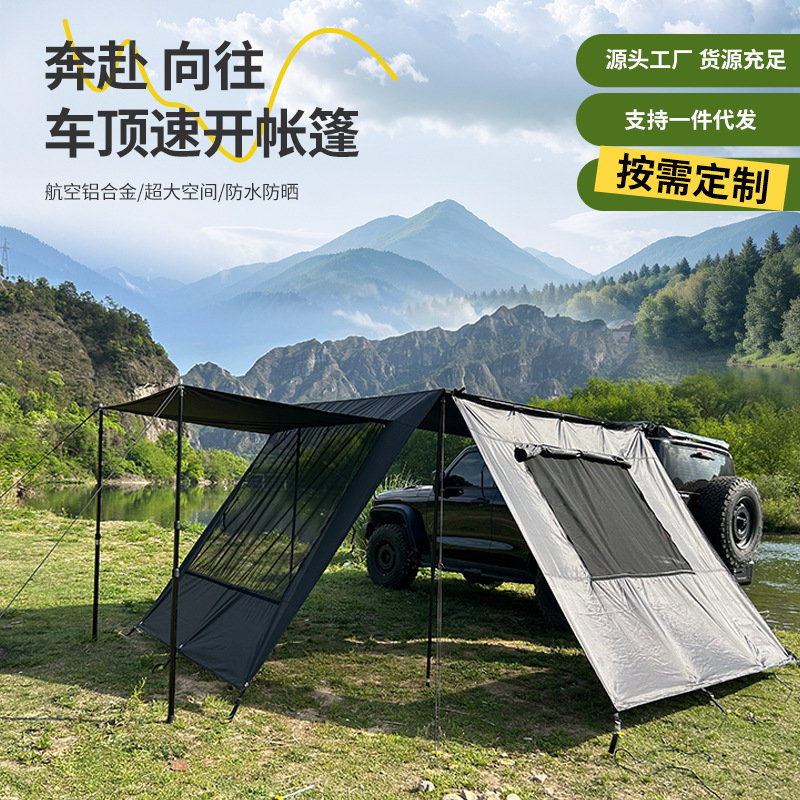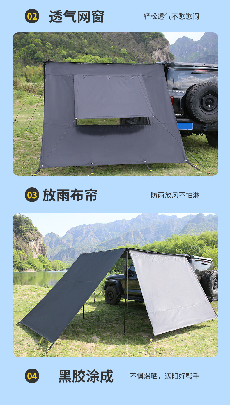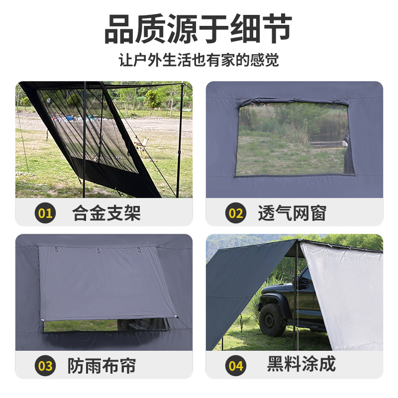 캠핑용 텐트 야외 접이식 방풍 방수 자외선 차단 차량용 텐트 두꺼운 블랙 글로스 방수 5000+ 차양 천