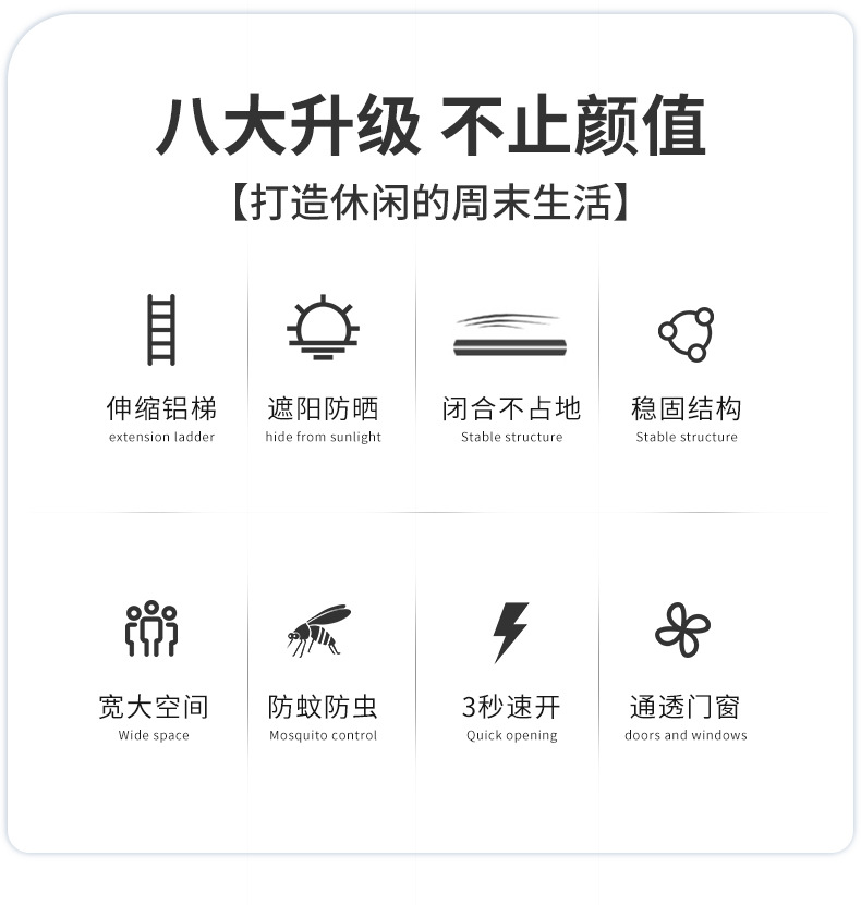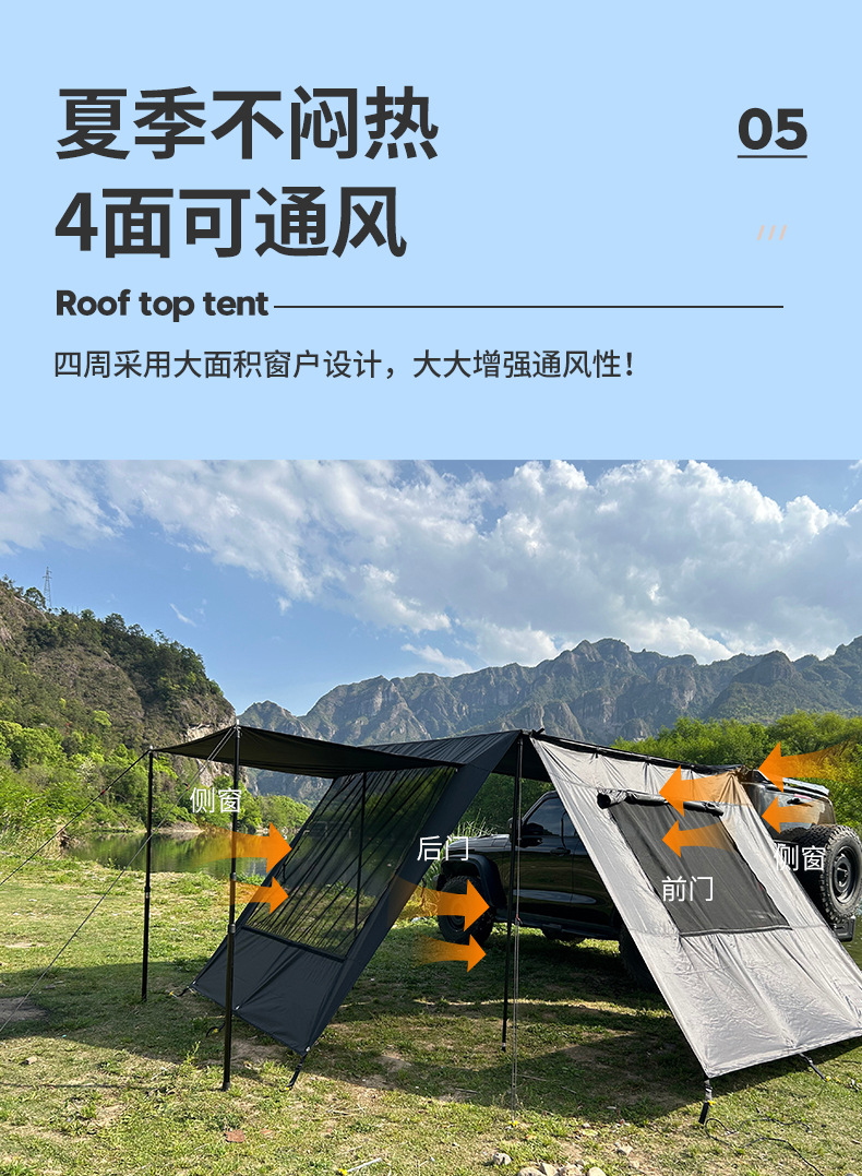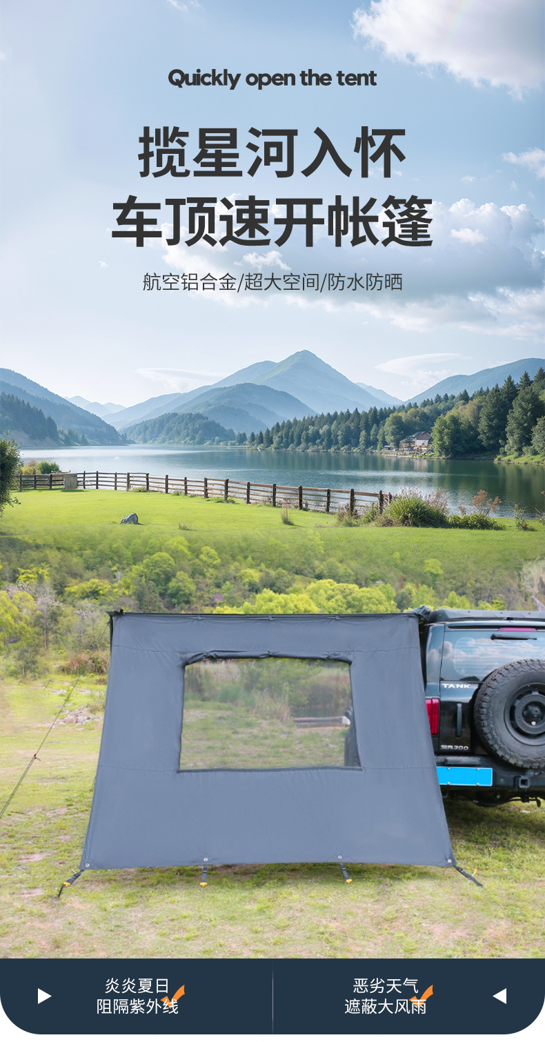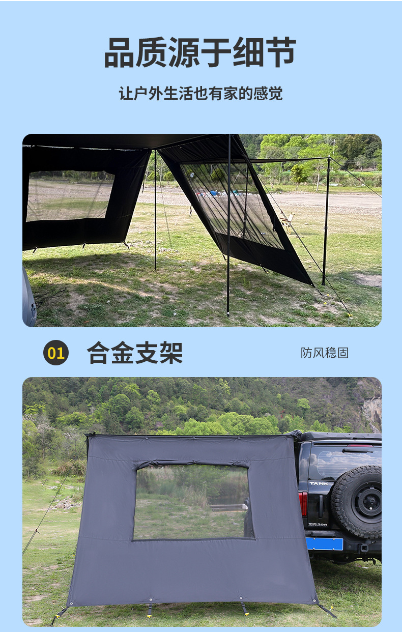 캠핑용 텐트 야외 접이식 방풍 방수 자외선 차단 차량용 텐트 두꺼운 블랙 글로스 방수 5000+ 차양 천