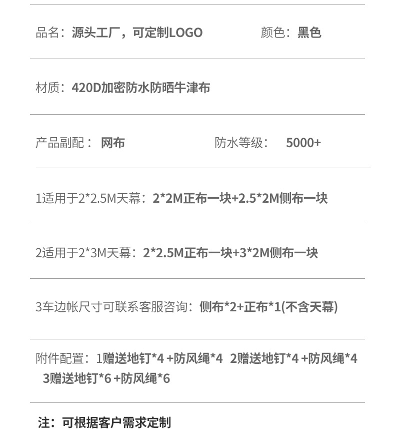 [완전 흑화] 창문이 있는 3*2.2M 측면 차양 천