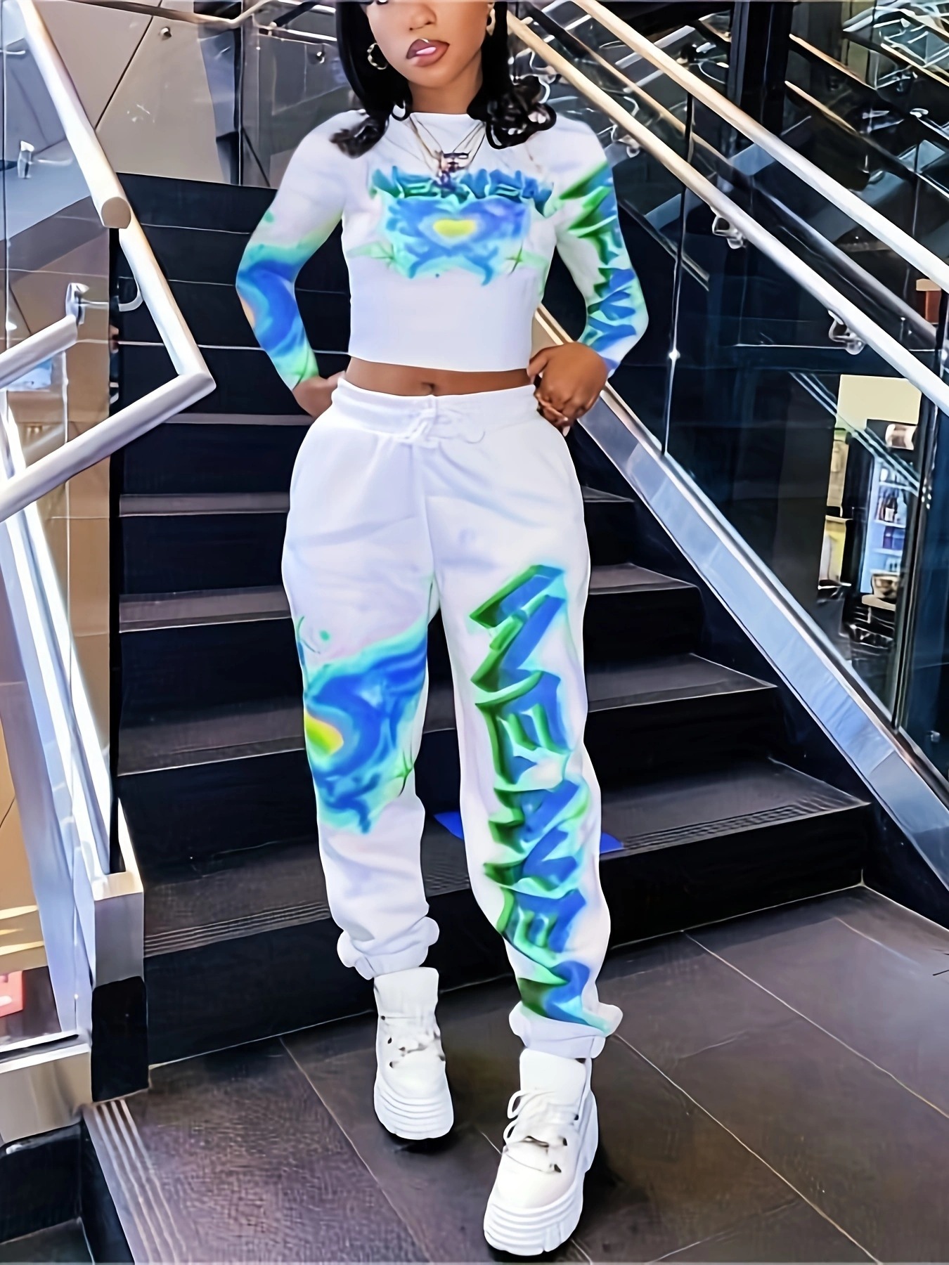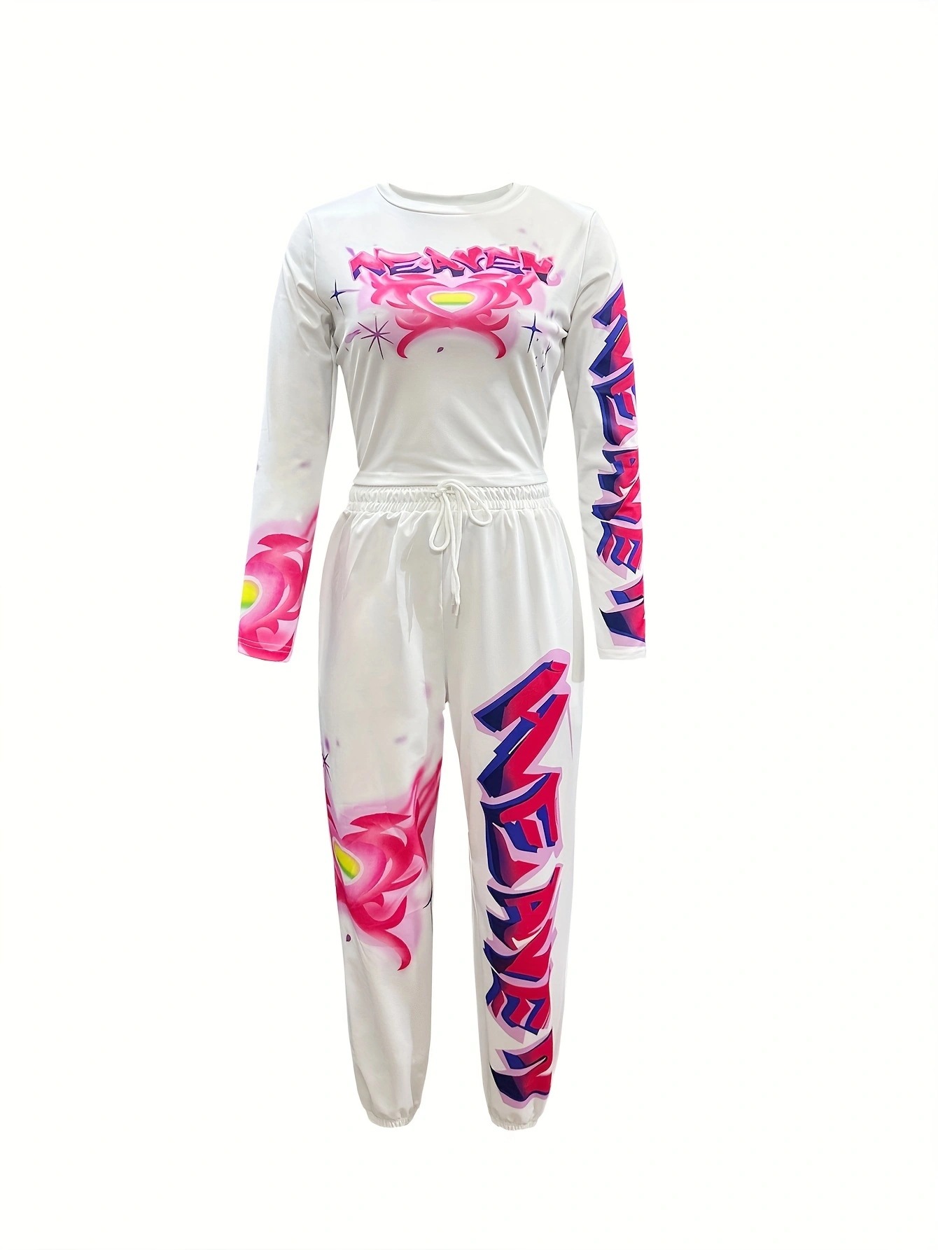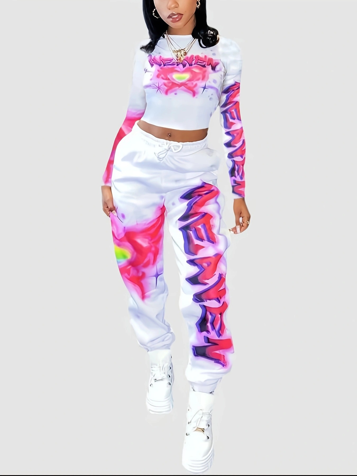 유럽과 미국의 국경 간 2025 패션 스포츠 및 레저 프린트 긴팔 바지 및 레깅스 세트