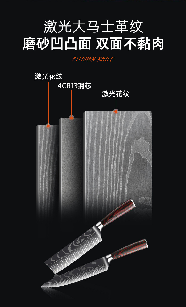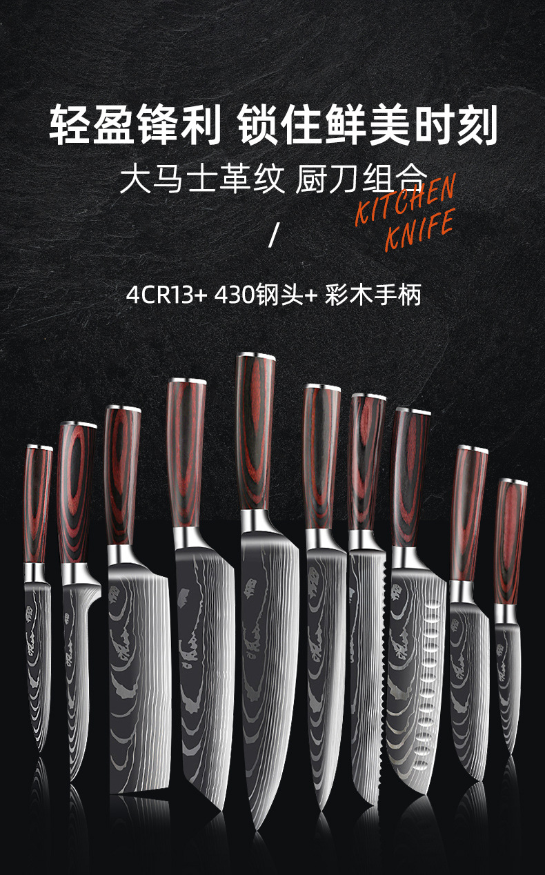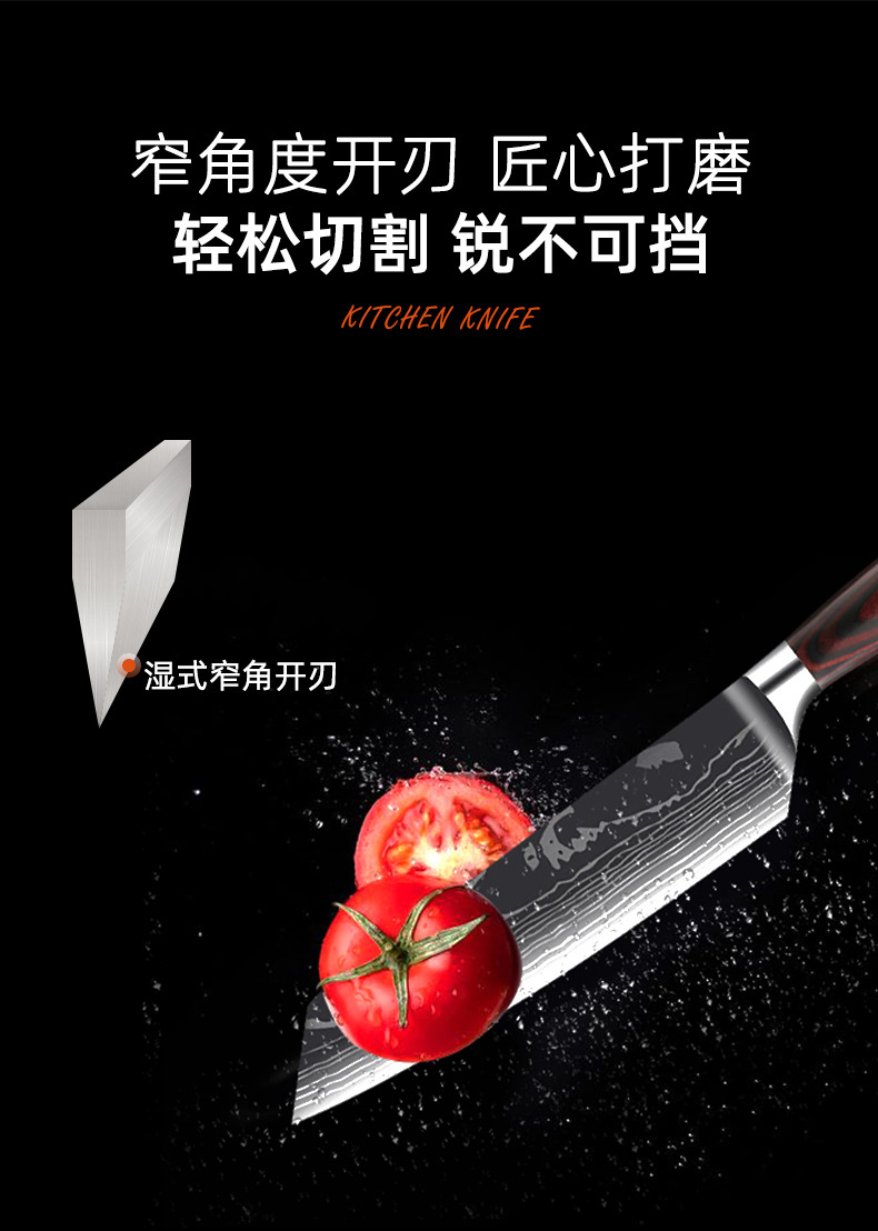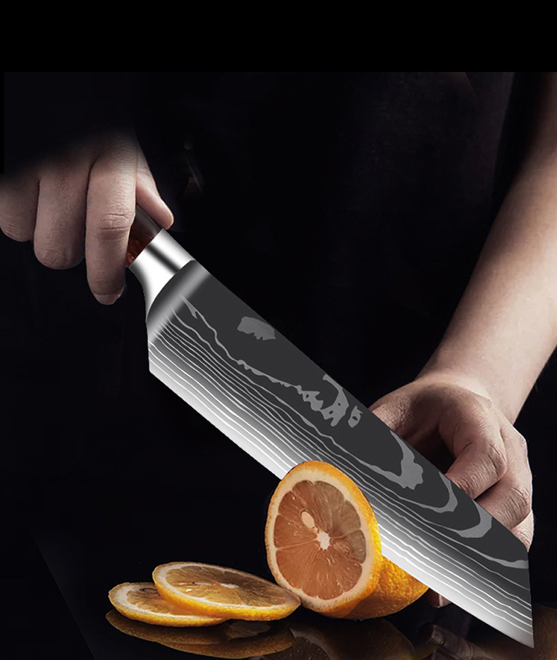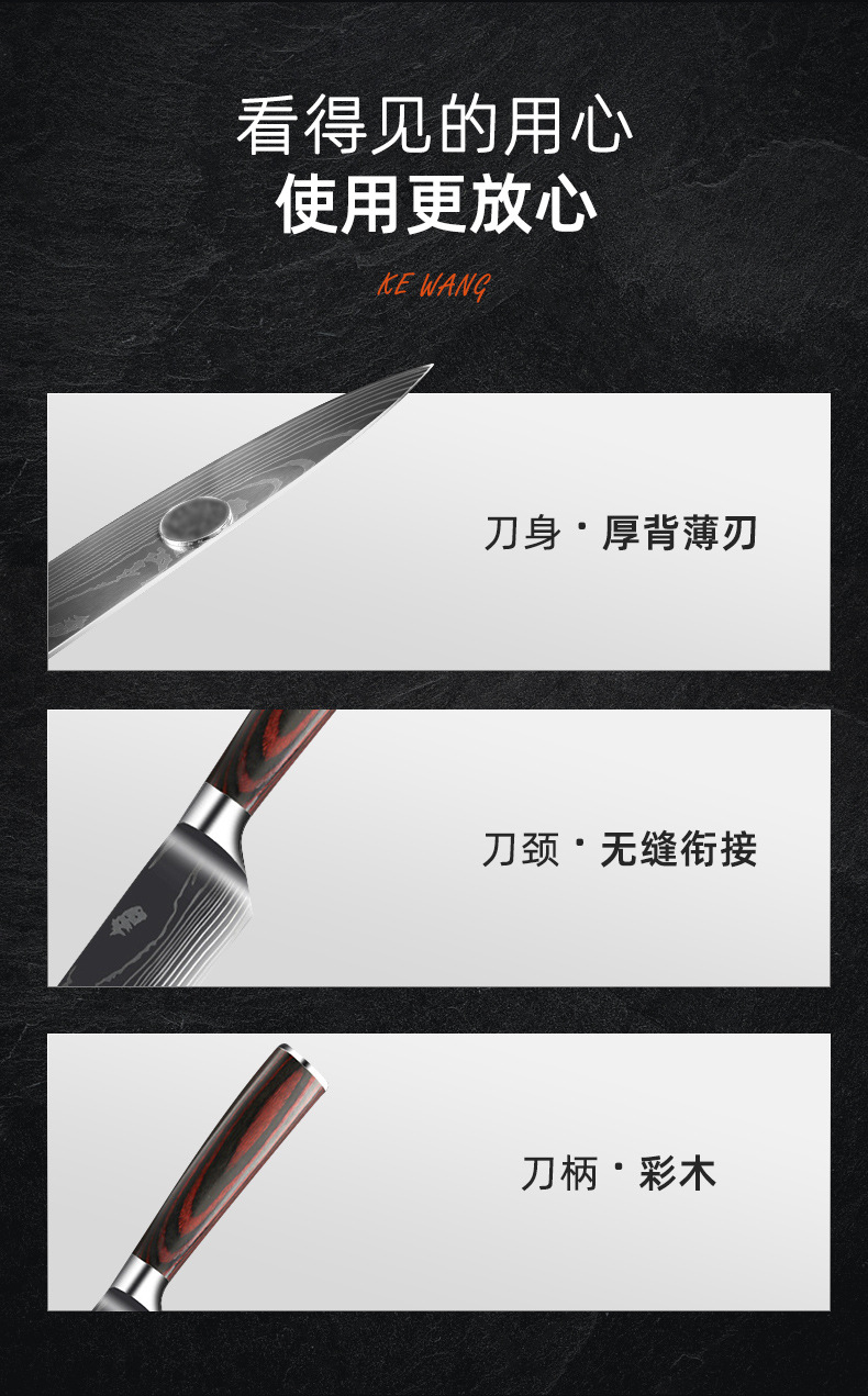 국경 다마스커스 패턴 강철 칼 컬러 우드 8inch 레이저 패턴 요리사 칼 과일 칼 주방 가정용 칼 세트