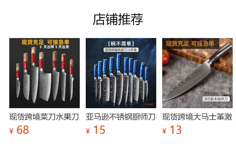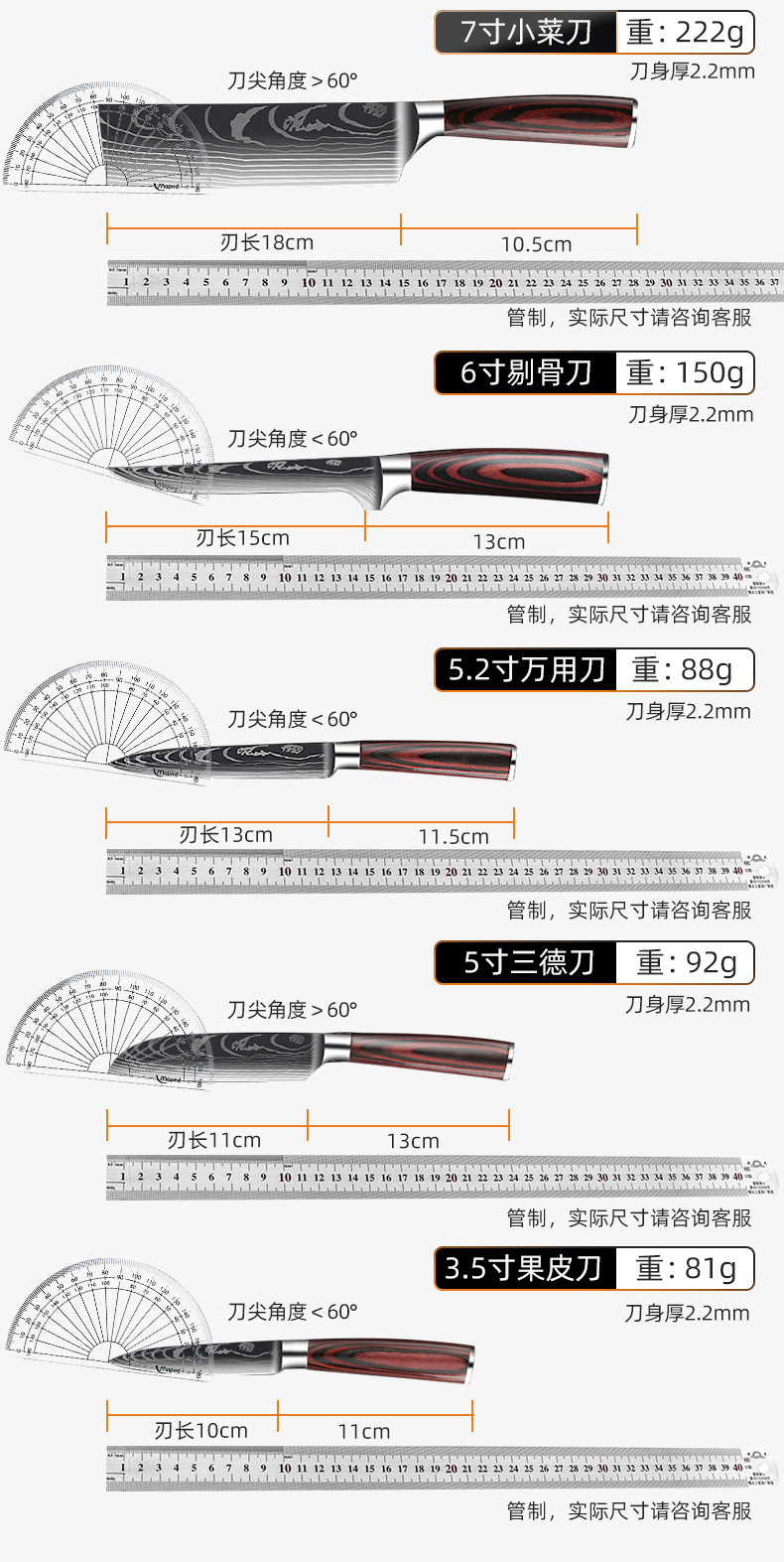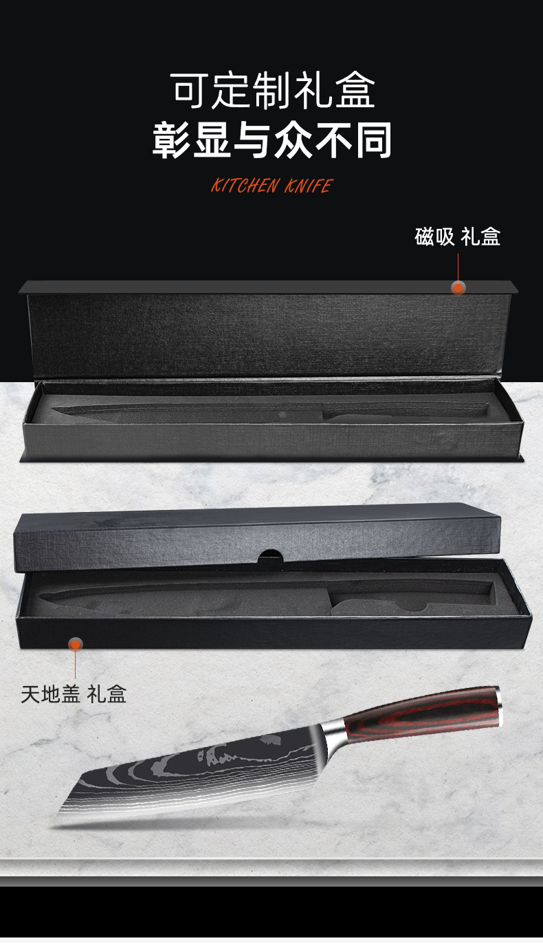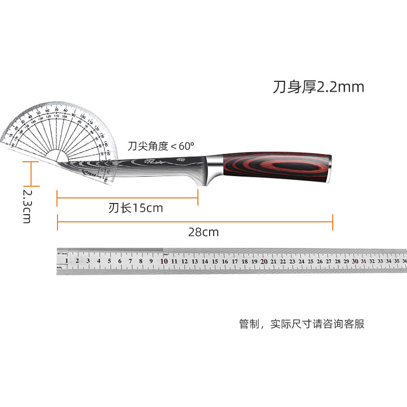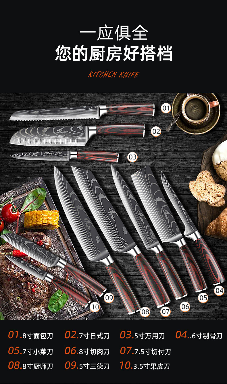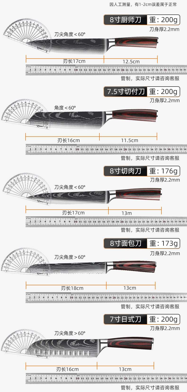 국경 다마스커스 패턴 강철 칼 컬러 우드 8inch 레이저 패턴 요리사 칼 과일 칼 주방 가정용 칼 세트