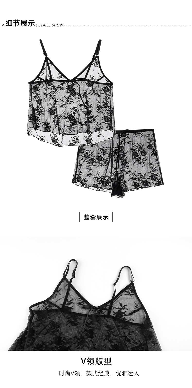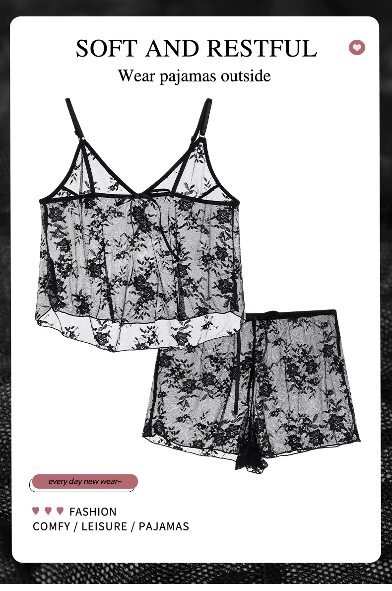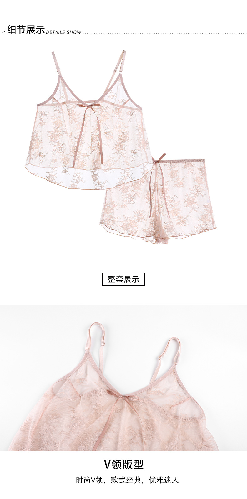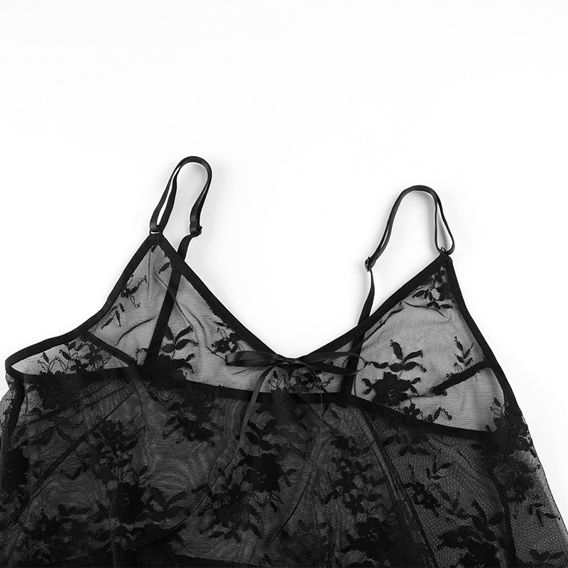 여성용 섹시한 레이스 잠옷, 멜빵 메쉬, 핫걸 홈웨어 세트, 프렌치 퓨어 러스틱 스타일, 펀 이너 조끼