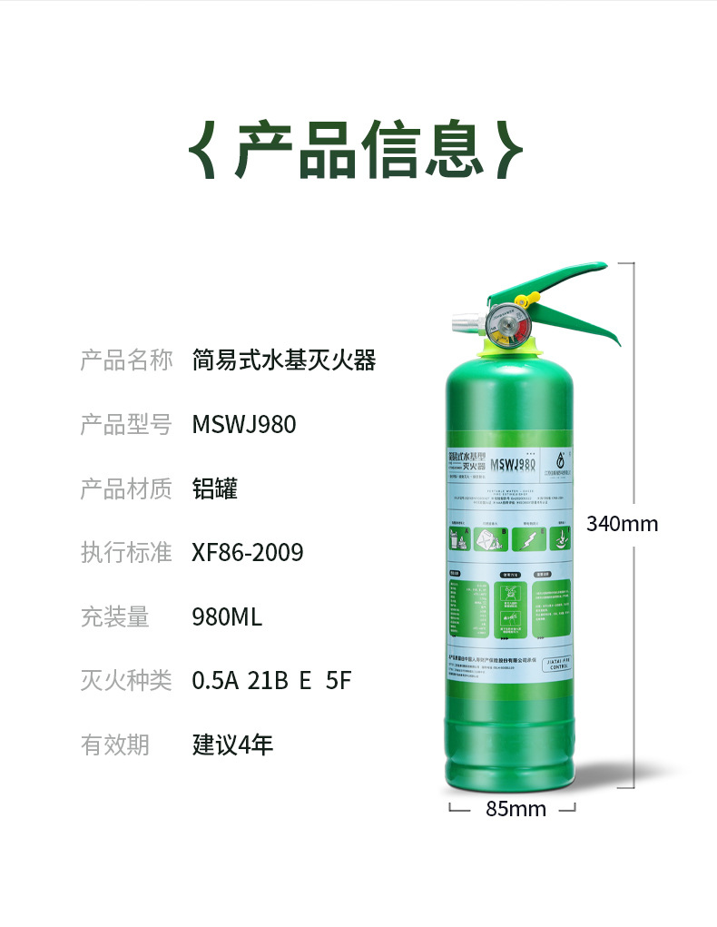 产品品名:简易式水基型灭火器