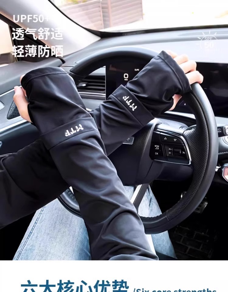 여성을위한 태양 보호 아이스 슬리브 2025 새로운 스타일 사이클링 및 운전 UV 보호 팔 슬리브 태양 보호 블랙 아이스 실크 슬리브