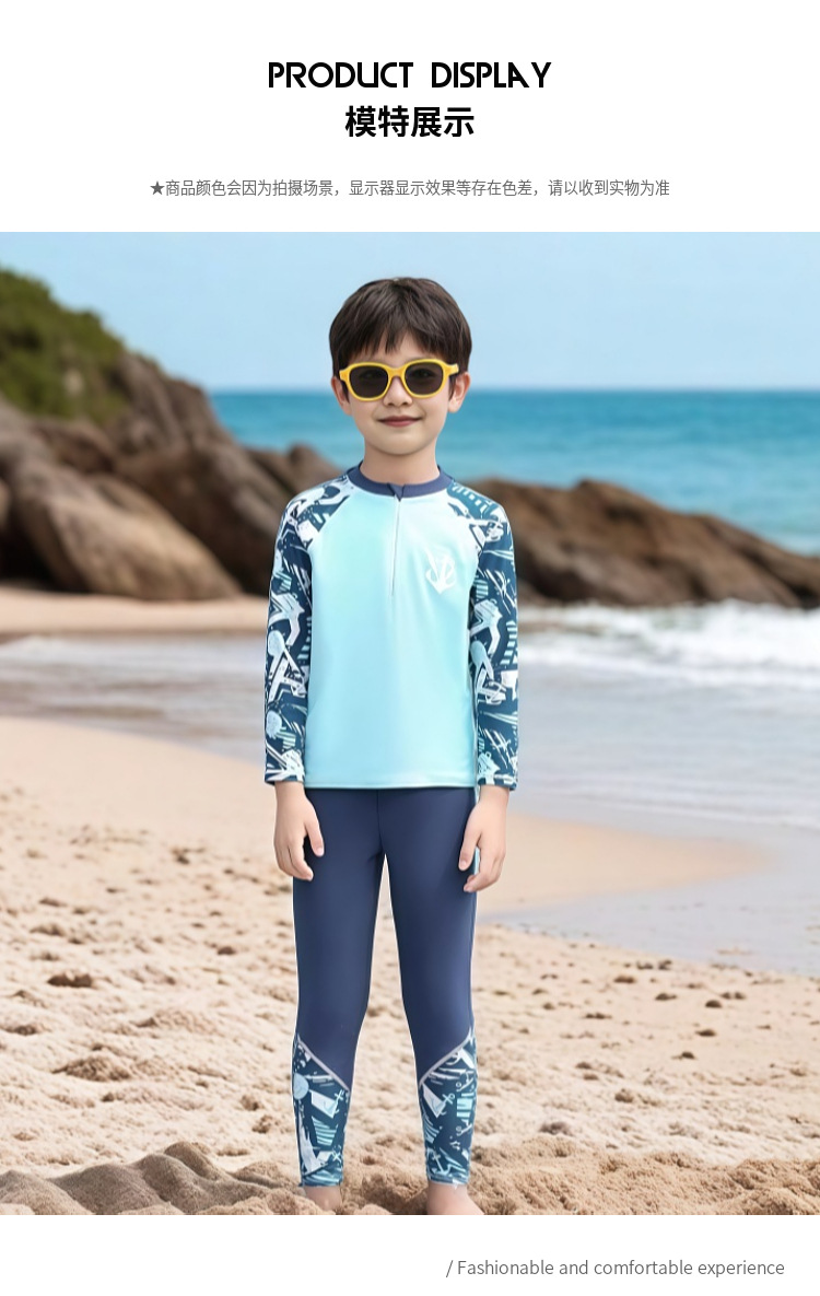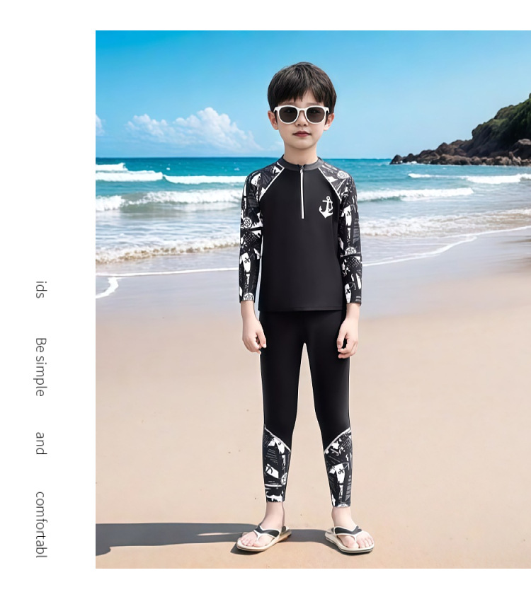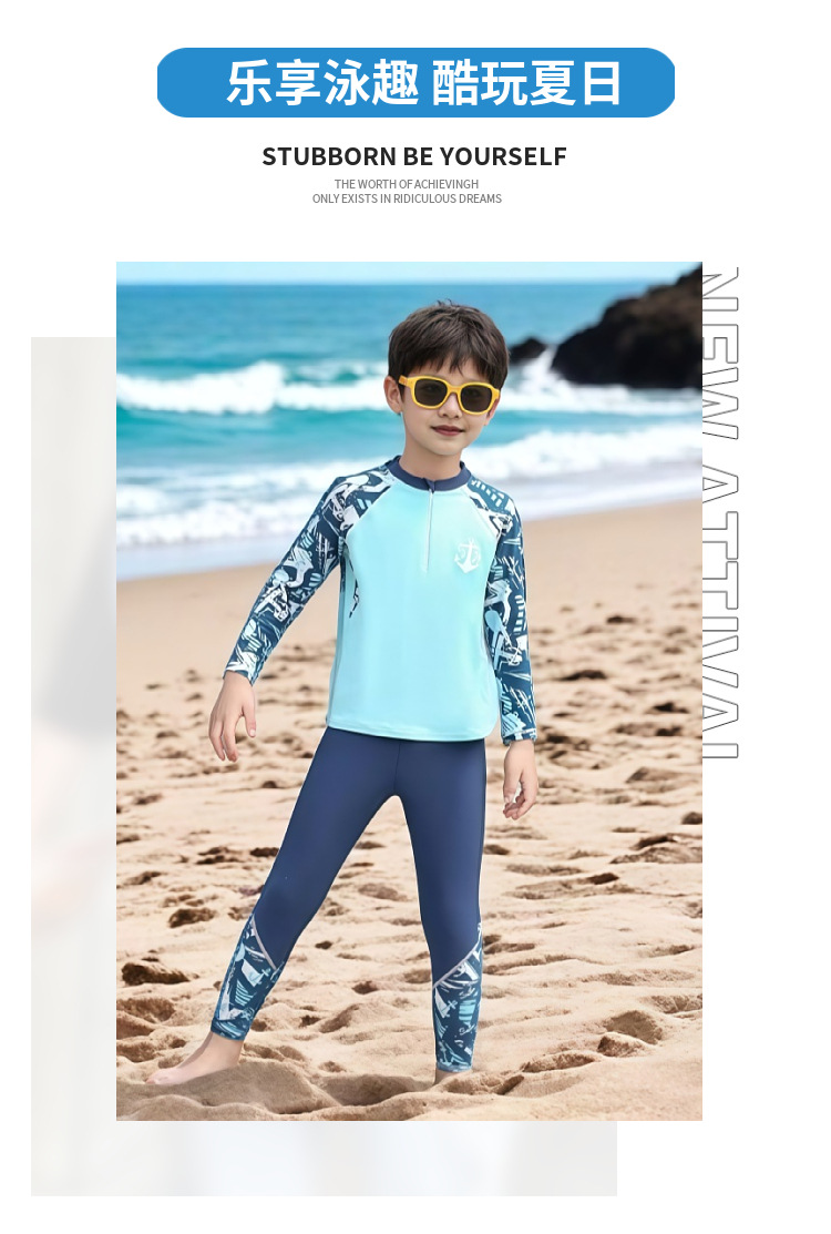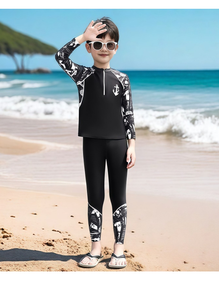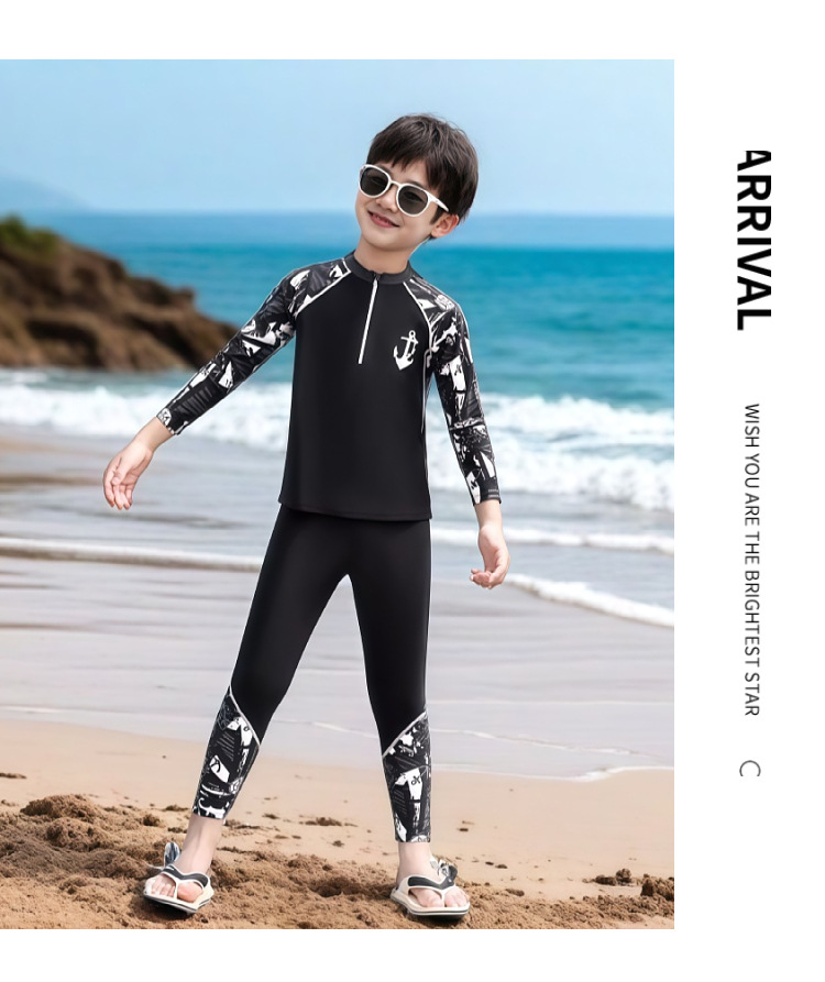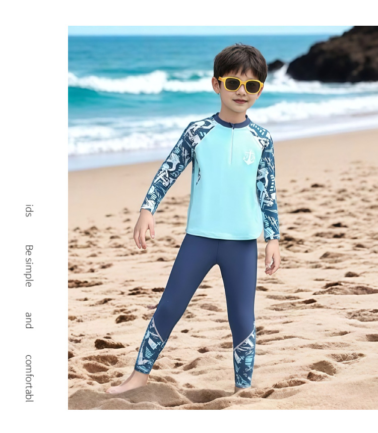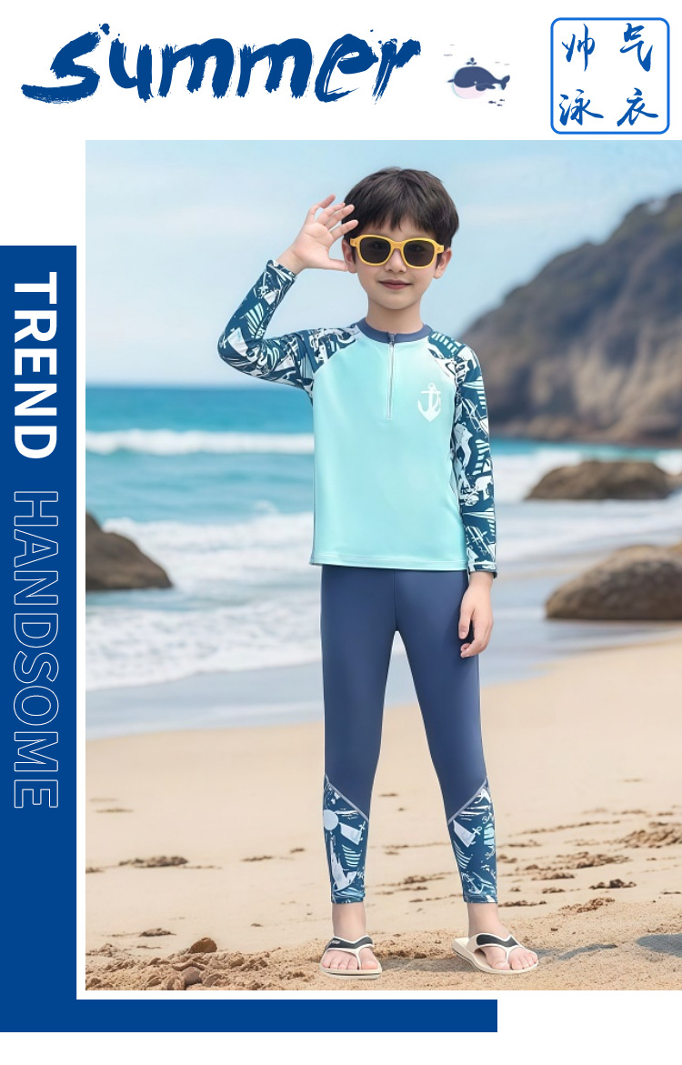어린이 수영복 남아용 중대형 아동용 분리형 자외선 차단 긴팔 긴바지 수영복 2026년 신형 수영복