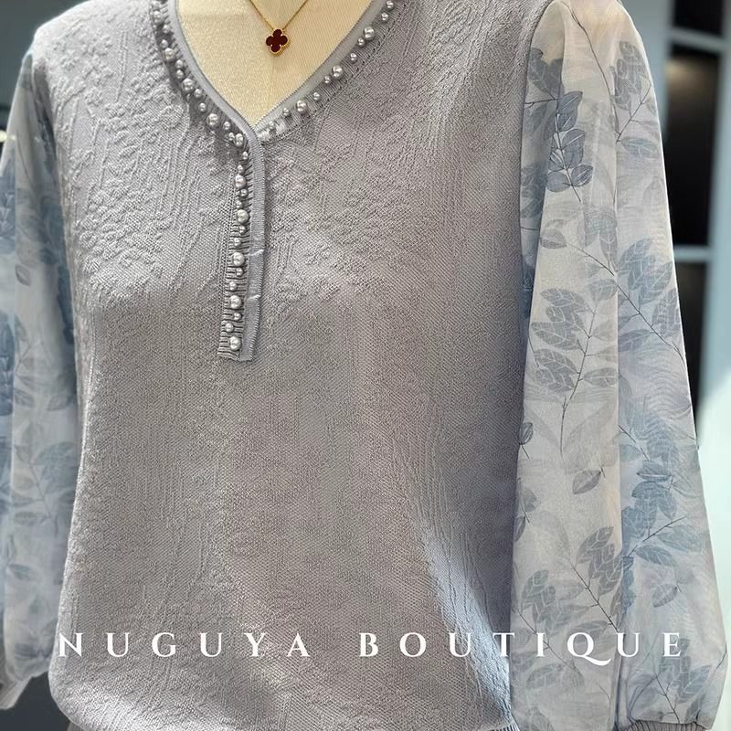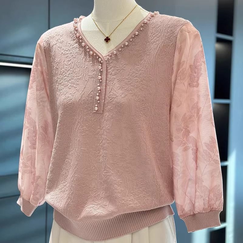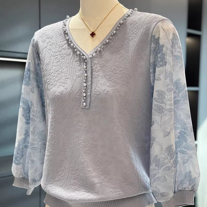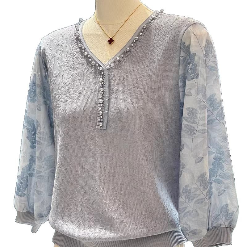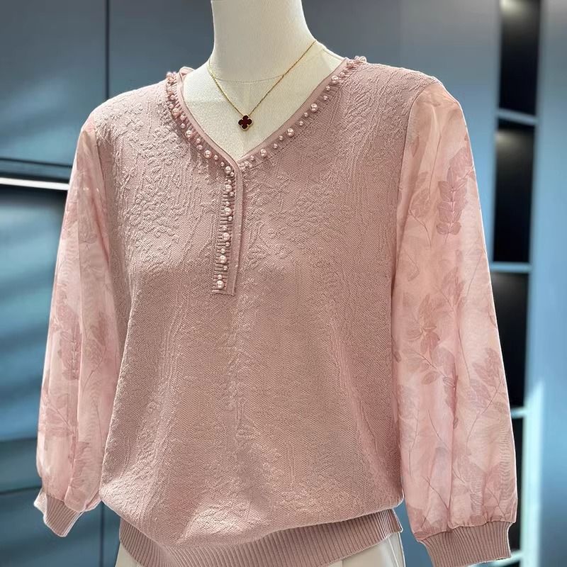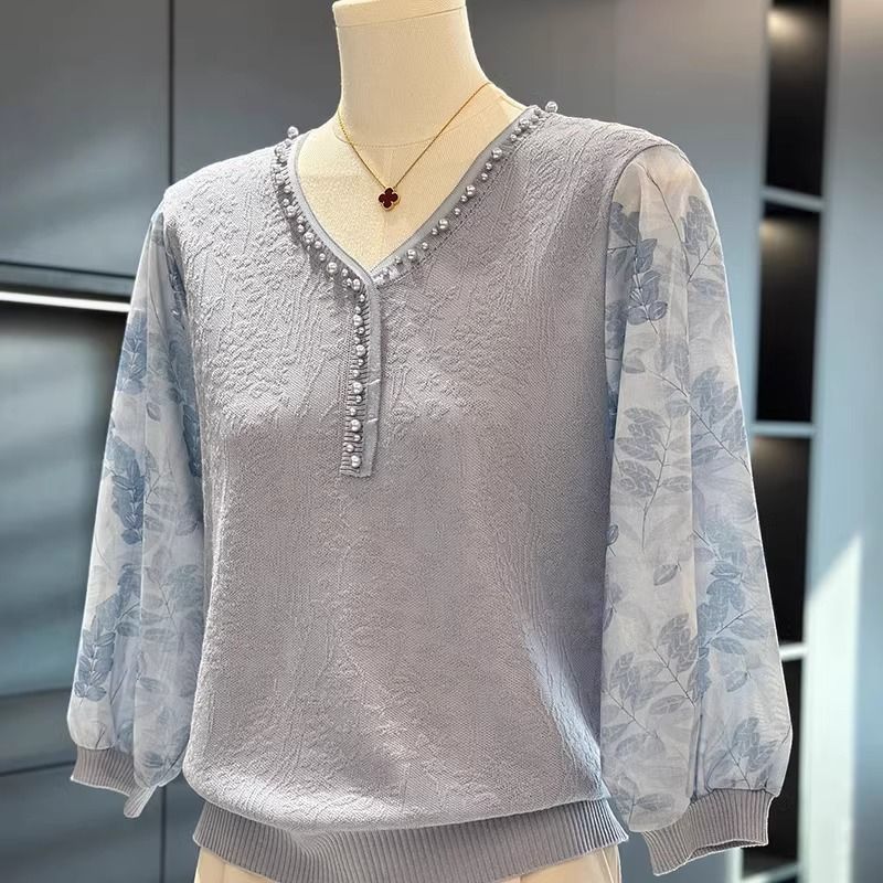 여성과 엄마를 위한 패셔너블하고 스타일리시한 쉬폰 스웨터, 봄 신상 상의, 중장년층을 위한 다재다능한 얇은 셔츠