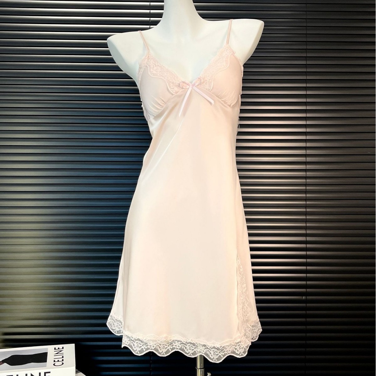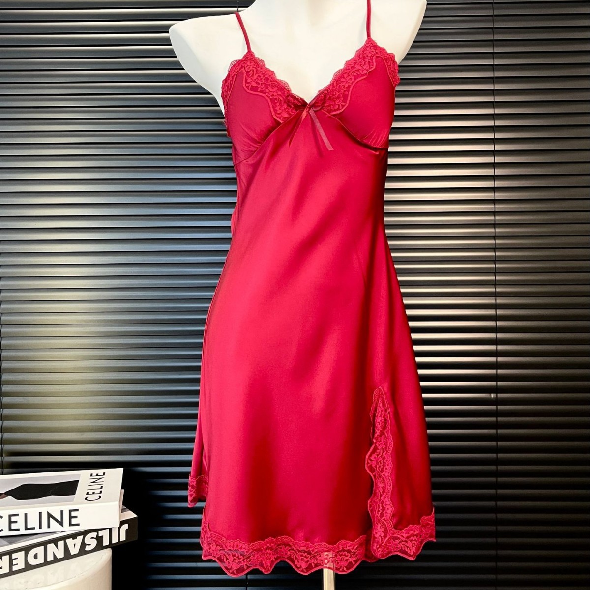 클래식 솔리드 컬러 여성 서스펜더 잠옷, 투피스 세트, 봄 여름 레이스 여름 가슴 패드, 달콤한 얼음 실크 홈웨어