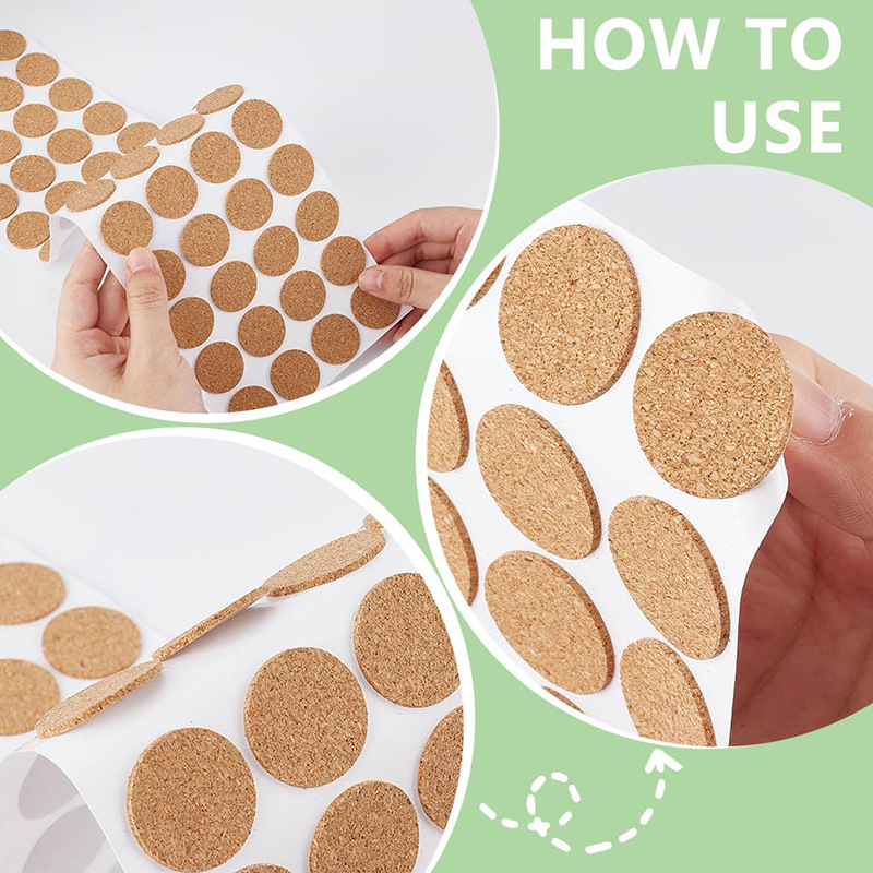 자체 접착 코르크 패드, 원형 자체 접착 코르크 라벨, 멀티 사이즈 미끄럼 방지 및 충격 흡수 코르크 패드 공급