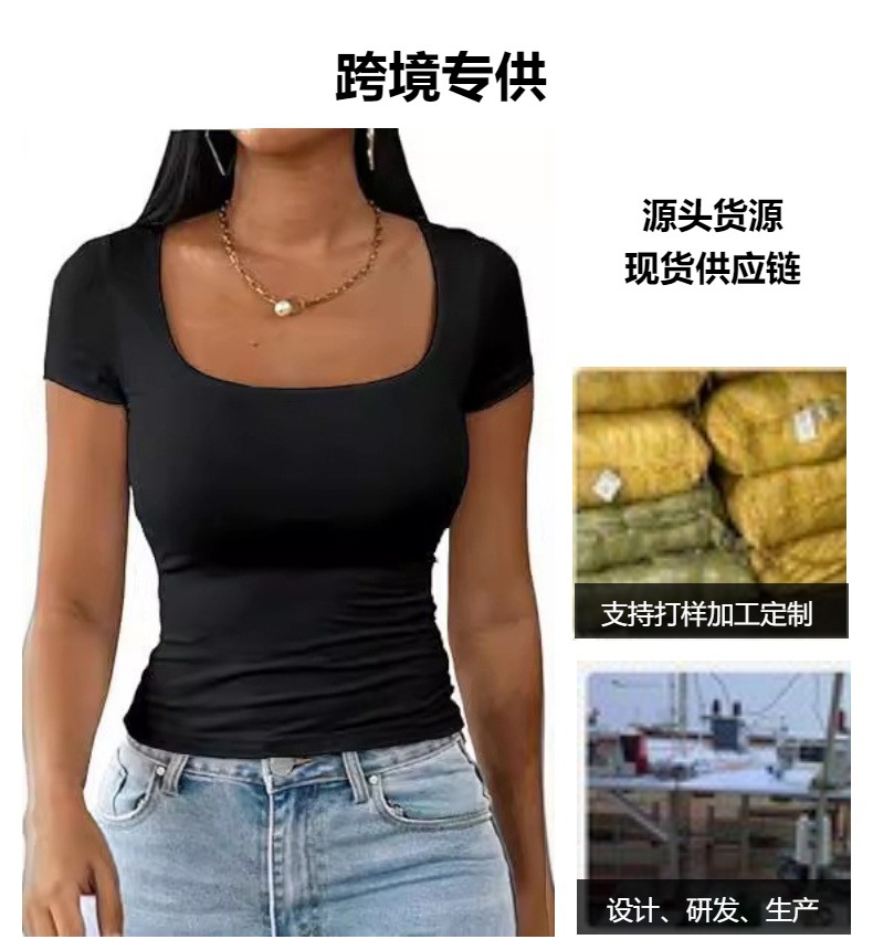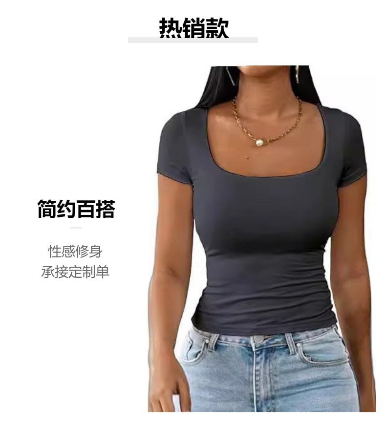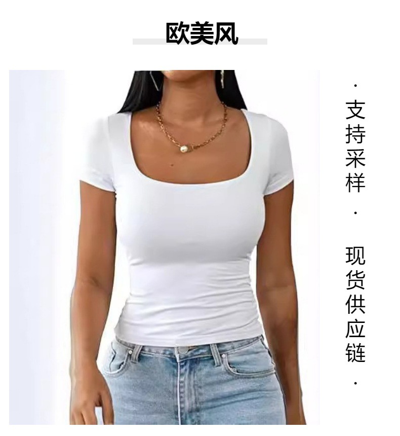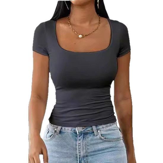 아마존 유럽 및 미국 해외 여성복 2026 신상 티셔츠 단색 섹시한 딥 U넥 반팔 탑 여성 슬림핏 다용도