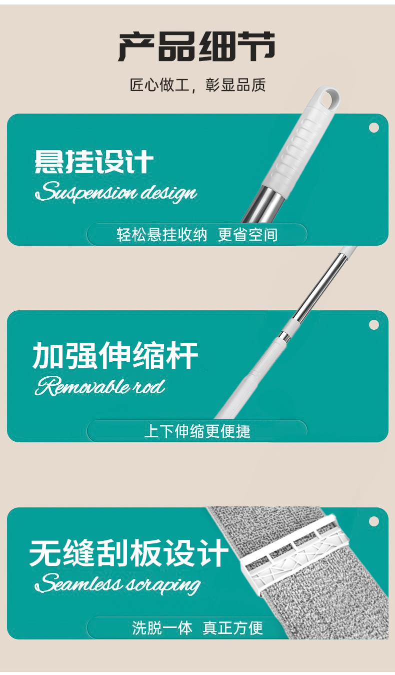 새로운 핸즈프리 평면 걸레, 가정용 이중 목적, 1개의 걸레, 접이식 걸레, 게으른 스크래퍼, 바닥 걸레 도매