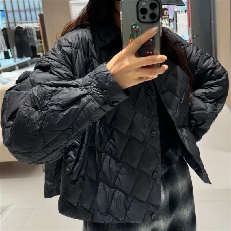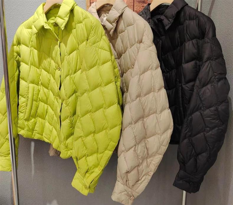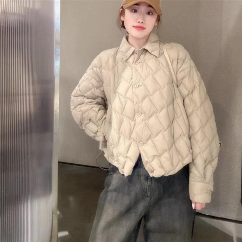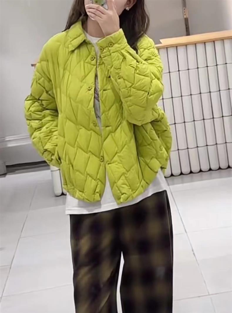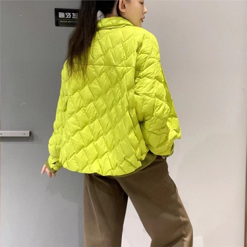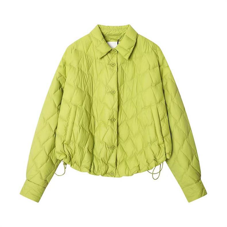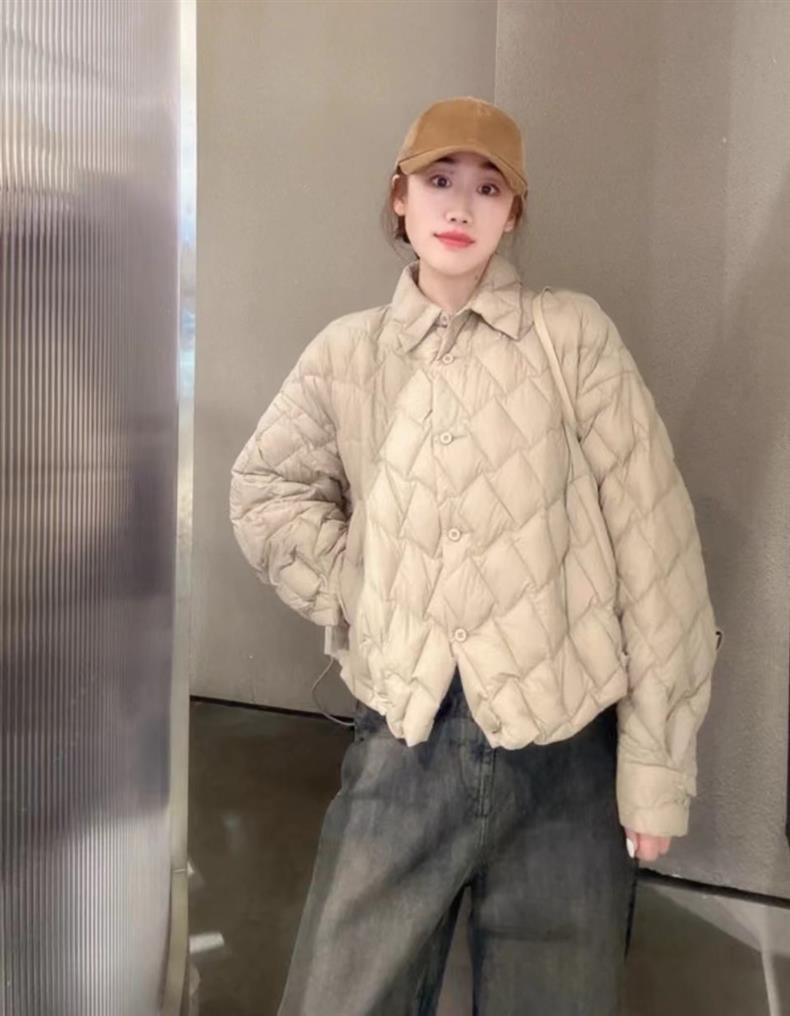 고급 버전 스팟 도파민 캔디 컬러 마름모 격자 라이트 다운 재킷 셔츠 칼라 여성용 하이 엔드 짧은 재킷