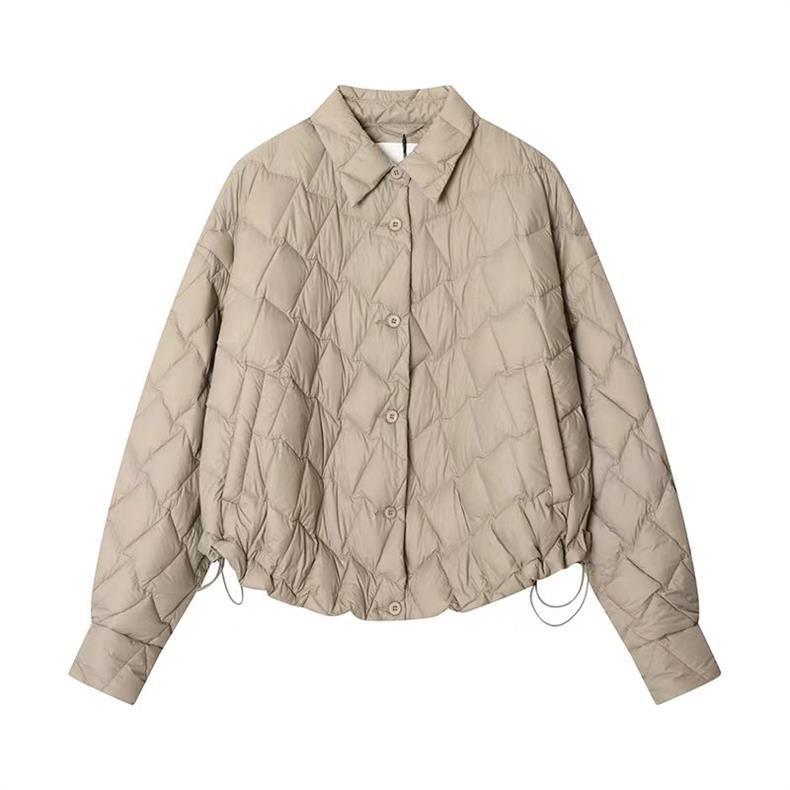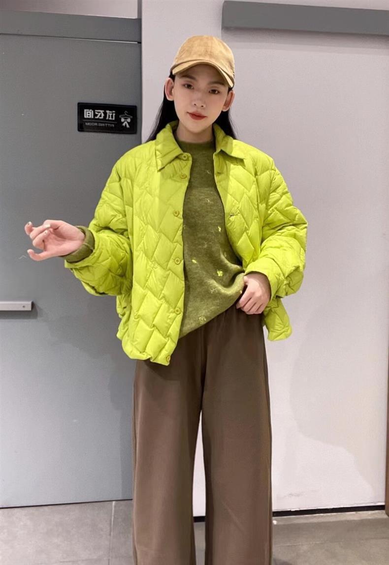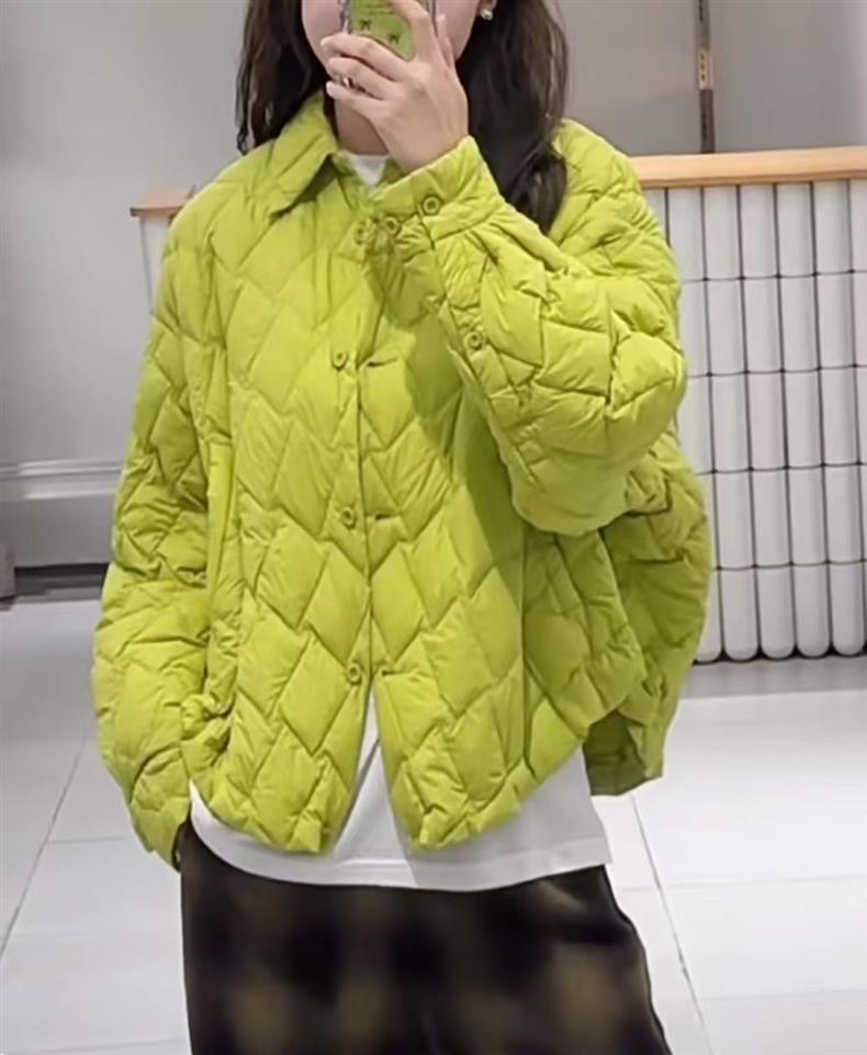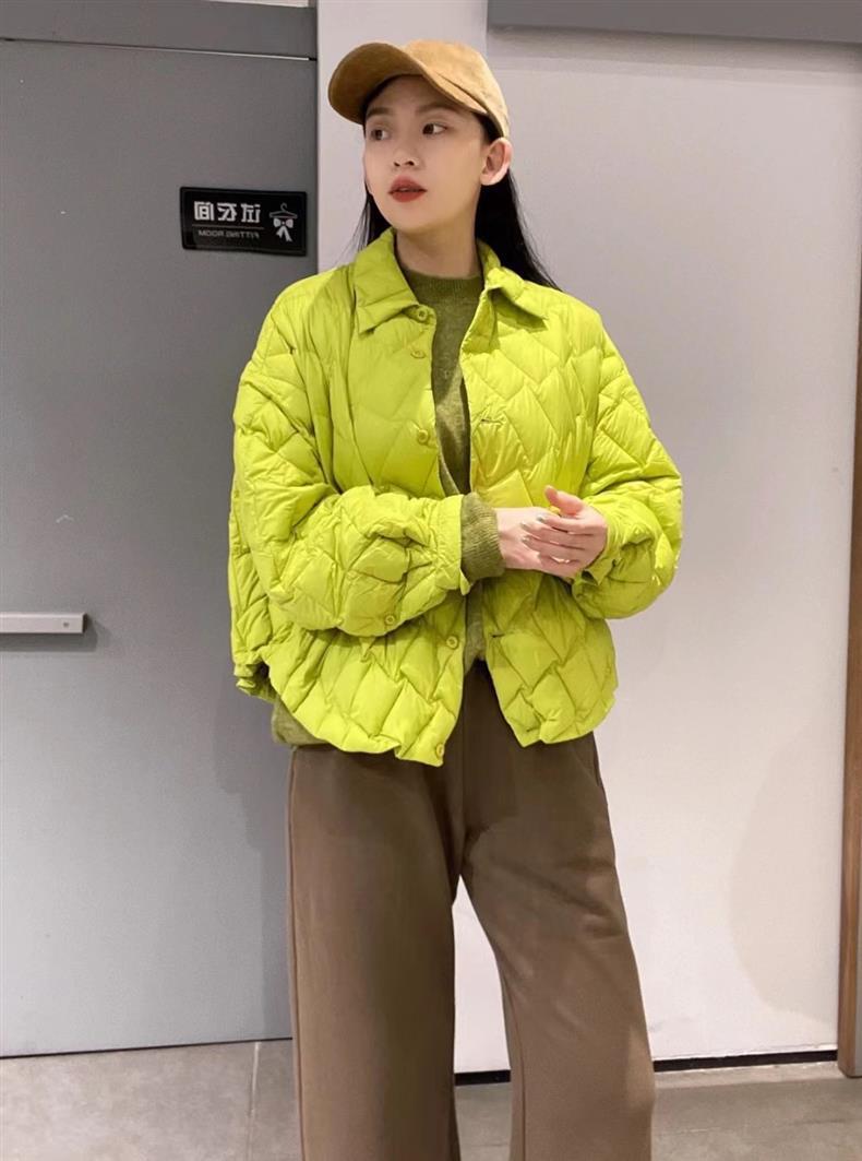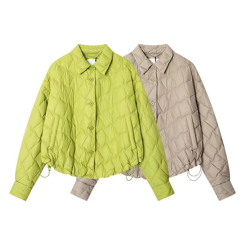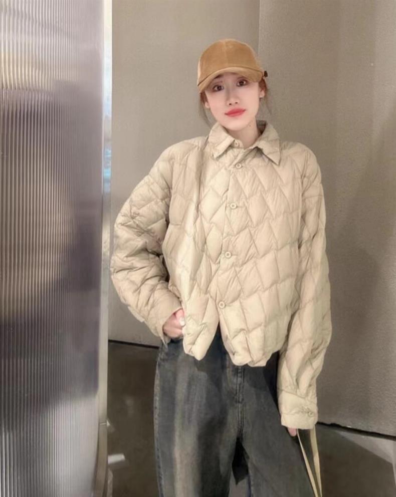 고급 버전 스팟 도파민 캔디 컬러 마름모 격자 라이트 다운 재킷 셔츠 칼라 여성용 하이 엔드 짧은 재킷