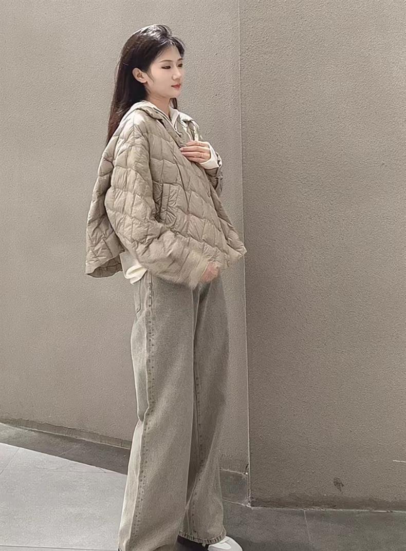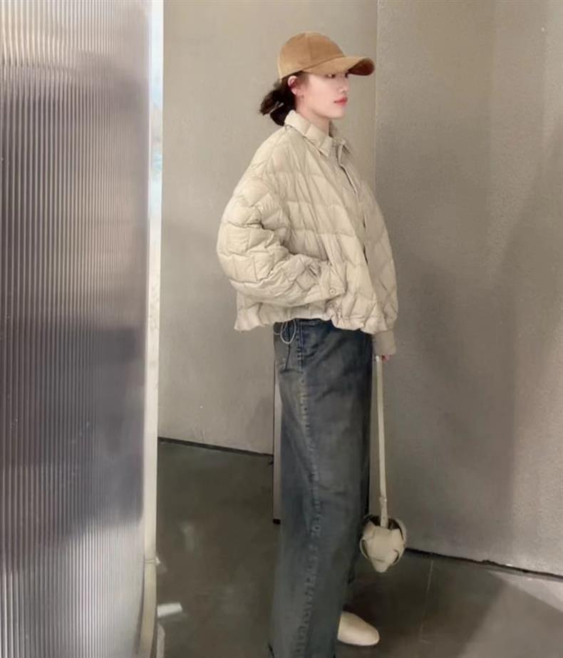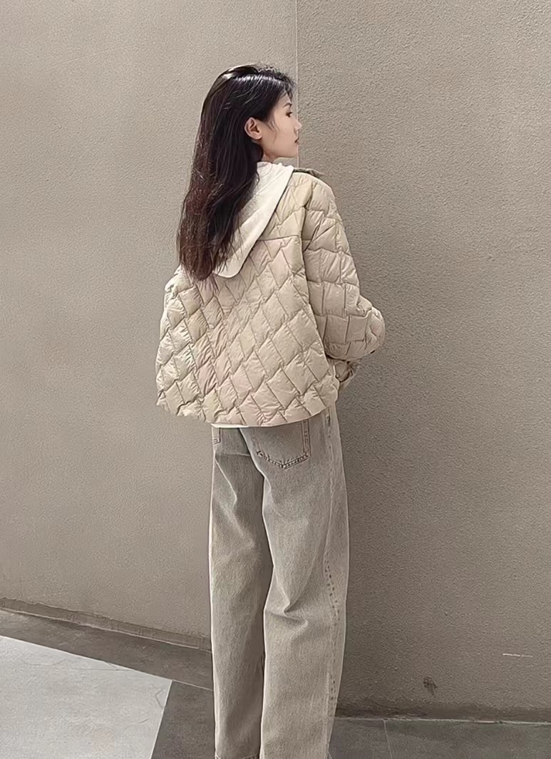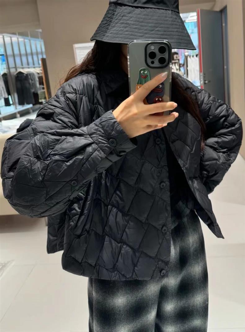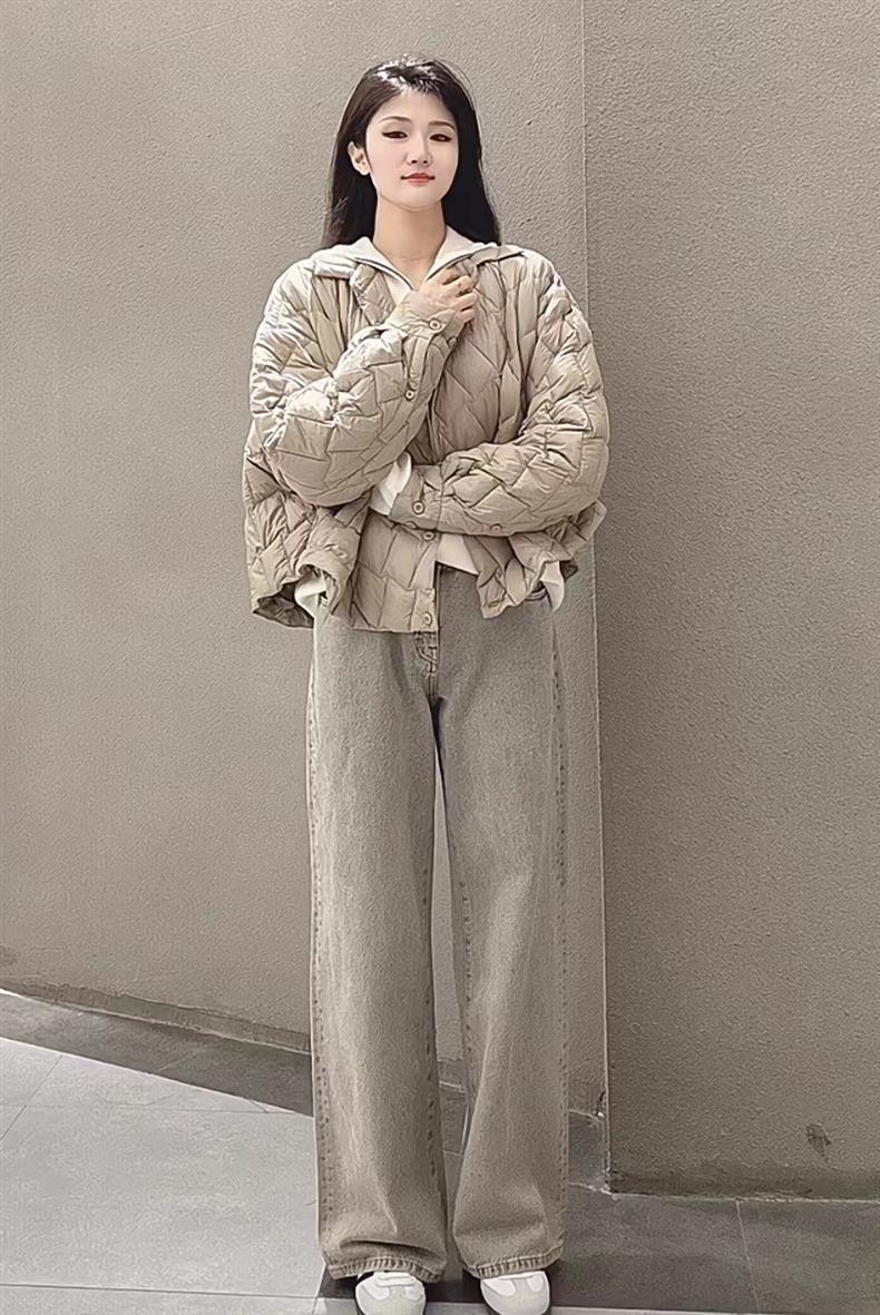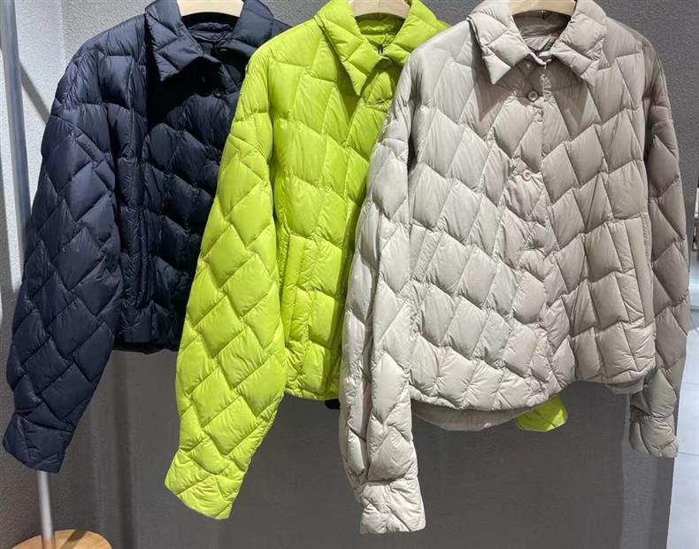 고급 버전 스팟 도파민 캔디 컬러 마름모 격자 라이트 다운 재킷 셔츠 칼라 여성용 하이 엔드 짧은 재킷