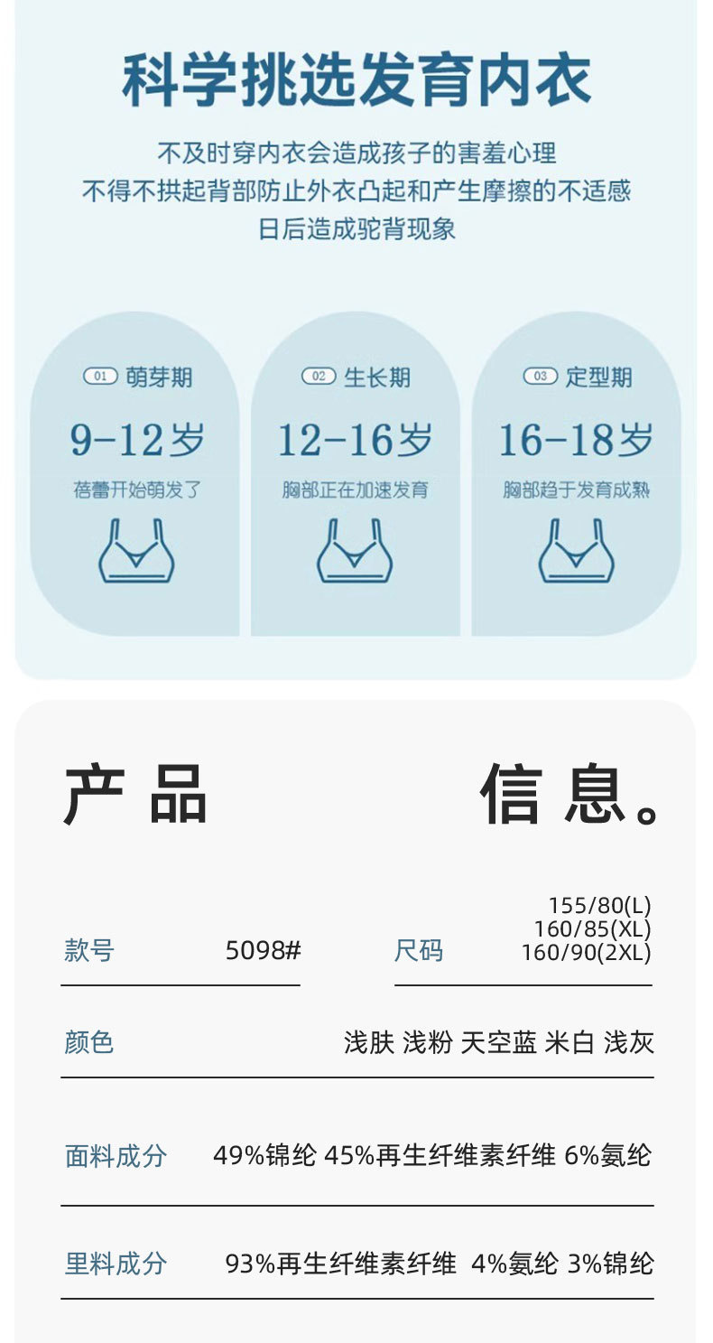 Omeifen 봄과 여름 새로운 여자 발달 기간 속옷 원활한 스레드 조끼 여자 중학생 브래지어 제조 업체 도매