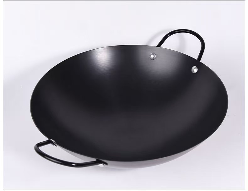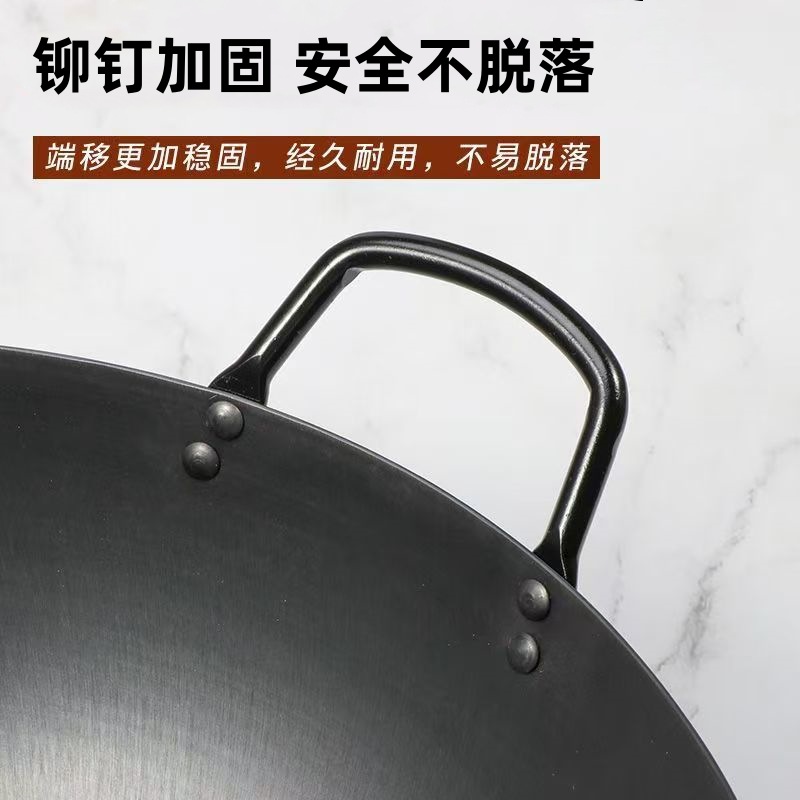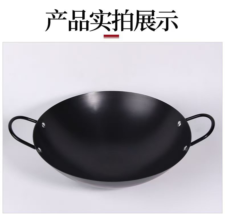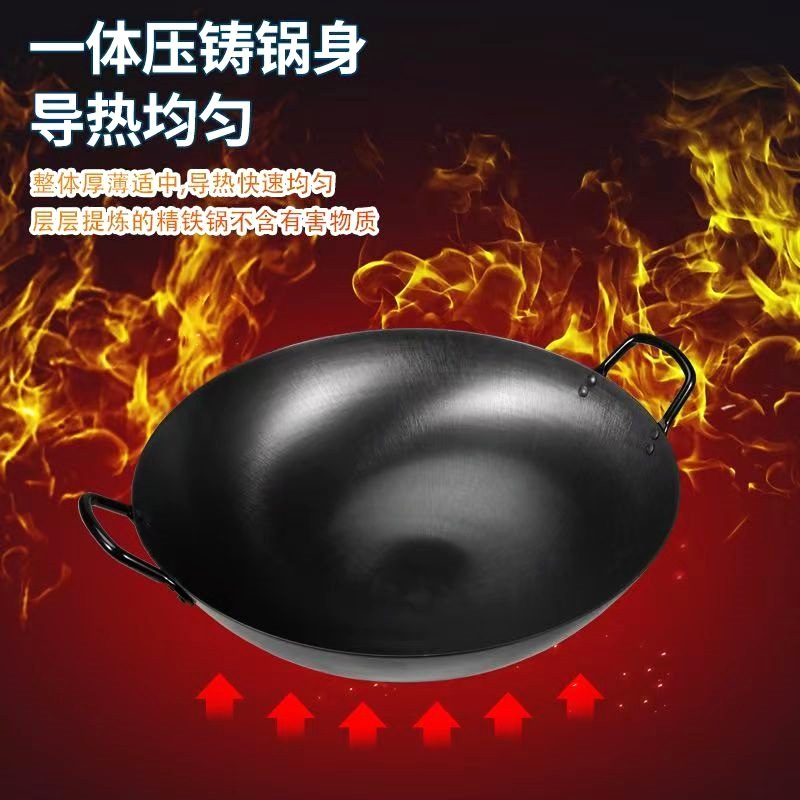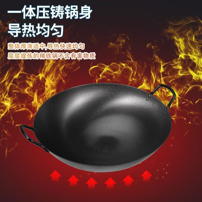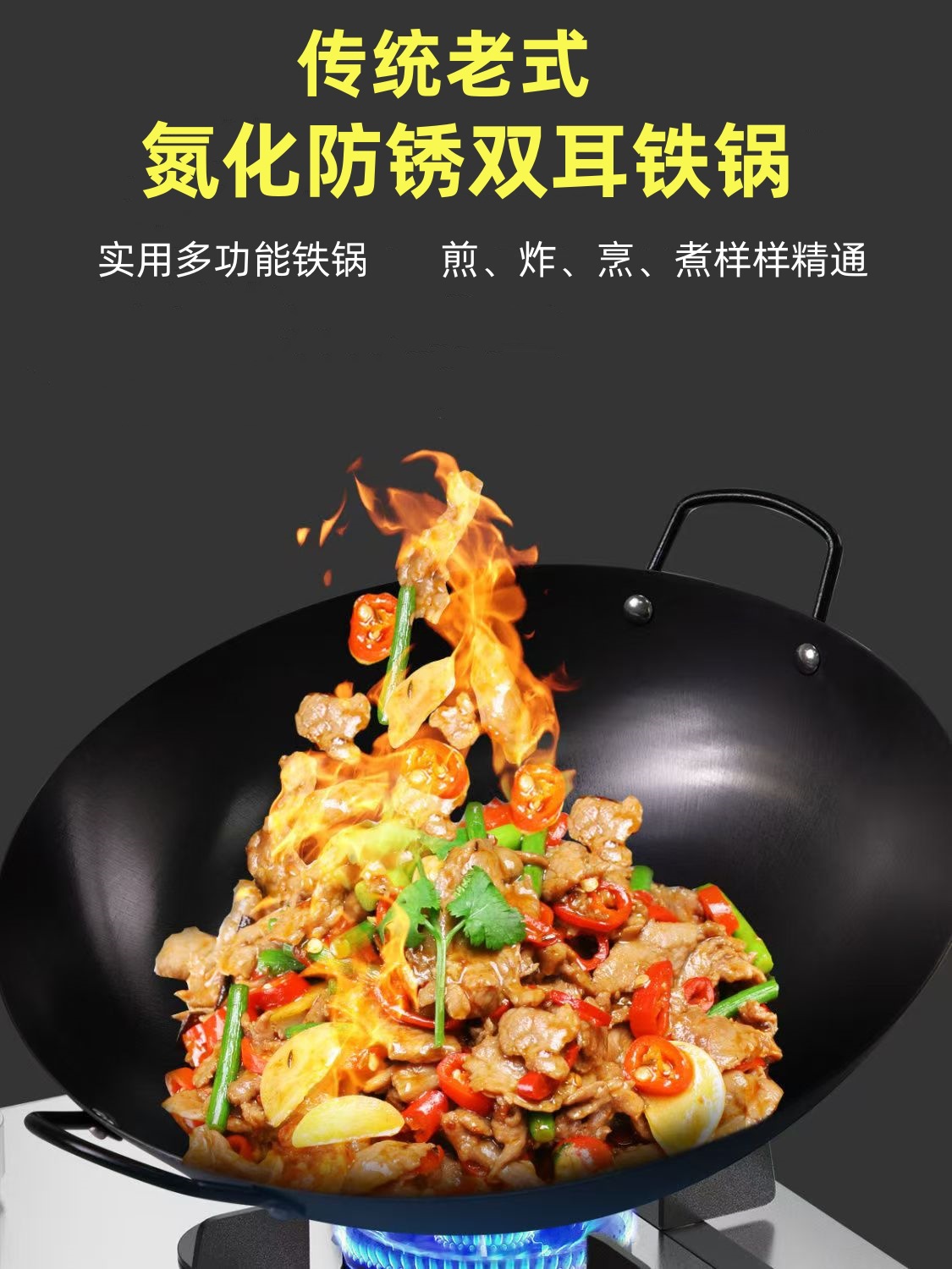 녹 방지 질화 이중 귀 철 냄비 상업용 가스 스토브 둥근 바닥은 끈적임이 쉽지 않으며 코팅되지 않은 구식 가정용 주방 냄비