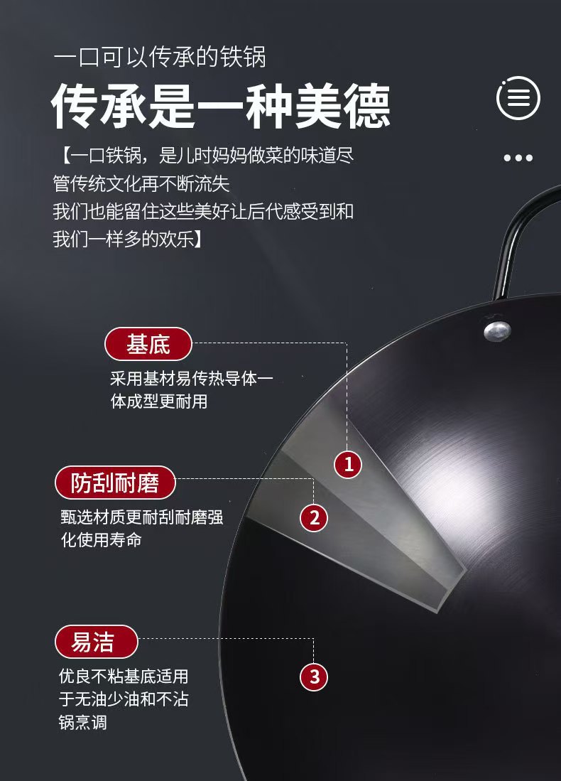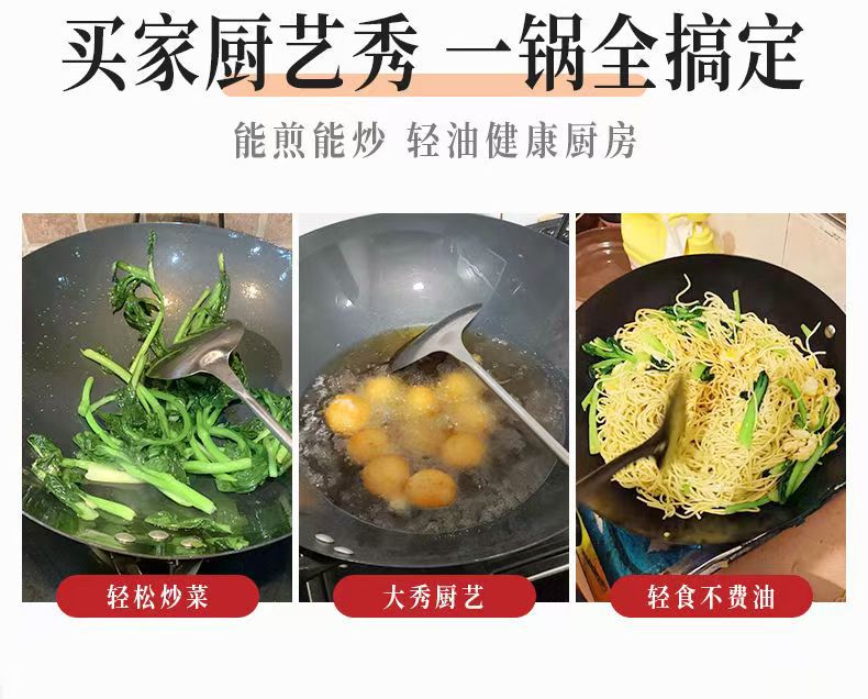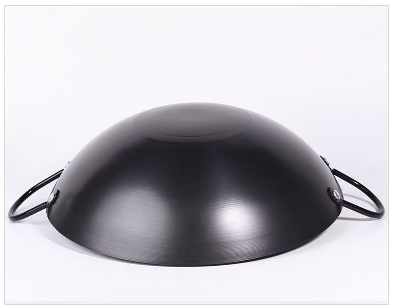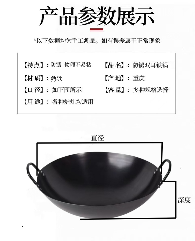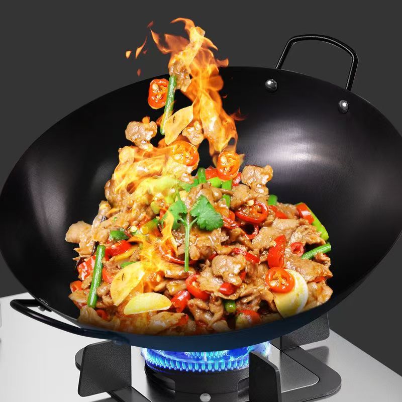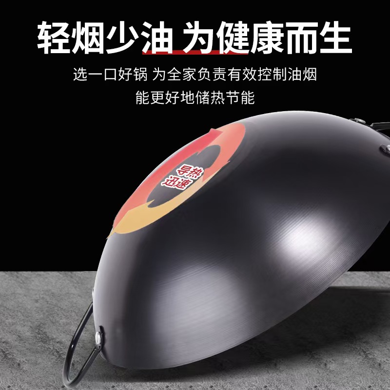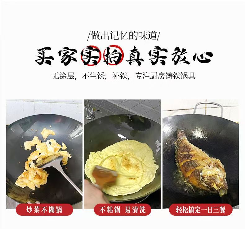 녹 방지 질화 이중 귀 철 냄비 상업용 가스 스토브 둥근 바닥은 끈적임이 쉽지 않으며 코팅되지 않은 구식 가정용 주방 냄비