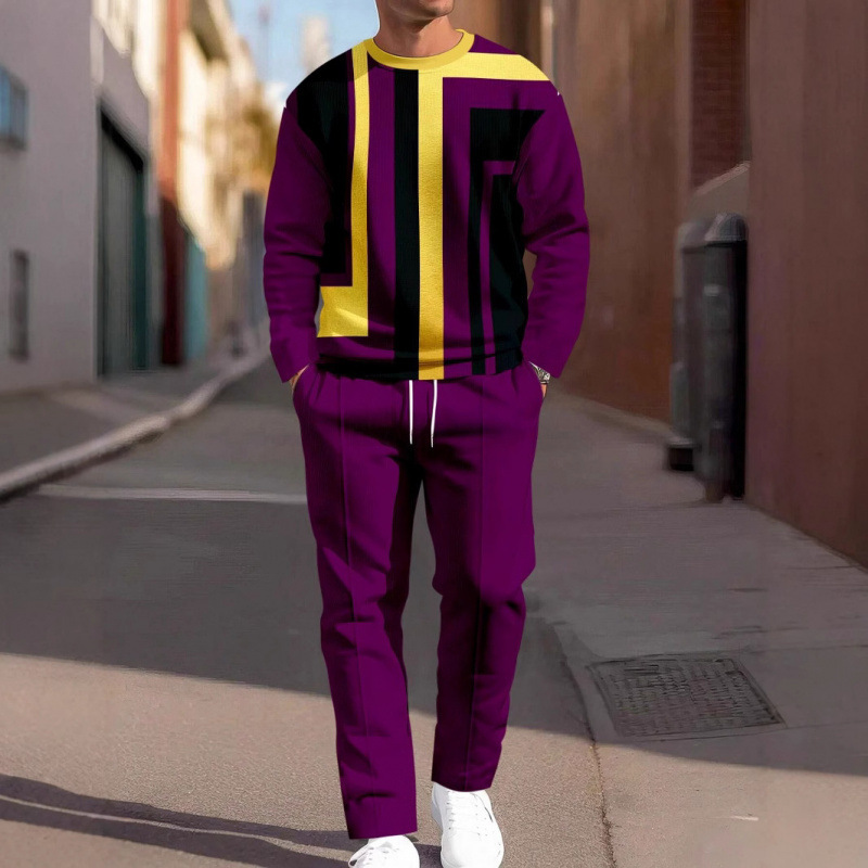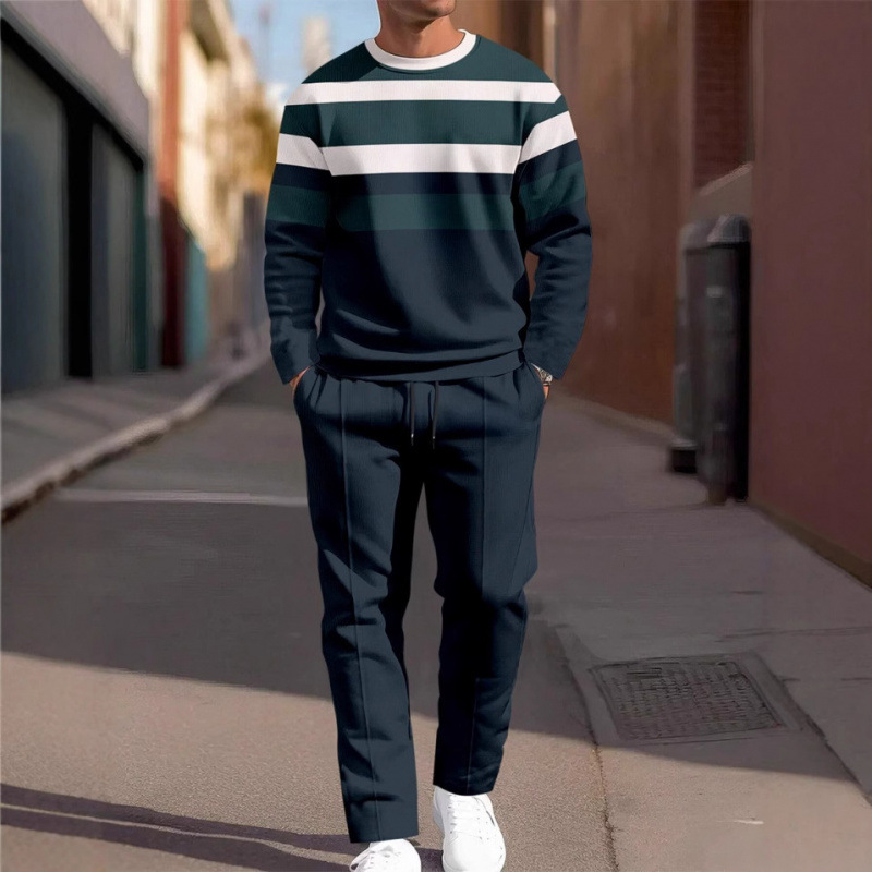 국경 간 남성 봄, 가을 Amazon 남성 라운드 넥 3D 프린트 캐주얼 스포츠 스웨트 남성 긴팔 바지 트렌디 세트