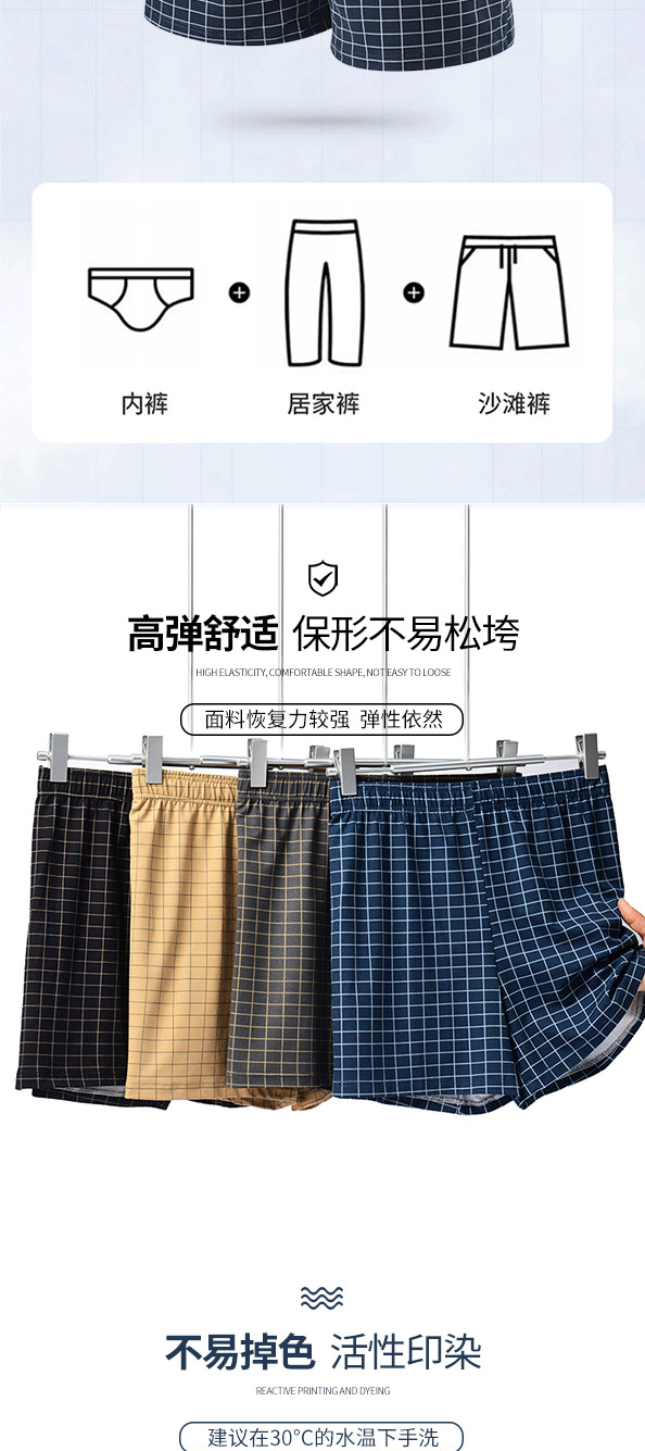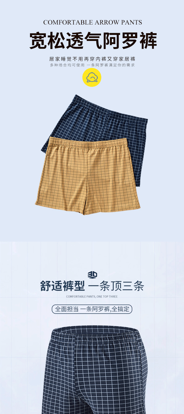 남성용 Arrow Pants 남성용 통기성 루즈 복서 팬티 남성용 니트 파자마 청소년 격자 무늬 복서 반바지