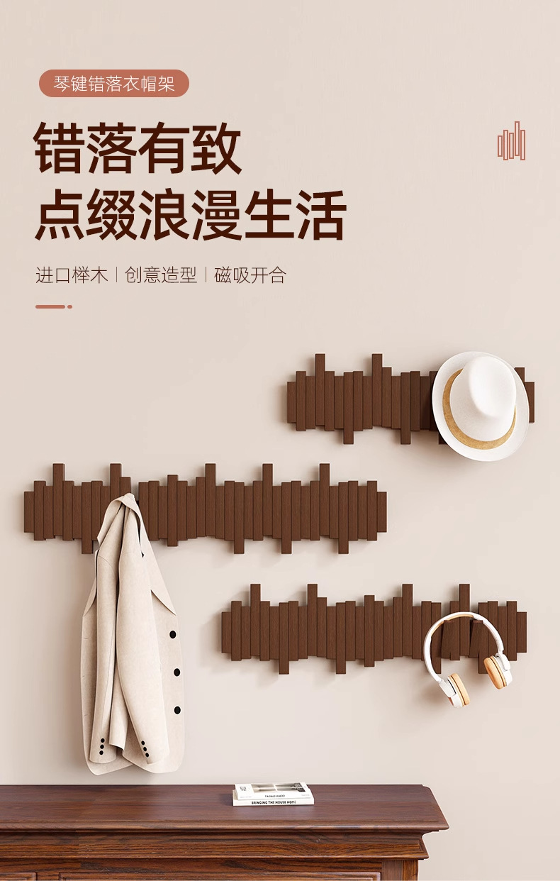 피아노 건반 모양 옷걸이 원목 옷걸이 침실 옷걸이 가정용 가방걸이 옷 정리대 튼튼한 옷걸이