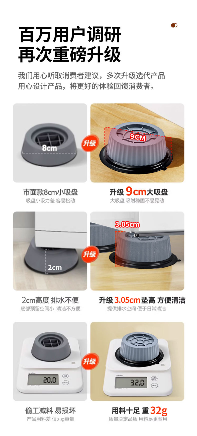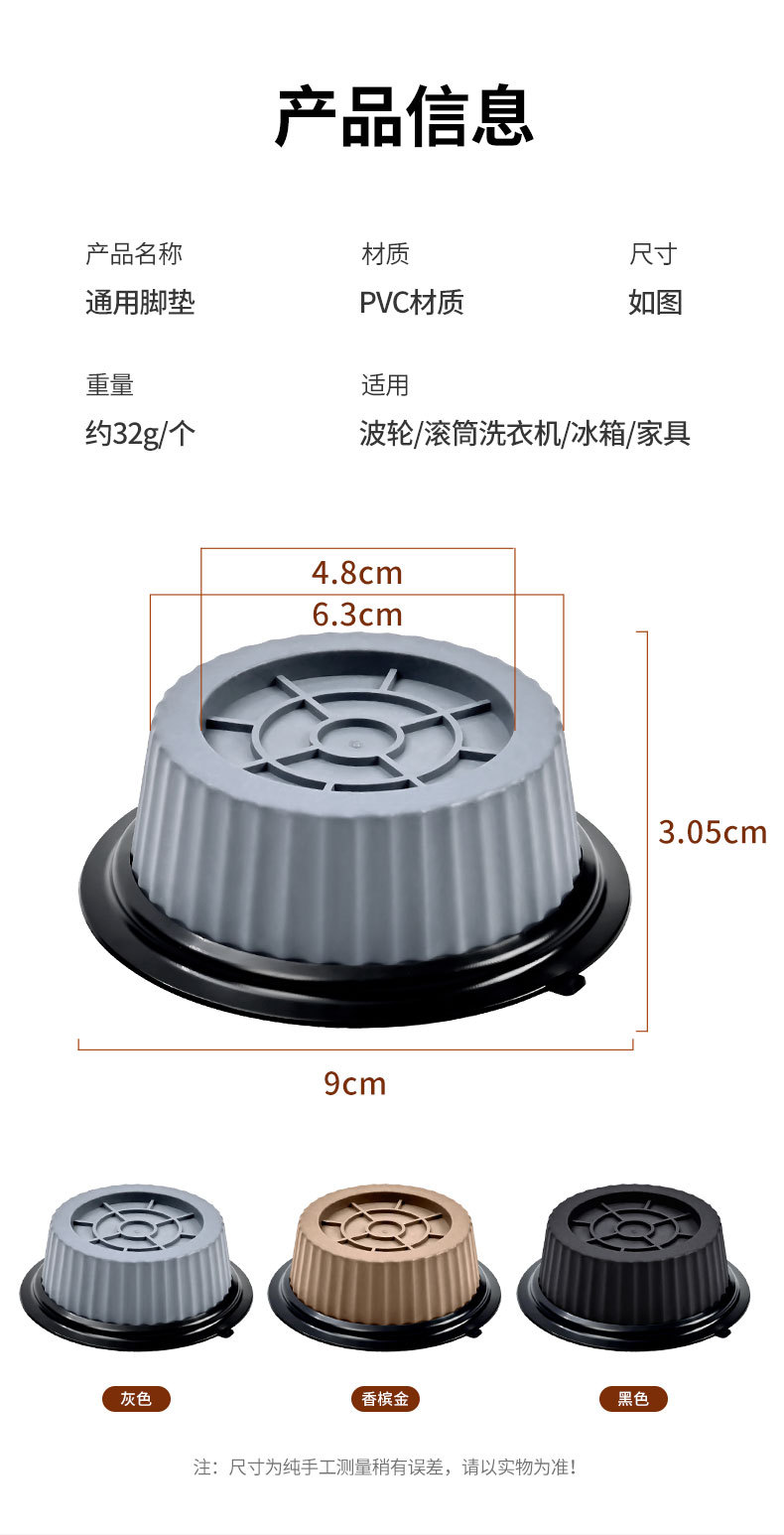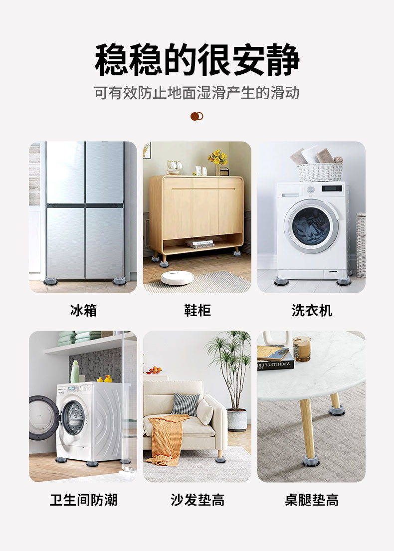 가구 안정화 및 높이 패드, 세탁기 발 패드, 범용 무소음 미끄럼 방지 냉장고 플라스틱 가정용 베이스 충격 방지 패드