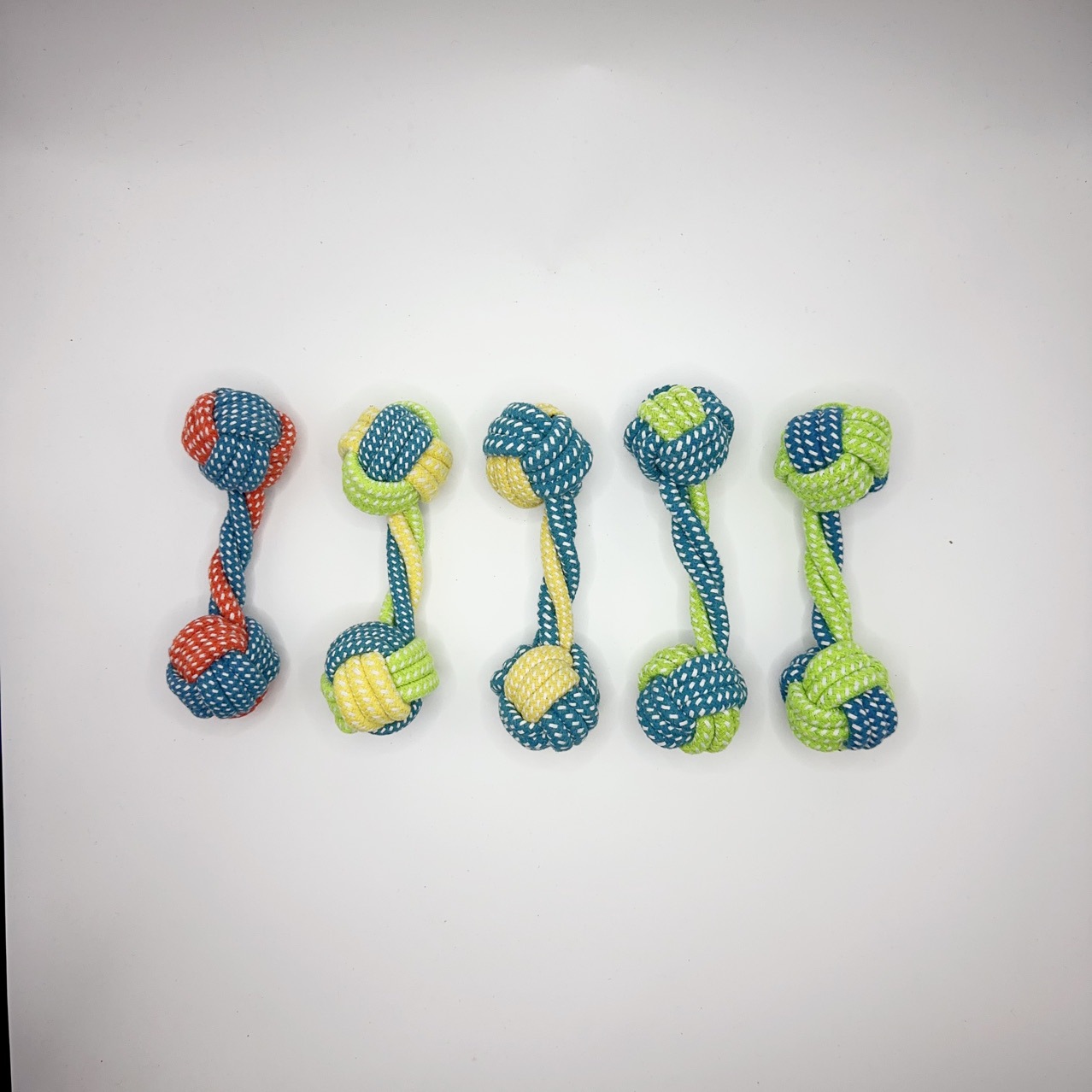 애완동물 치아갈이 장난감, 강아지 덤벨볼, 면로프로 엮은 양면 매듭 로프볼, 지루함 해소용품, 강아지 재미있는 덤벨