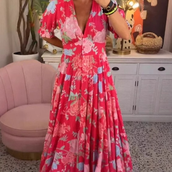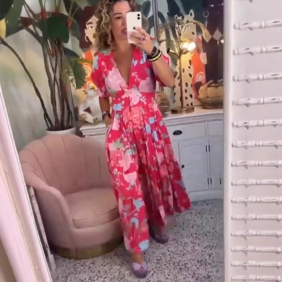 2024 새로운 대형 슈퍼 요정 고탄성 v 넥 꽃 드레스 해변 휴가 해변 드레스 느슨한 롱 스커트