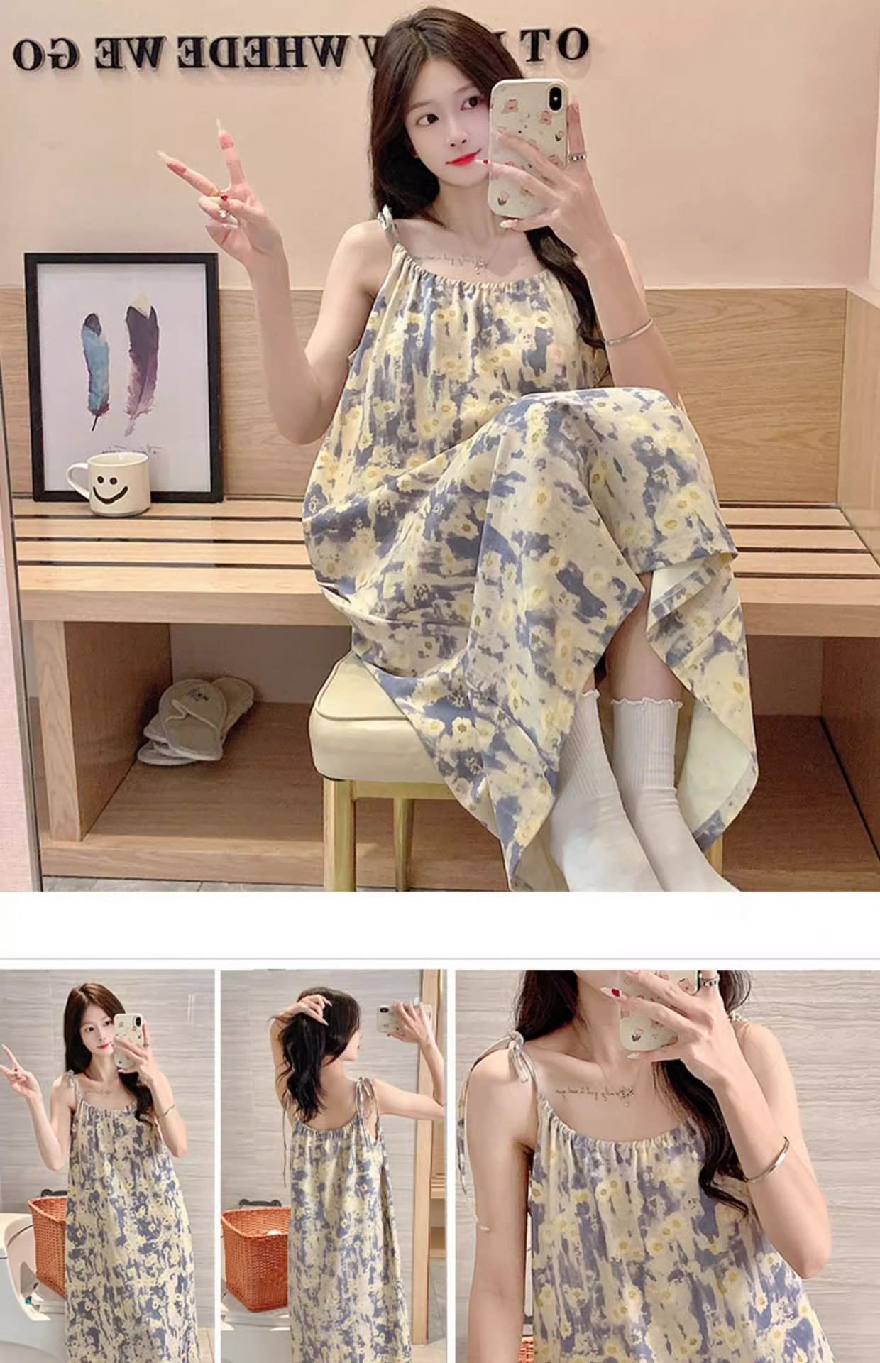 새로운 스타일 잠옷 여성 잠옷 캐미솔 통기성 스트레치 여성 캐주얼 캐미솔 홈웨어 클라우드 코튼 중간 길이