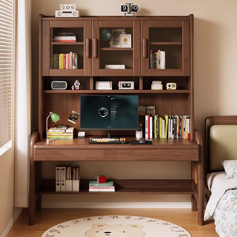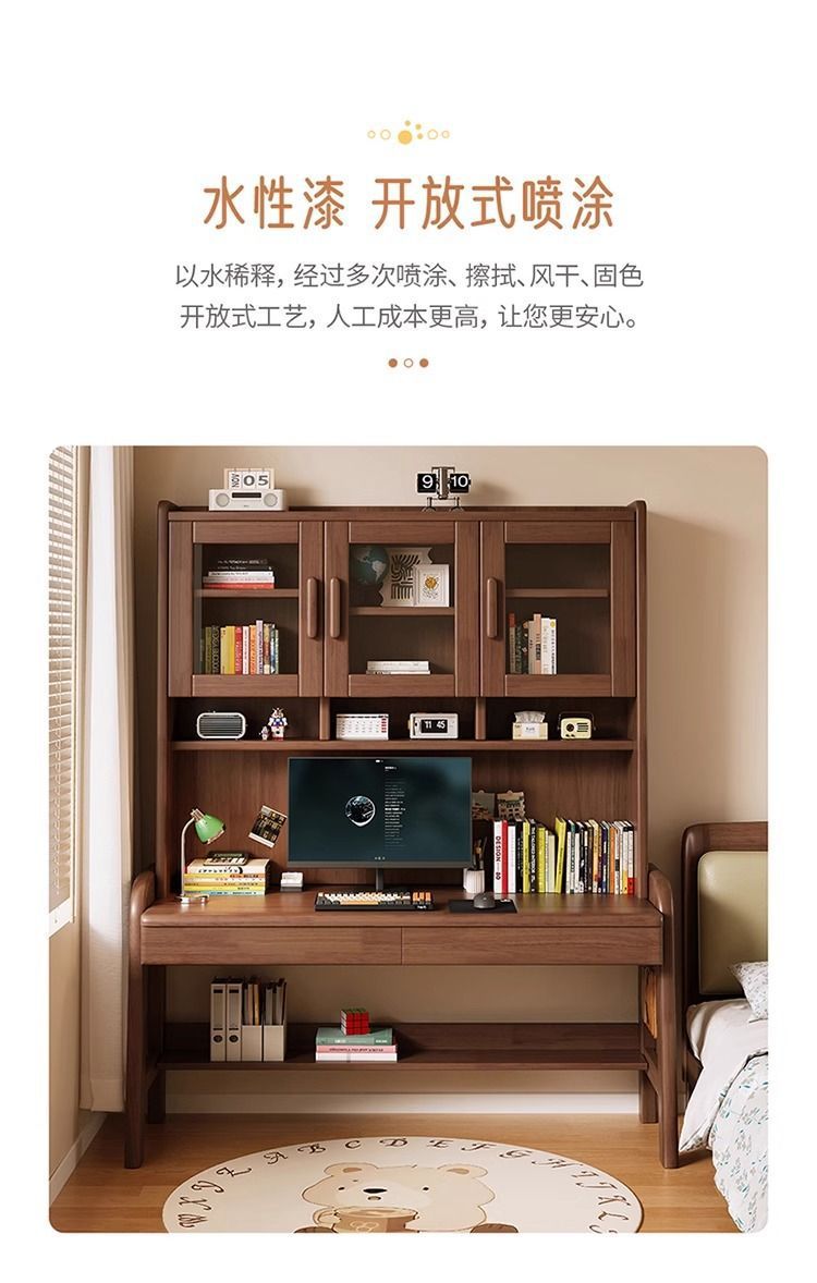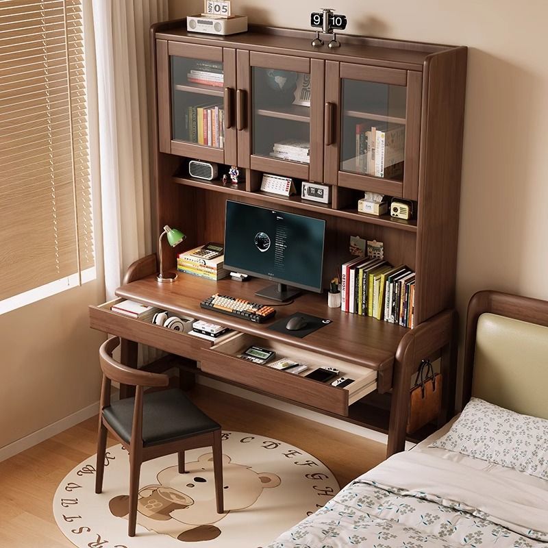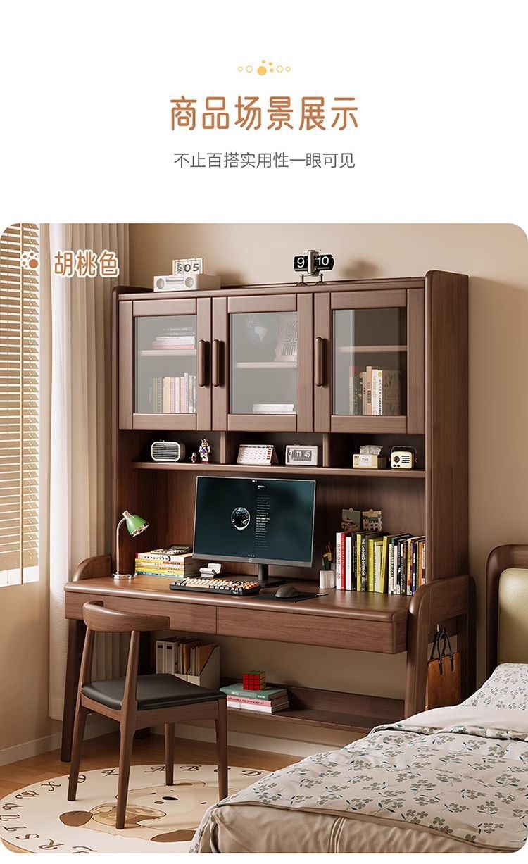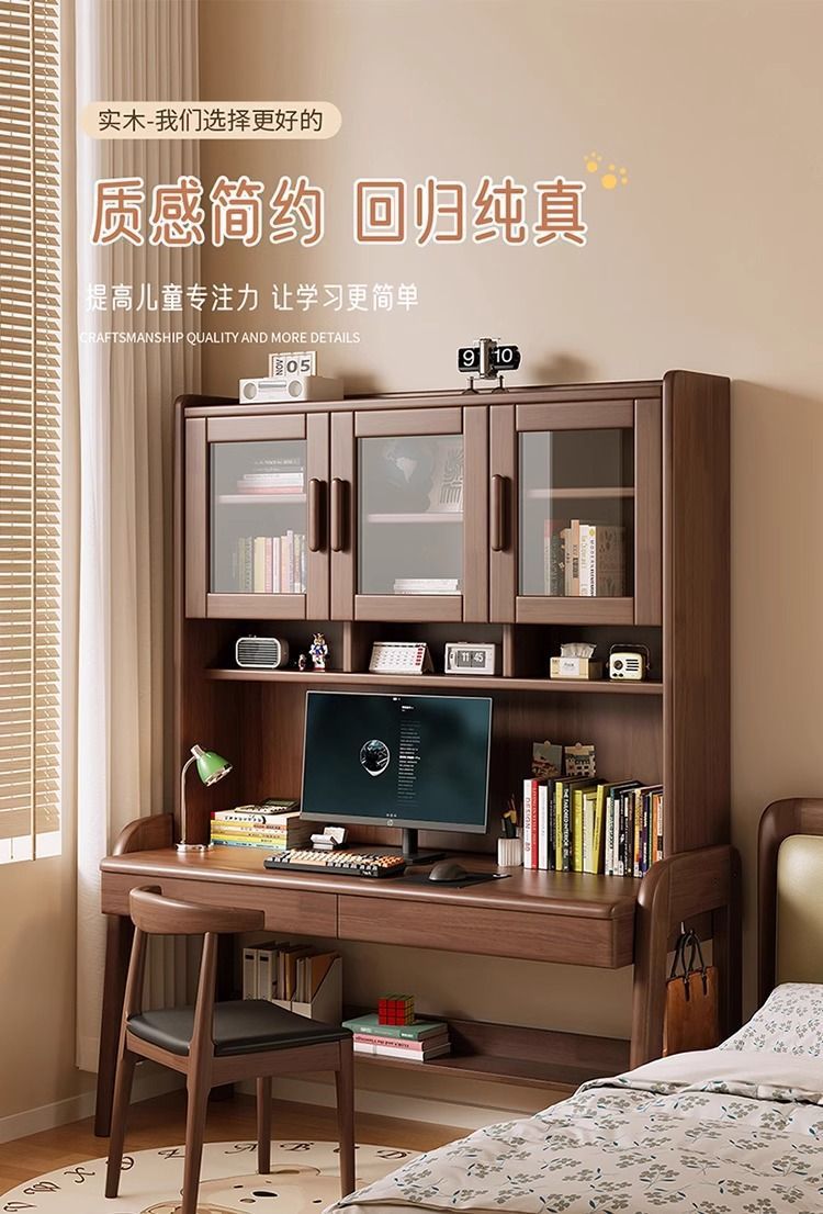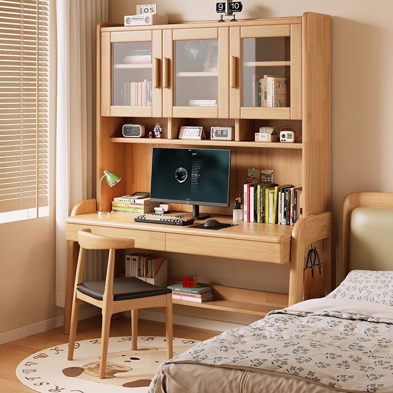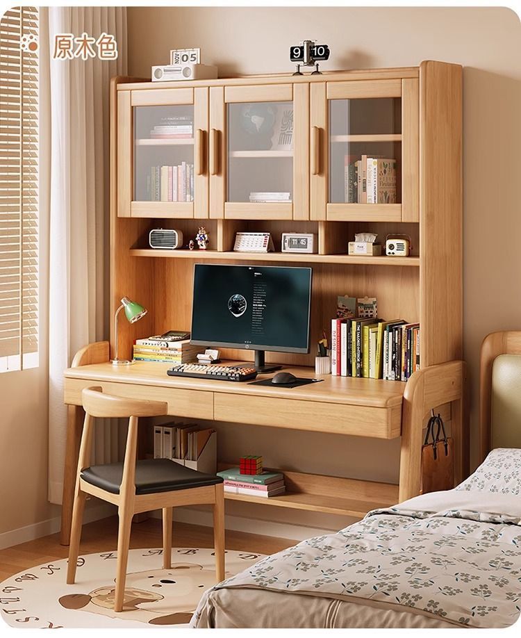 북유럽 단단한 나무 책상 책장 통합 테이블 학생 홈 책장 조합 학습 테이블 작은 아파트 침실 컴퓨터 테이블