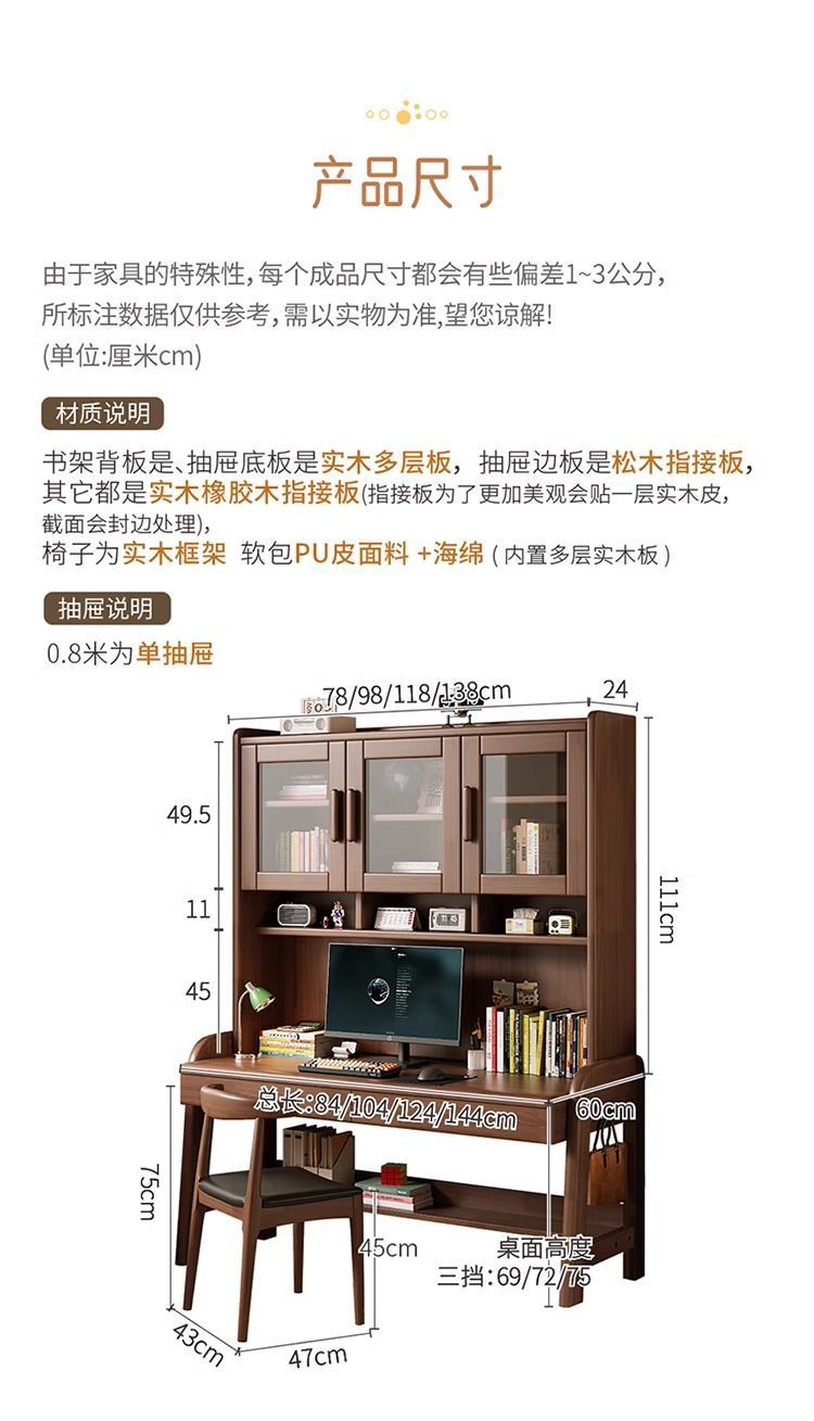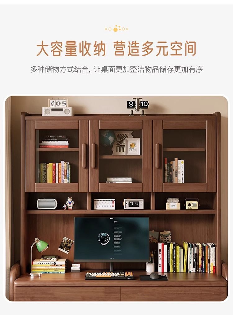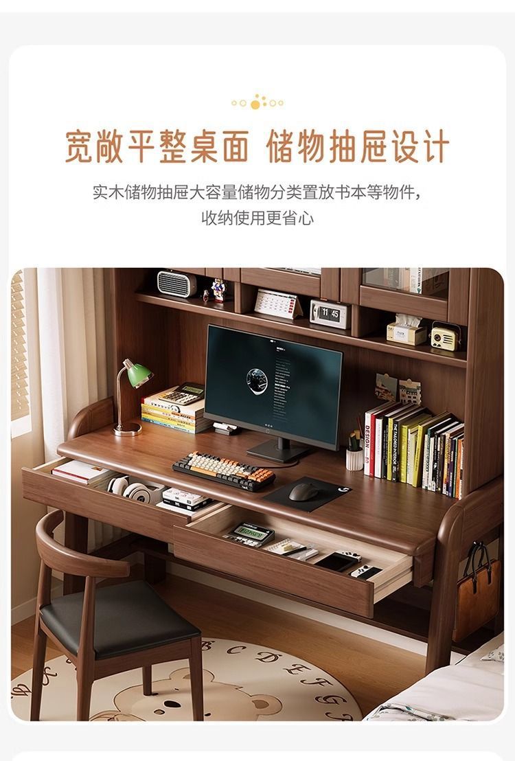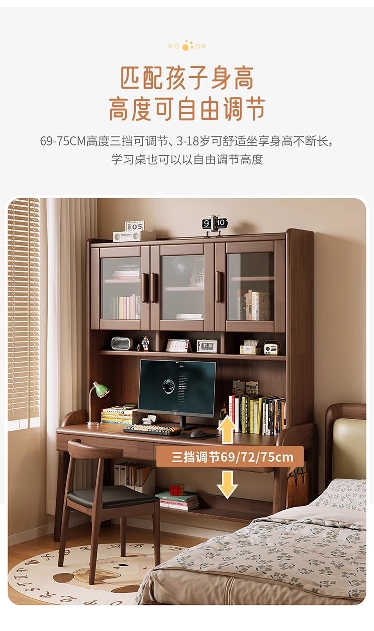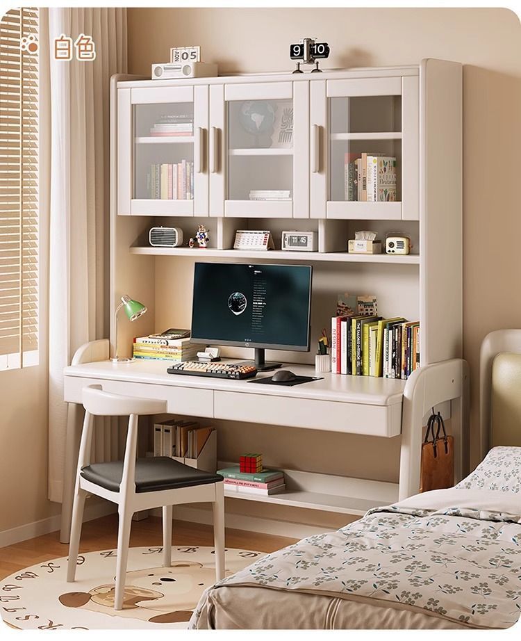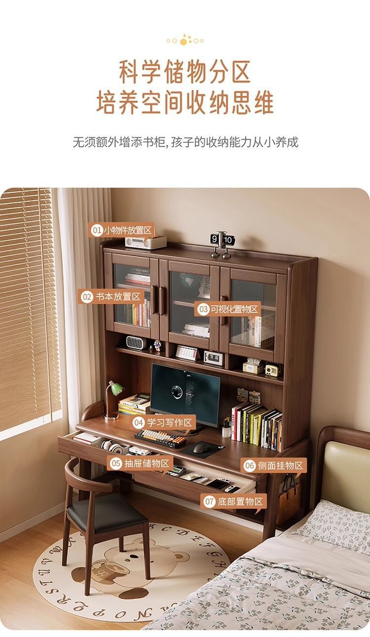 북유럽 단단한 나무 책상 책장 통합 테이블 학생 홈 책장 조합 학습 테이블 작은 아파트 침실 컴퓨터 테이블