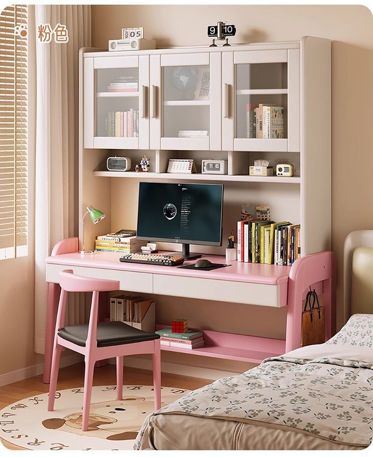 핑크와 화이트 책상과 책장이 하나로