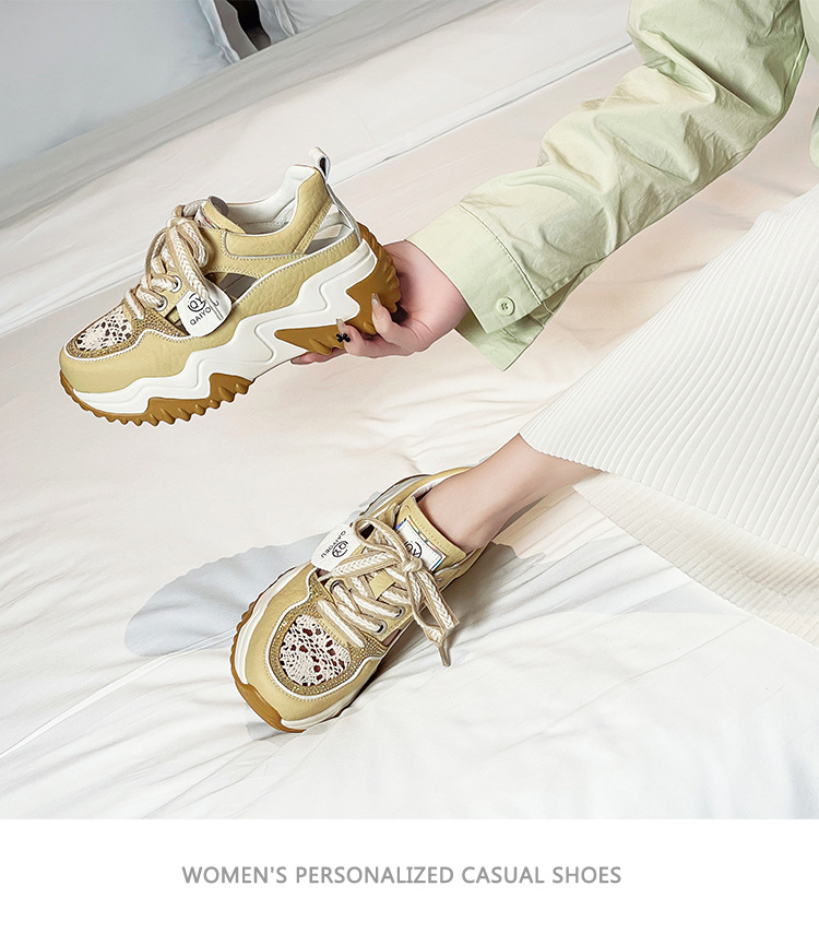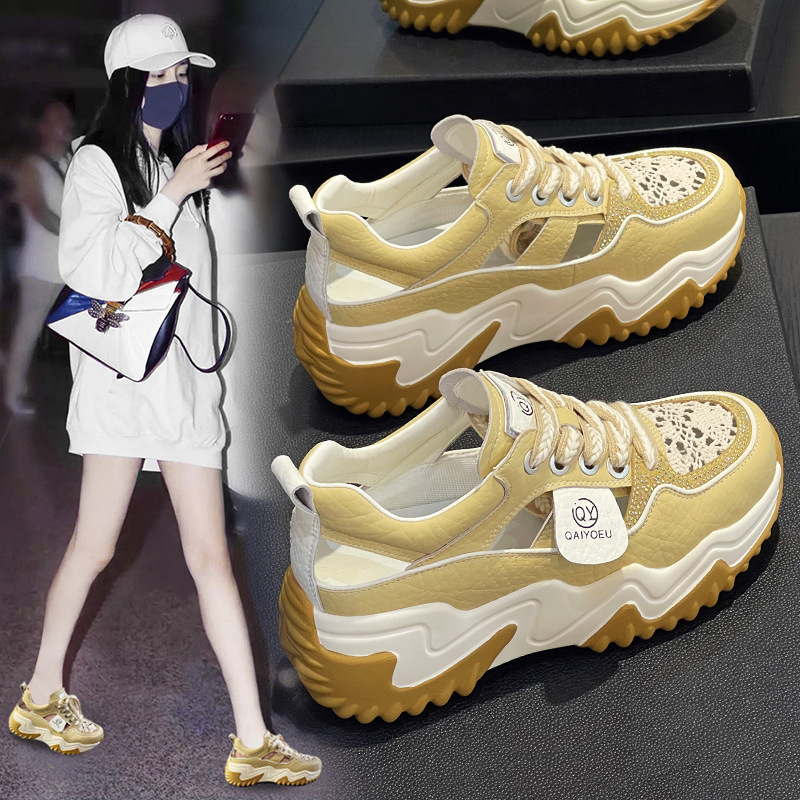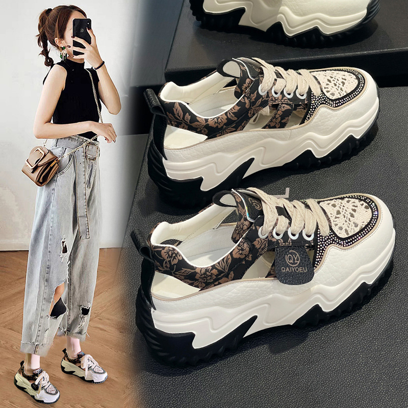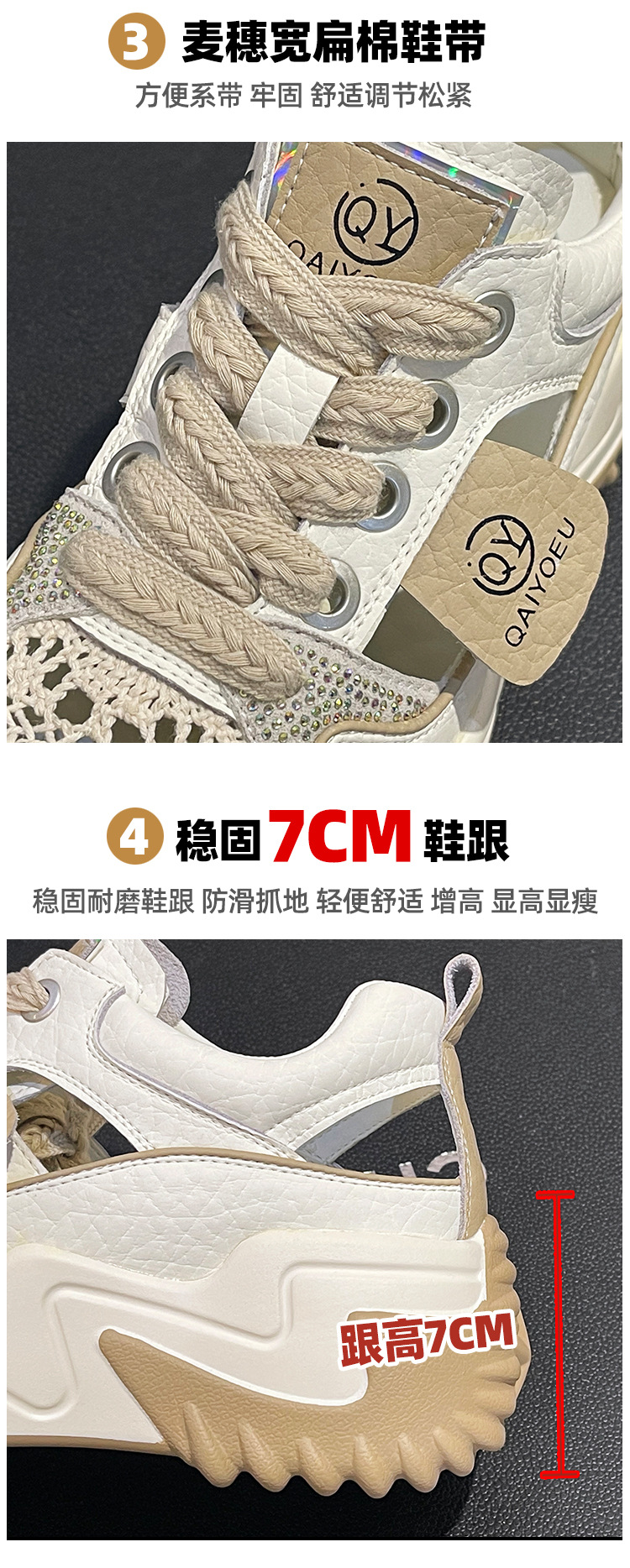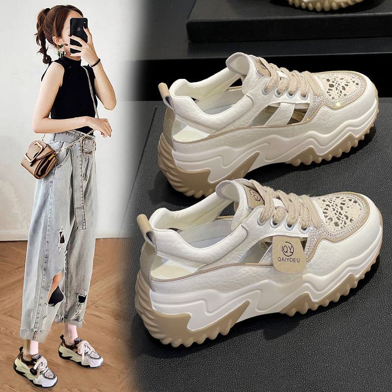 토레 신발 여성 2025 년 여름 새로운 할로우 통기성 스포츠 화이트 신발 플랫폼 높이 증가 캐주얼 샌들