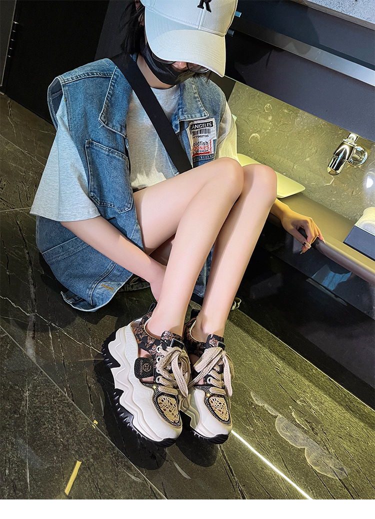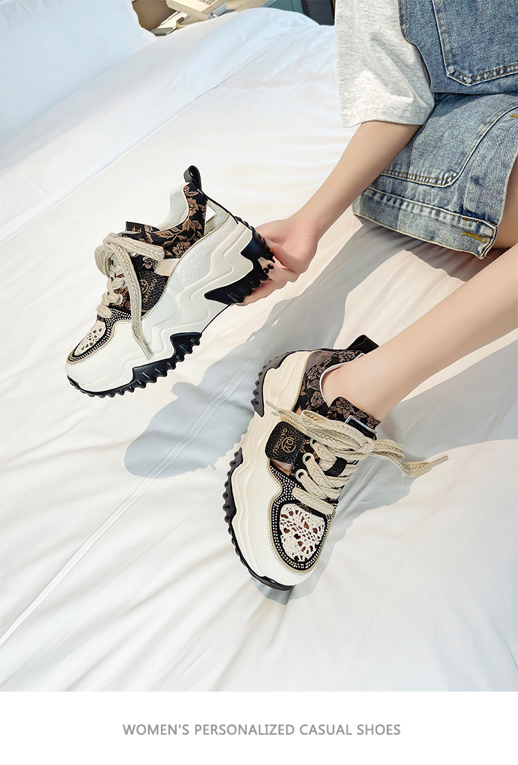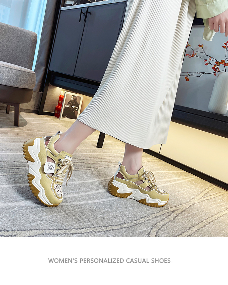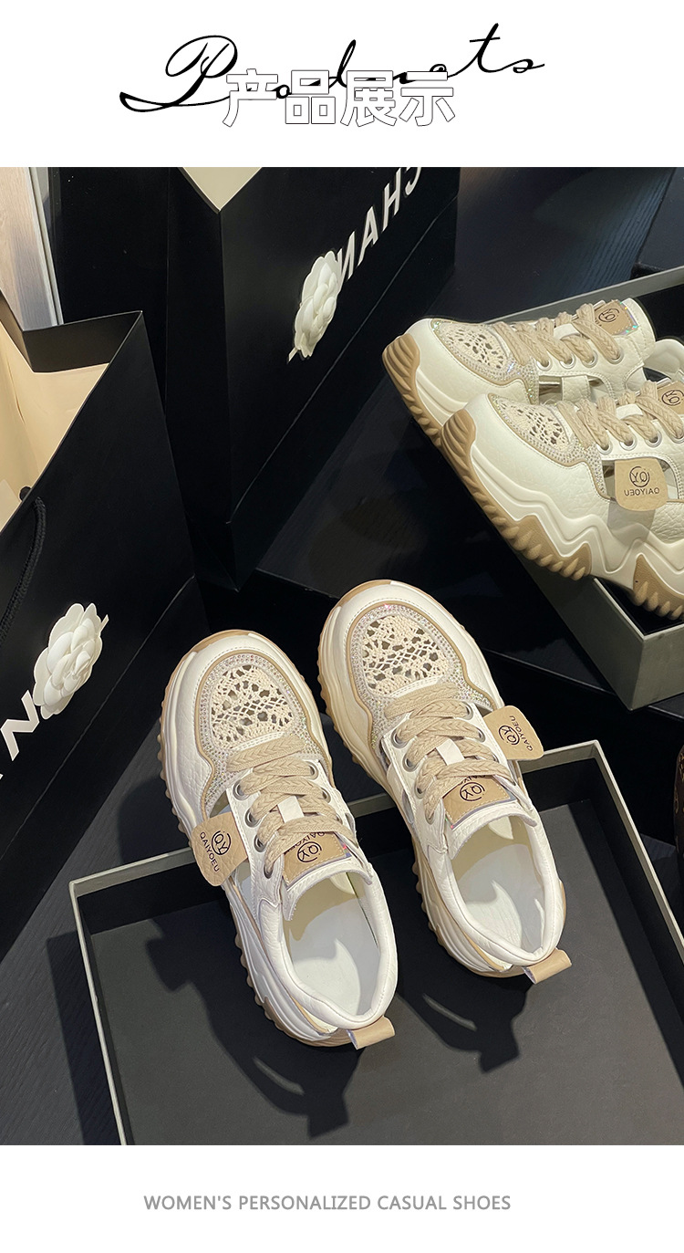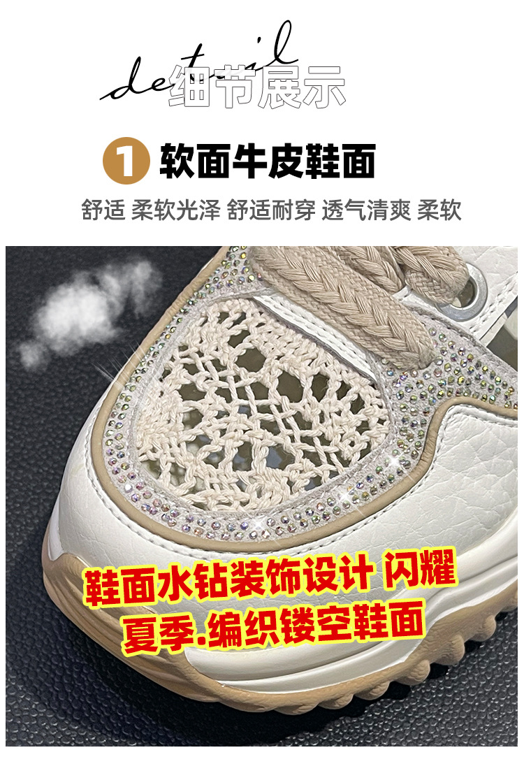 토레 신발 여성 2025 년 여름 새로운 할로우 통기성 스포츠 화이트 신발 플랫폼 높이 증가 캐주얼 샌들