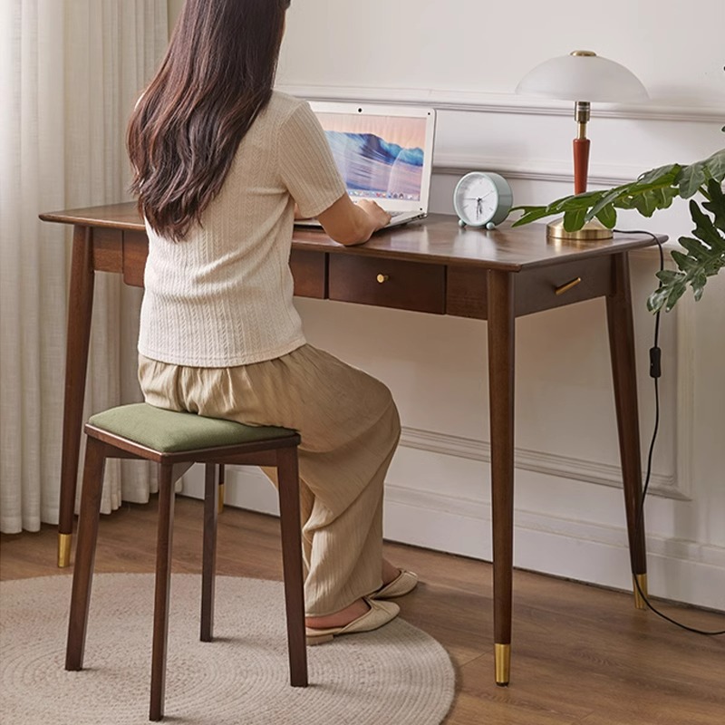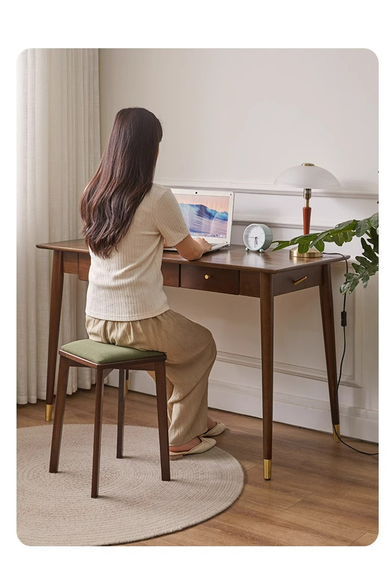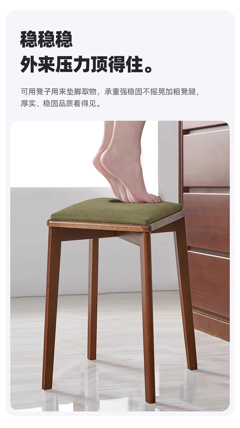 순수 원목 피부친화적인 코듀로이 스툴 표면] 월넛 컬러 다리 + 그린 스툴 표면