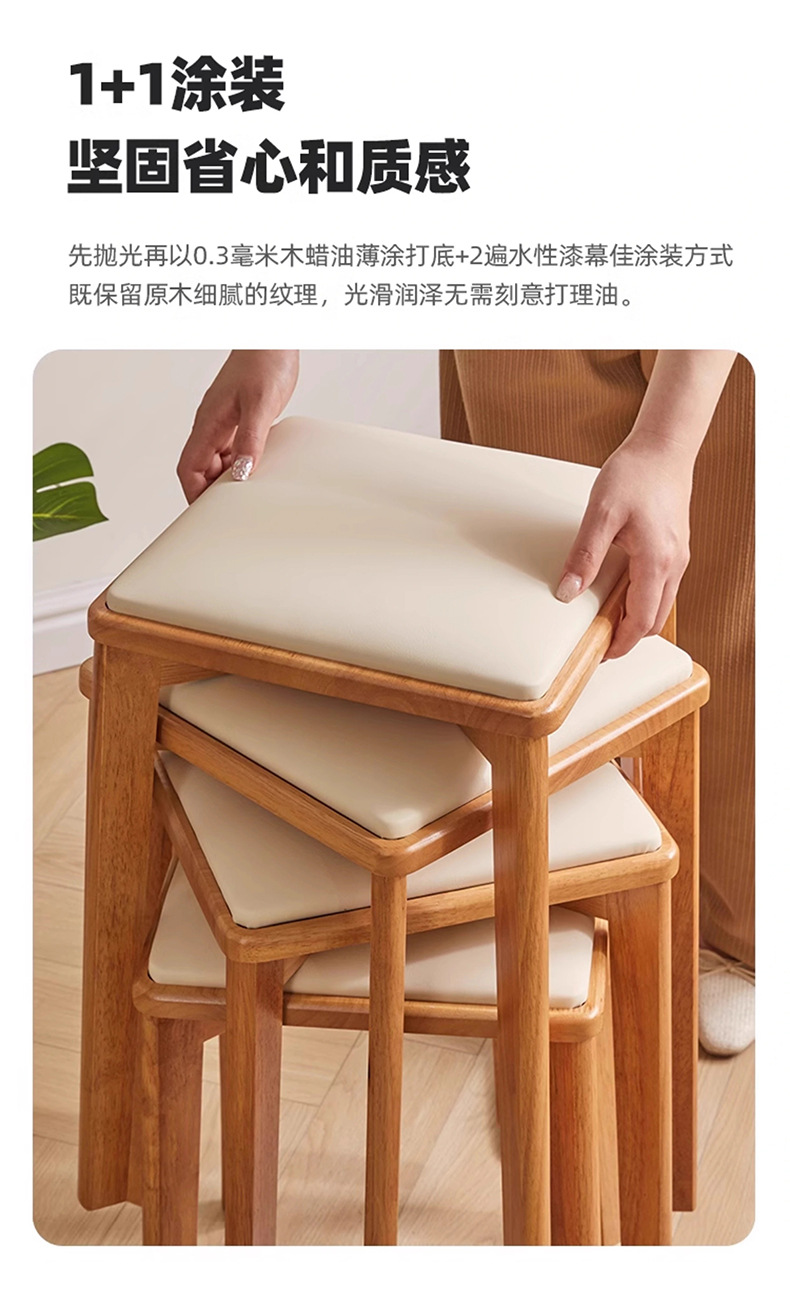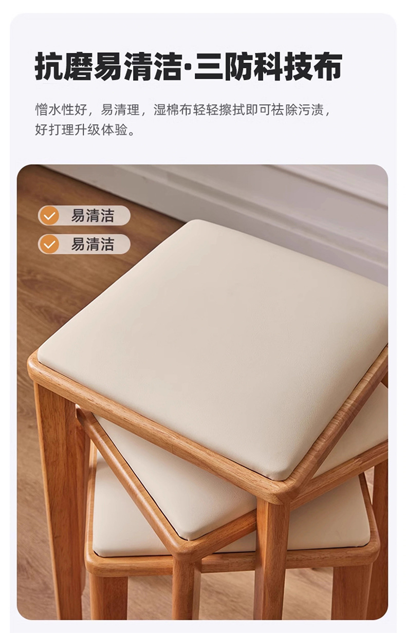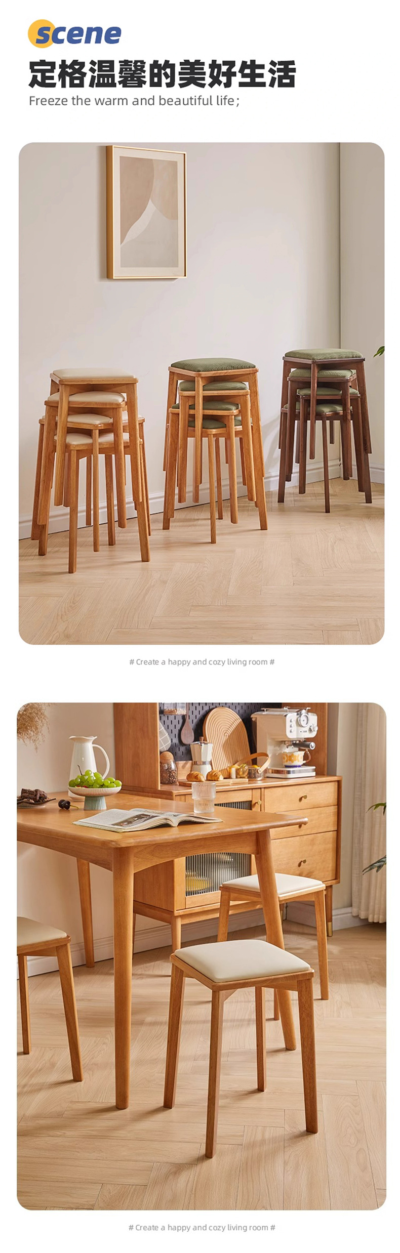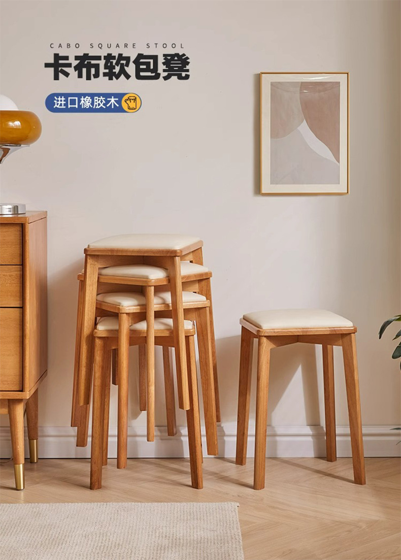 [순수 원목 방수 PU 가죽 스툴 표면] 통나무 다리 + 실버 그레이 스툴 표면