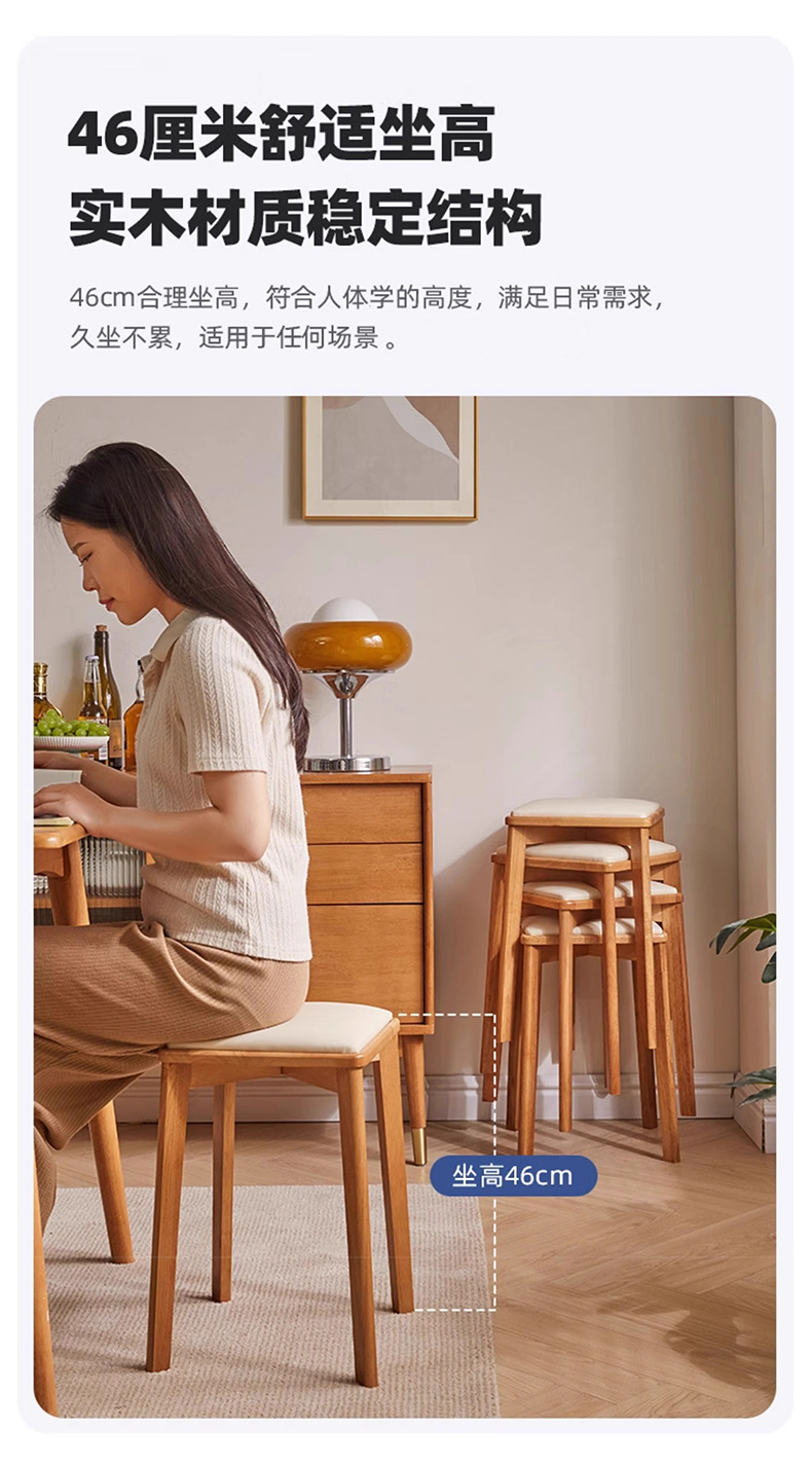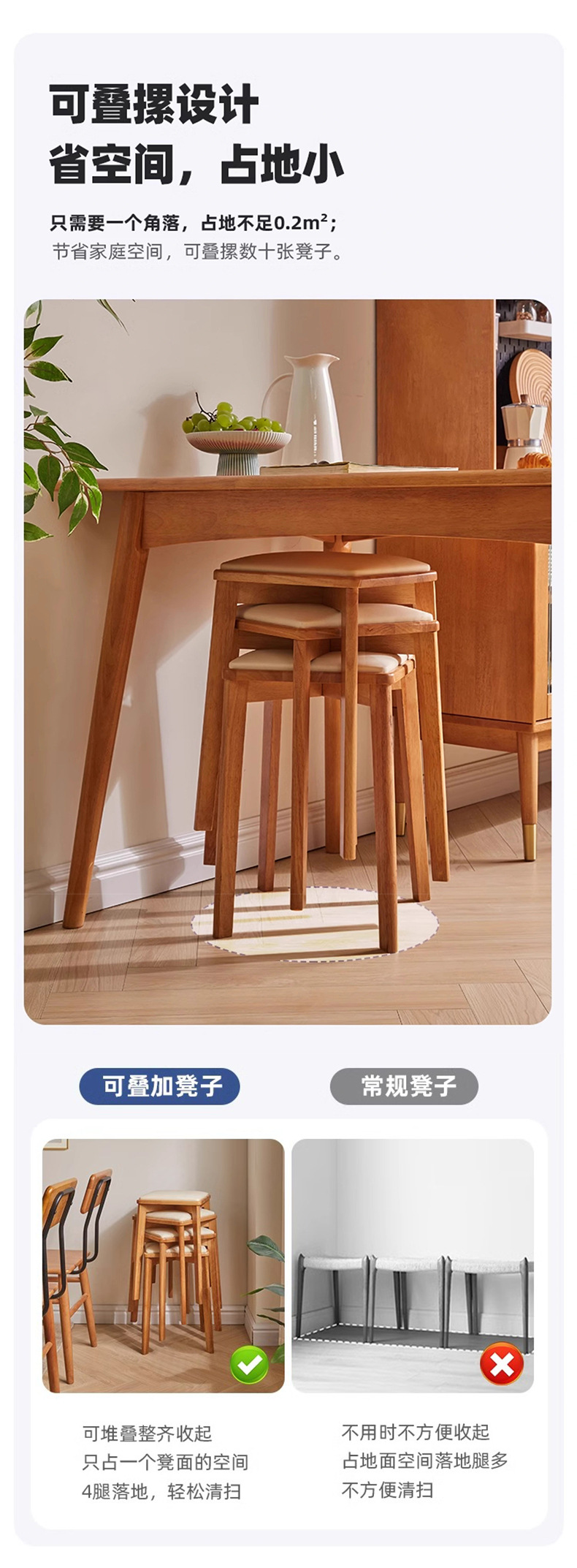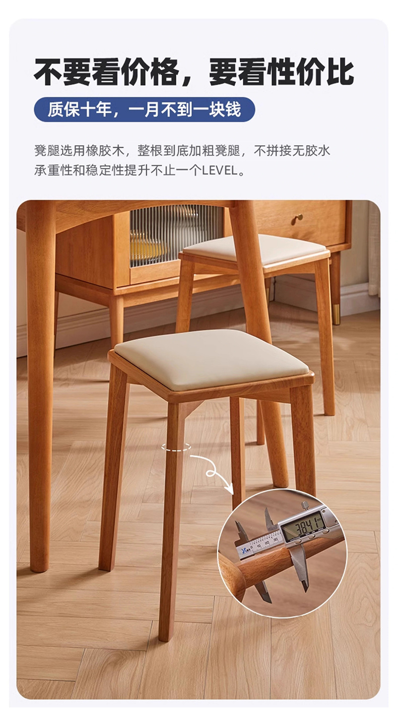 [순수 원목 방수 PU 가죽 스툴 표면] 통나무 다리 + 실버 그레이 스툴 표면