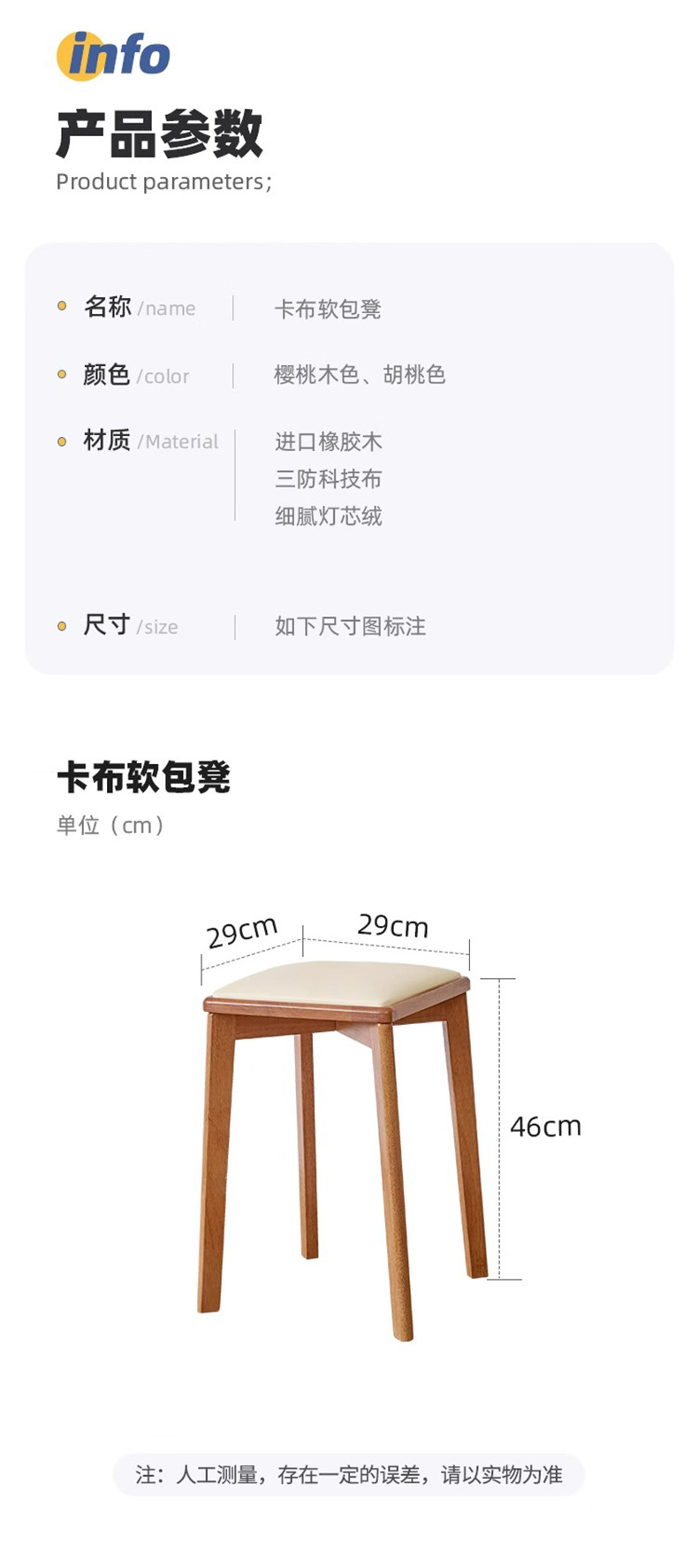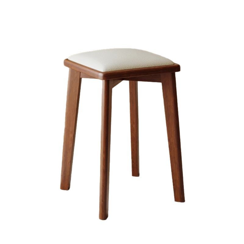 [순수 원목 방수 PU 가죽 스툴 표면] 호두색 다리 + 커피색 스툴 표면
